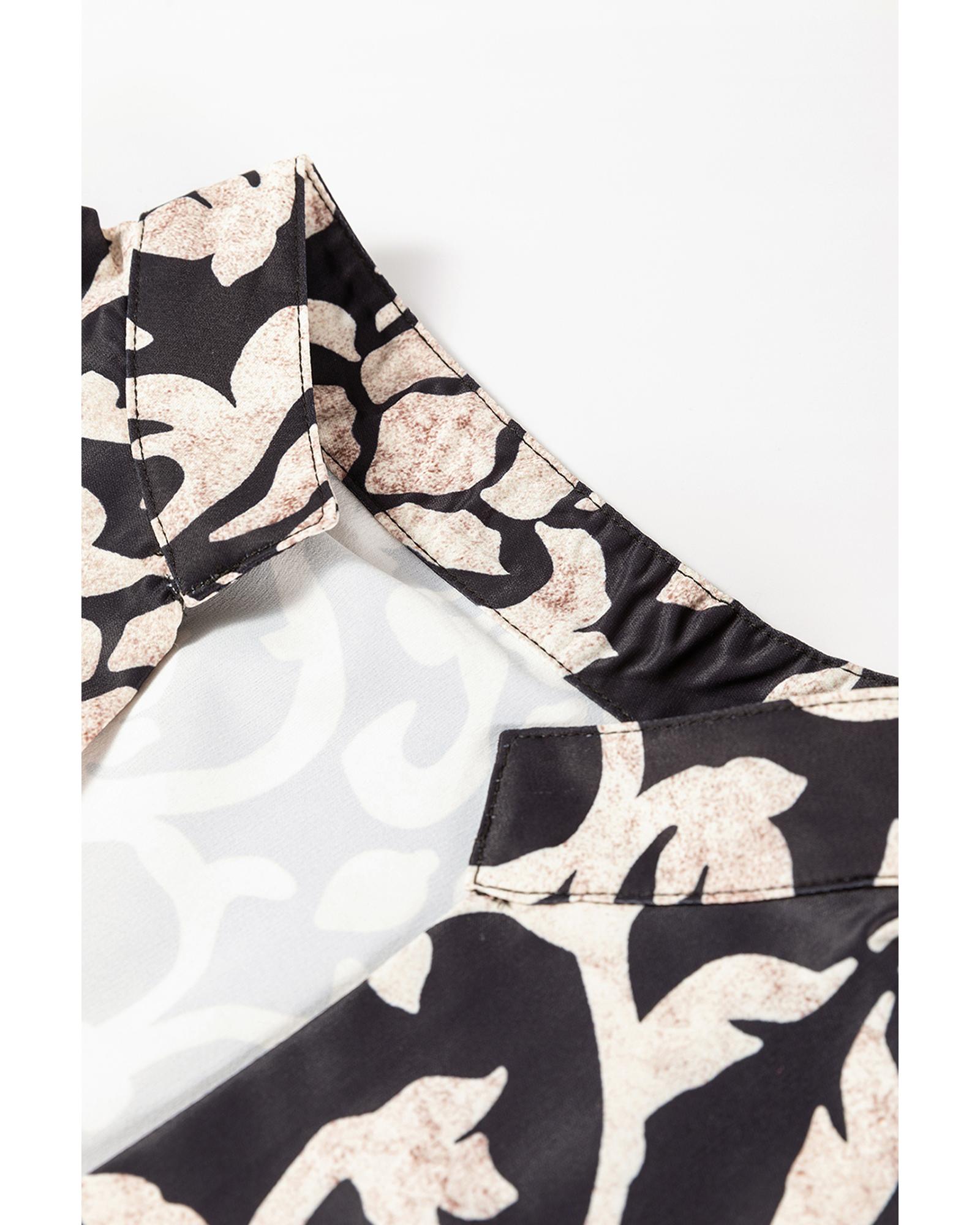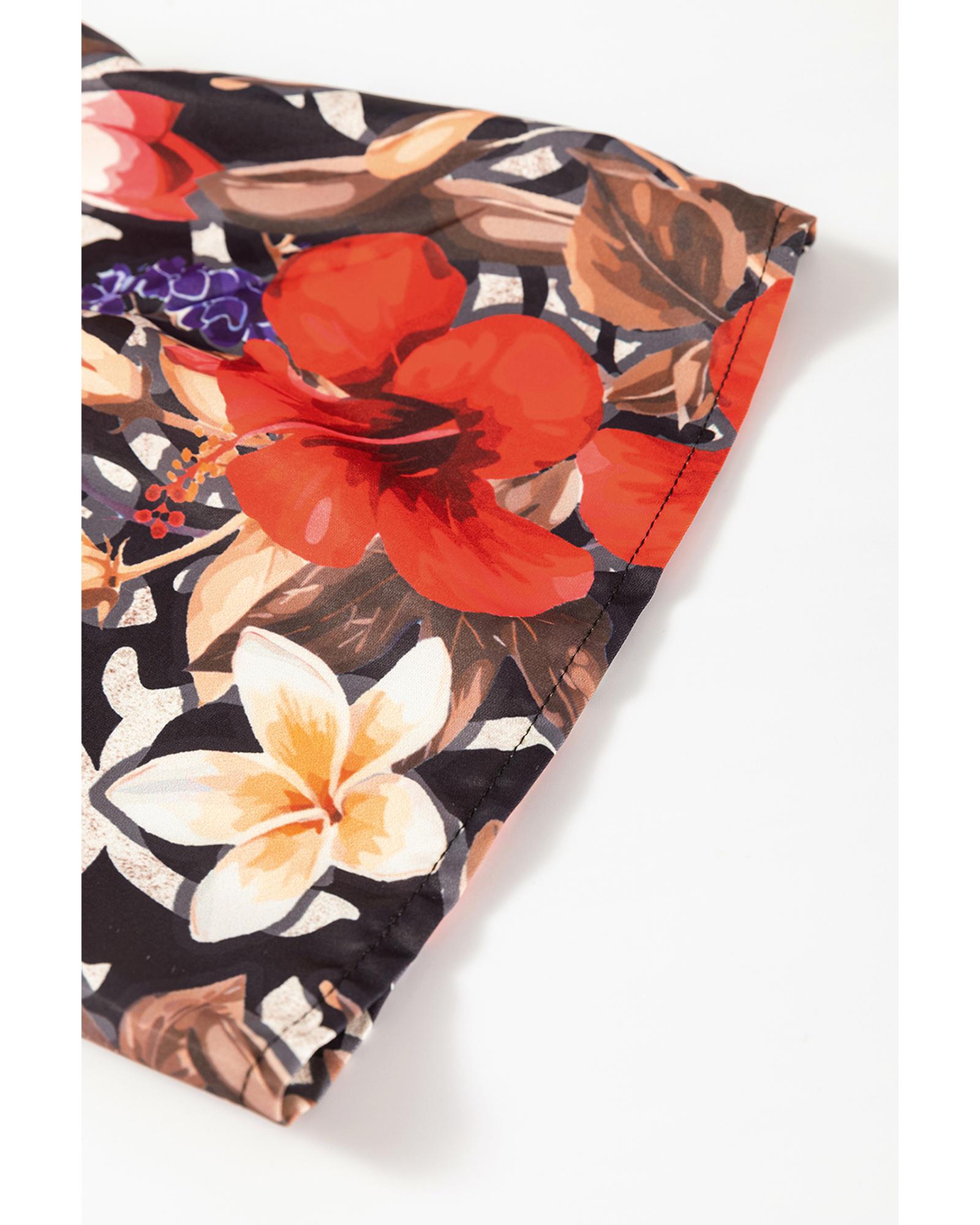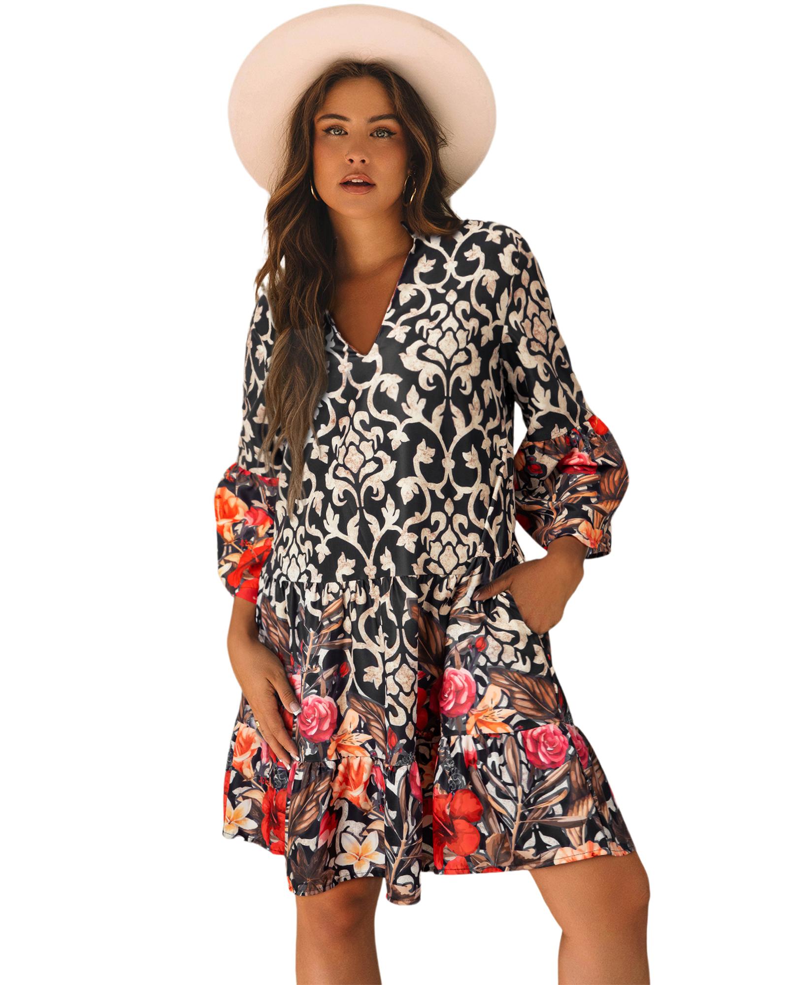 Black Retro Floral Mixed Print Split Neck A-line Dress – M