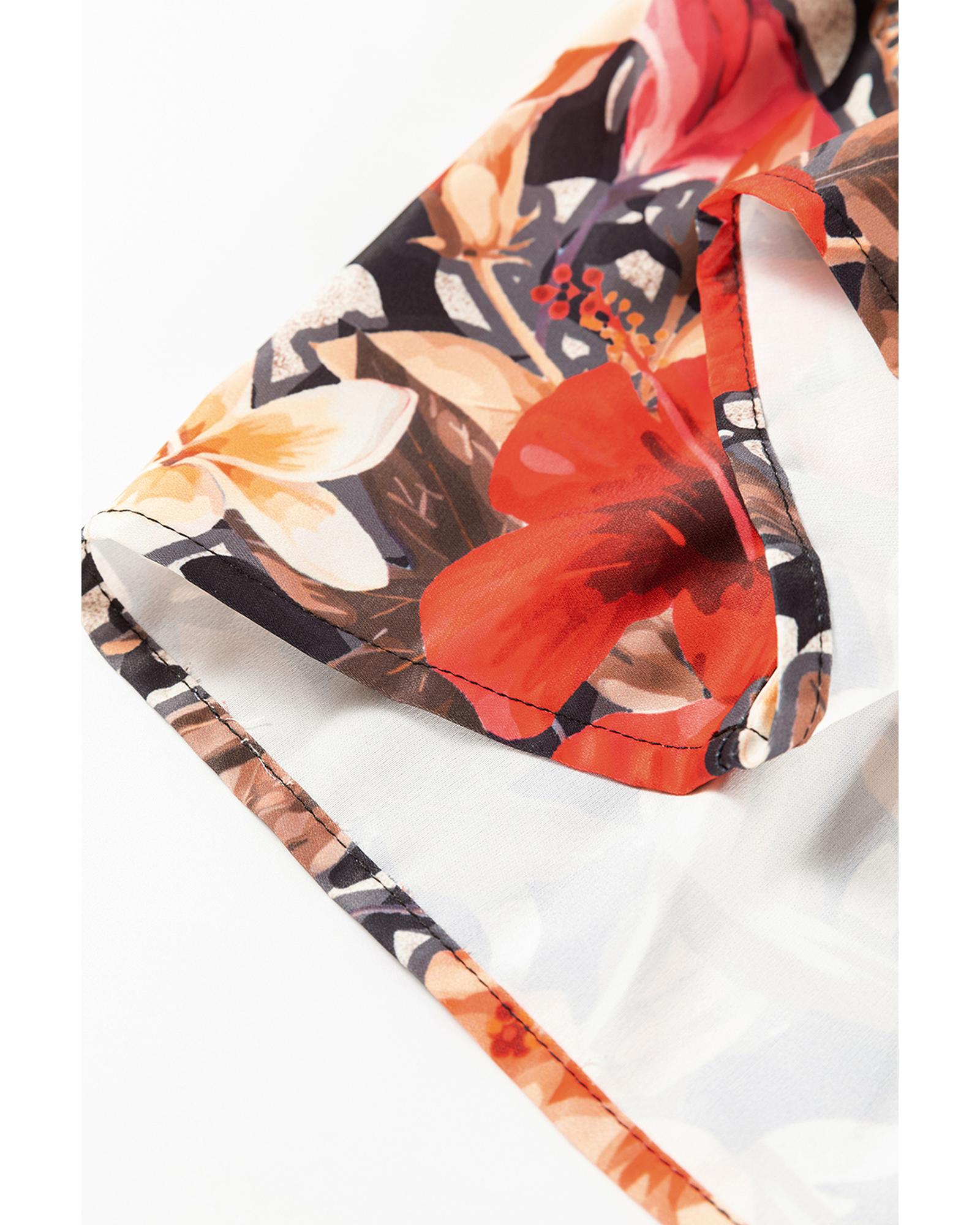 White Floral Print Boho Tassel Tie Split Neck Tucking Detail Puff Sleeve Mini Dress - XL Original price was: $72.99.Current price is: $38.99.