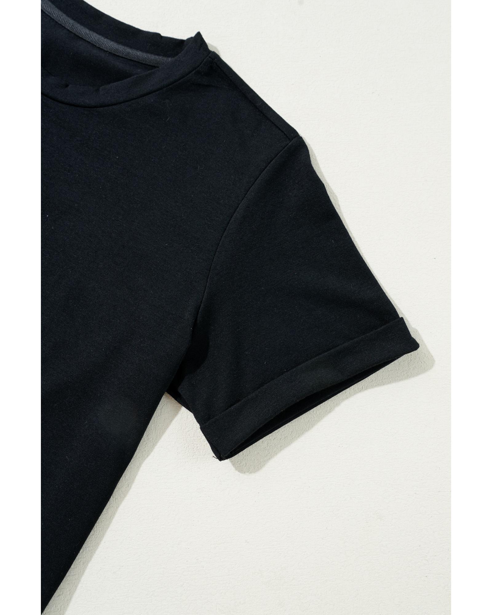 - Black Rhinestone Christmas Tree Round Neck Graphic Tee
