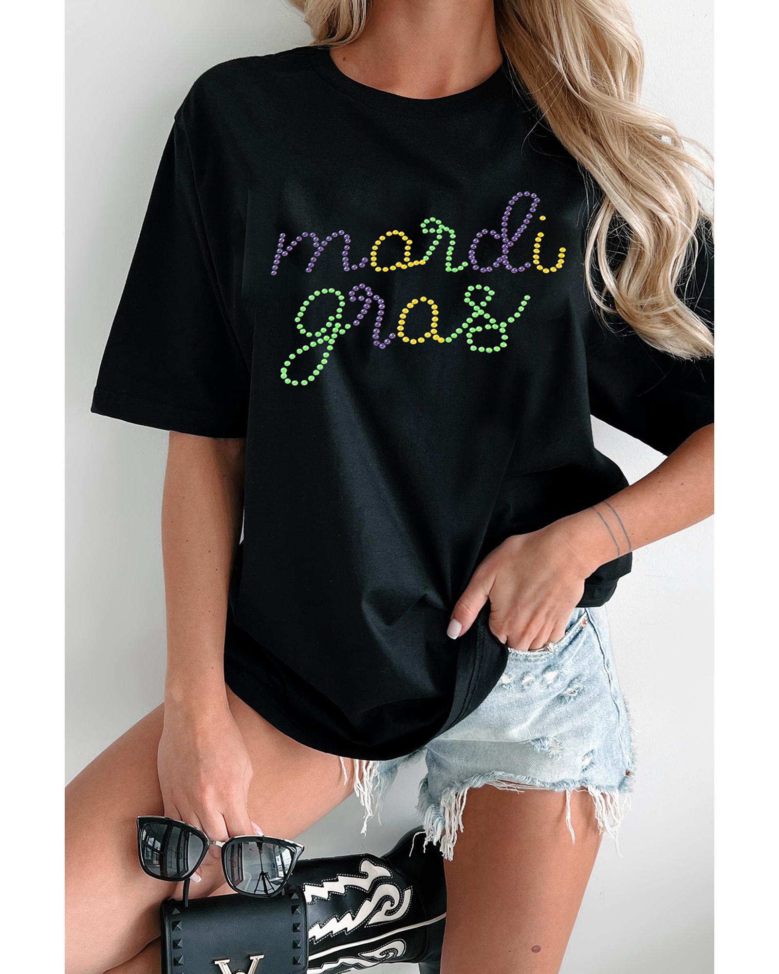 • Black Rhinestone Mardi Gras Letter Graphic T