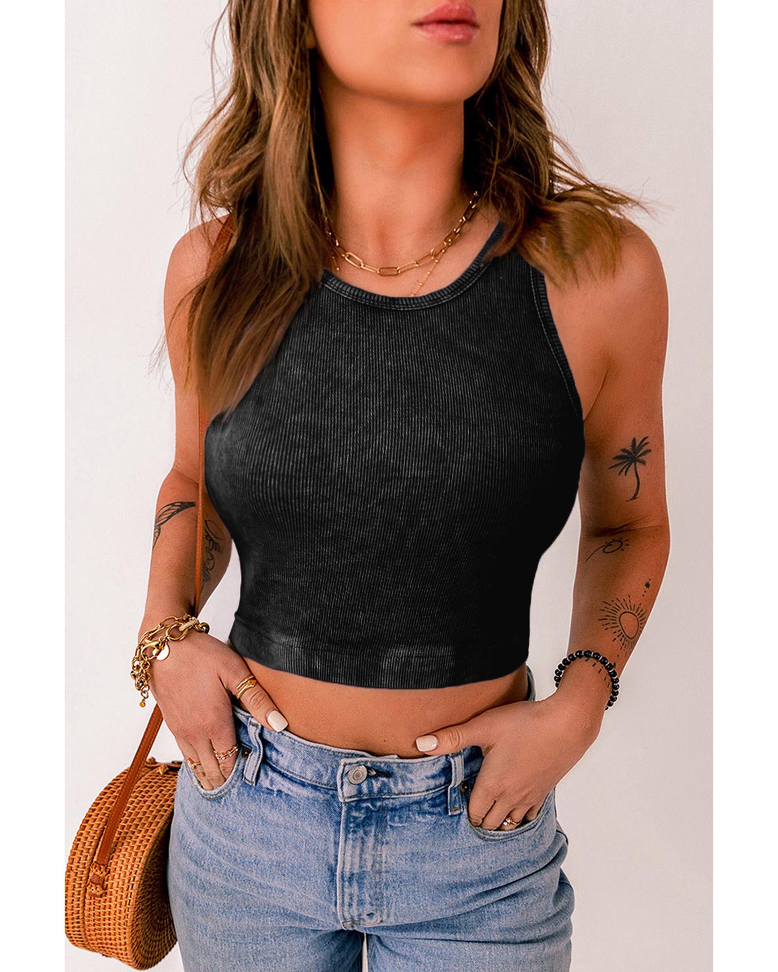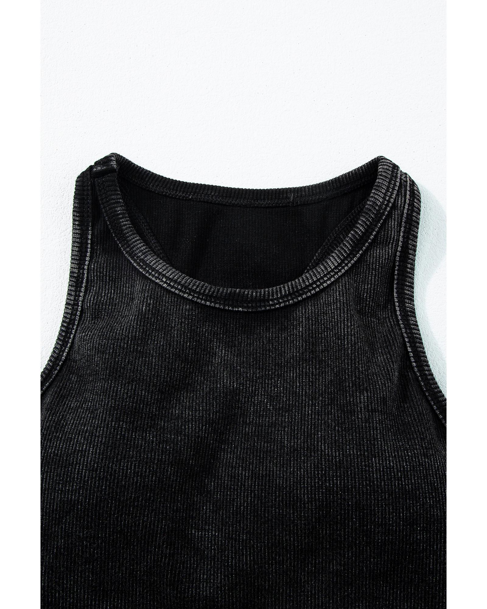 - Black ribbed mineral wash racerback cropped tank top