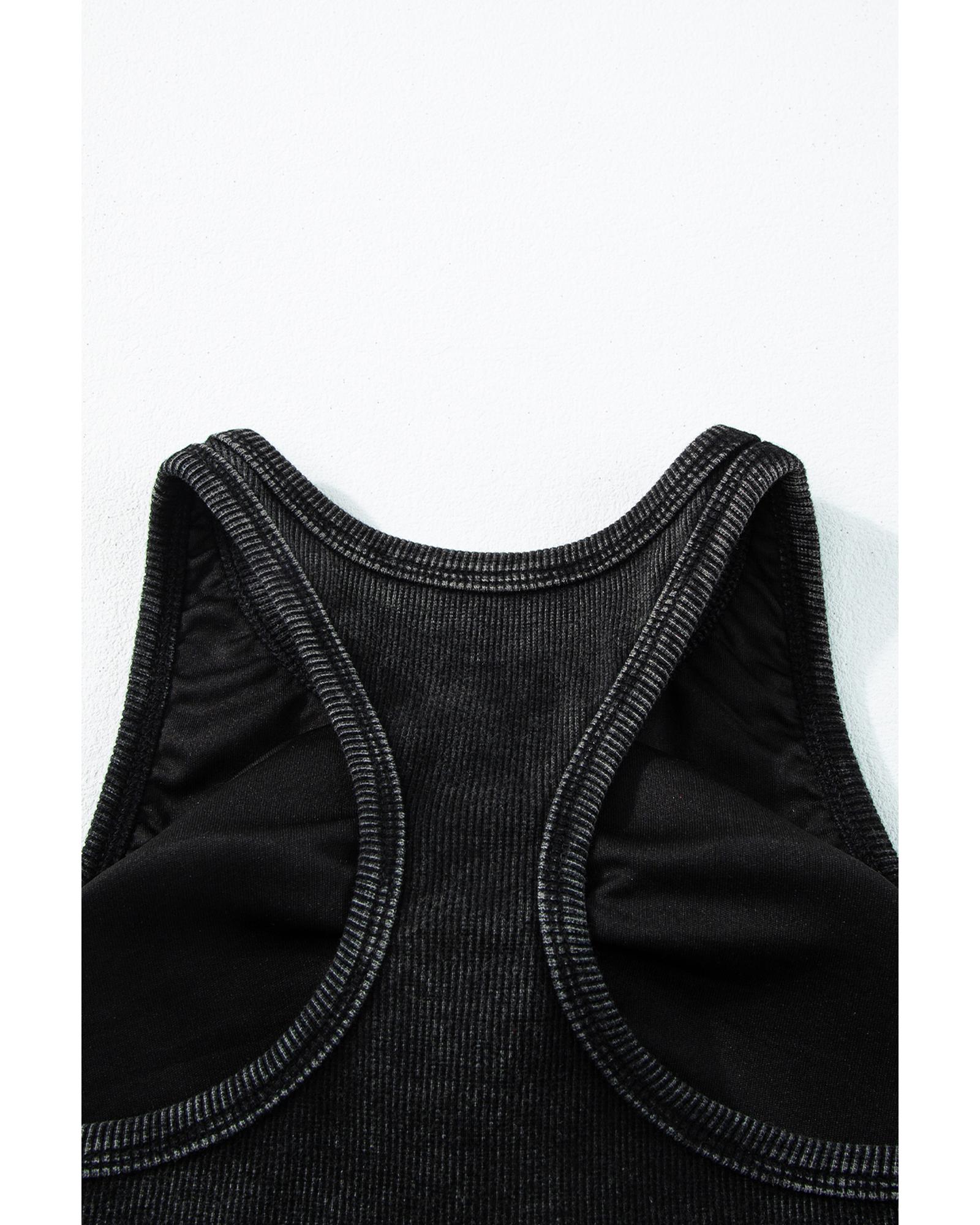 Black Ribbed Mineral Wash Racerback Cropped Tank Top – M
