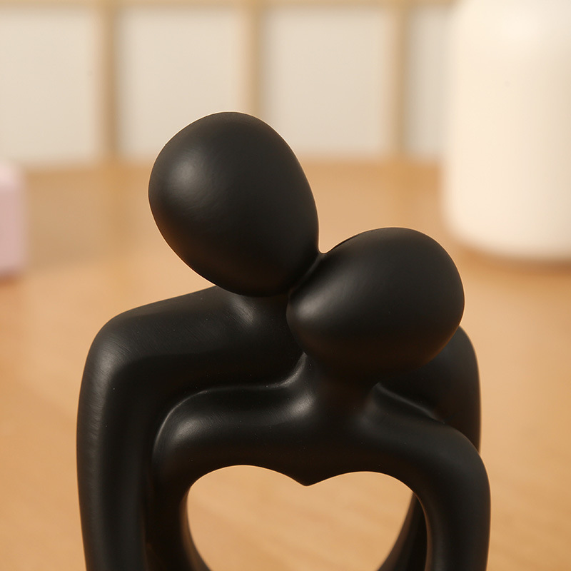 Black Romantic Couple Figurine with Heart Design – Modern Minimalist Decorative Statue