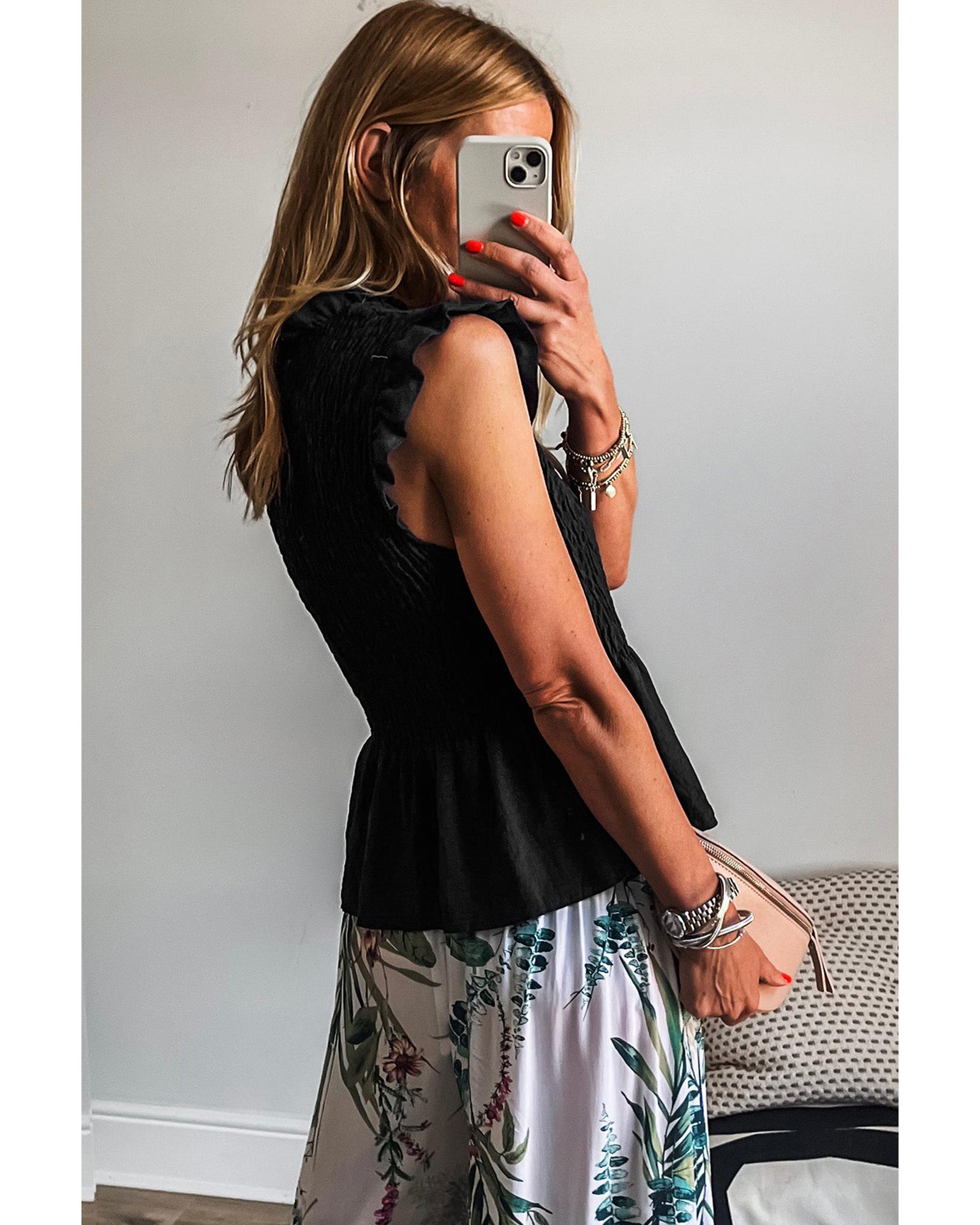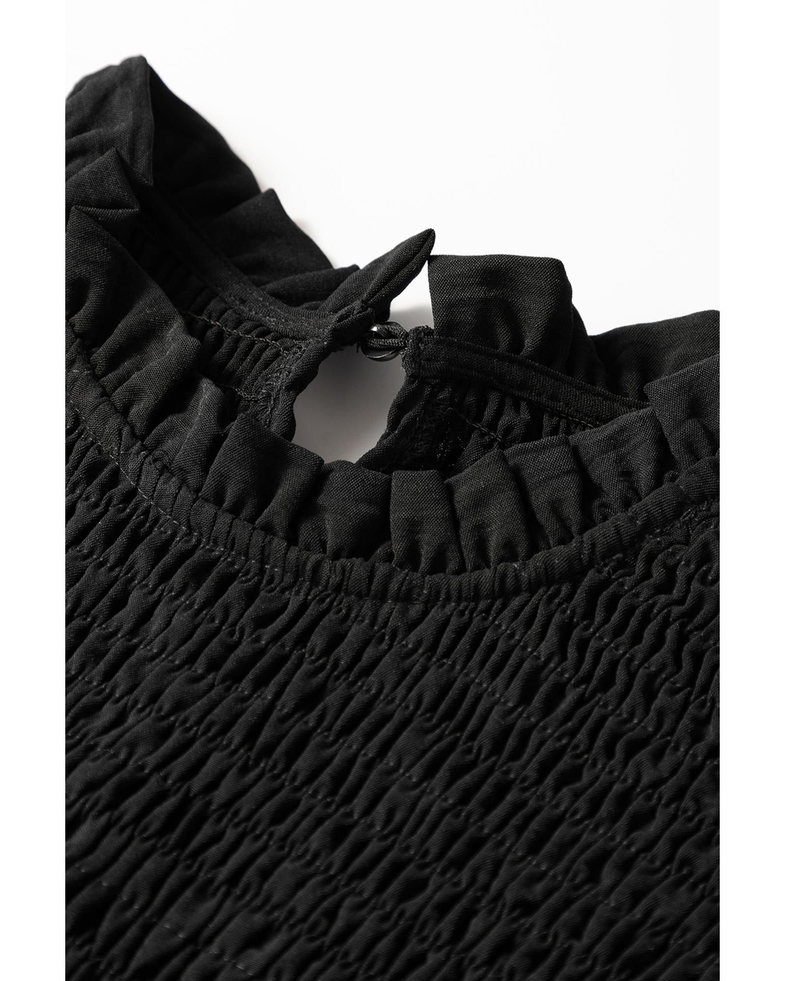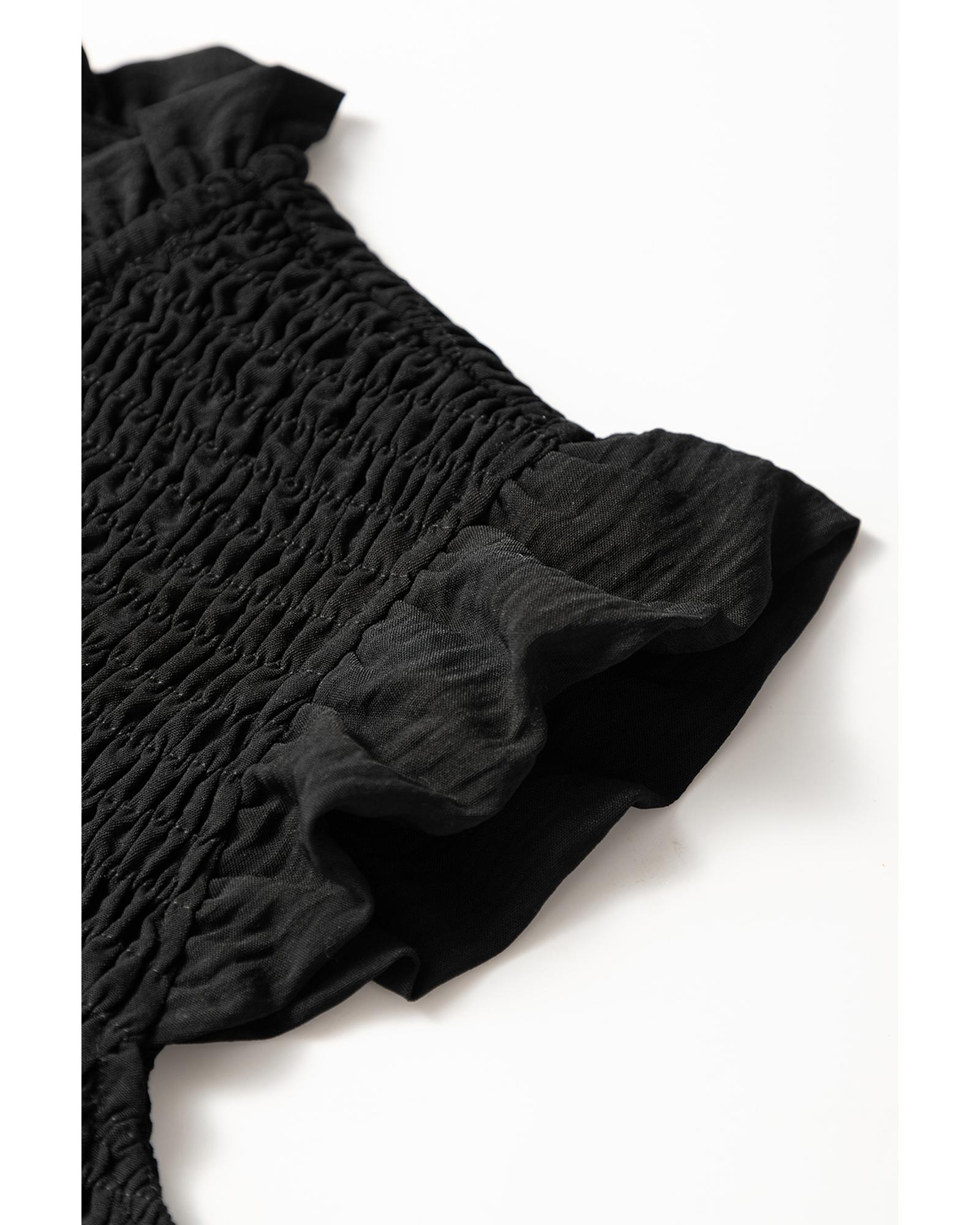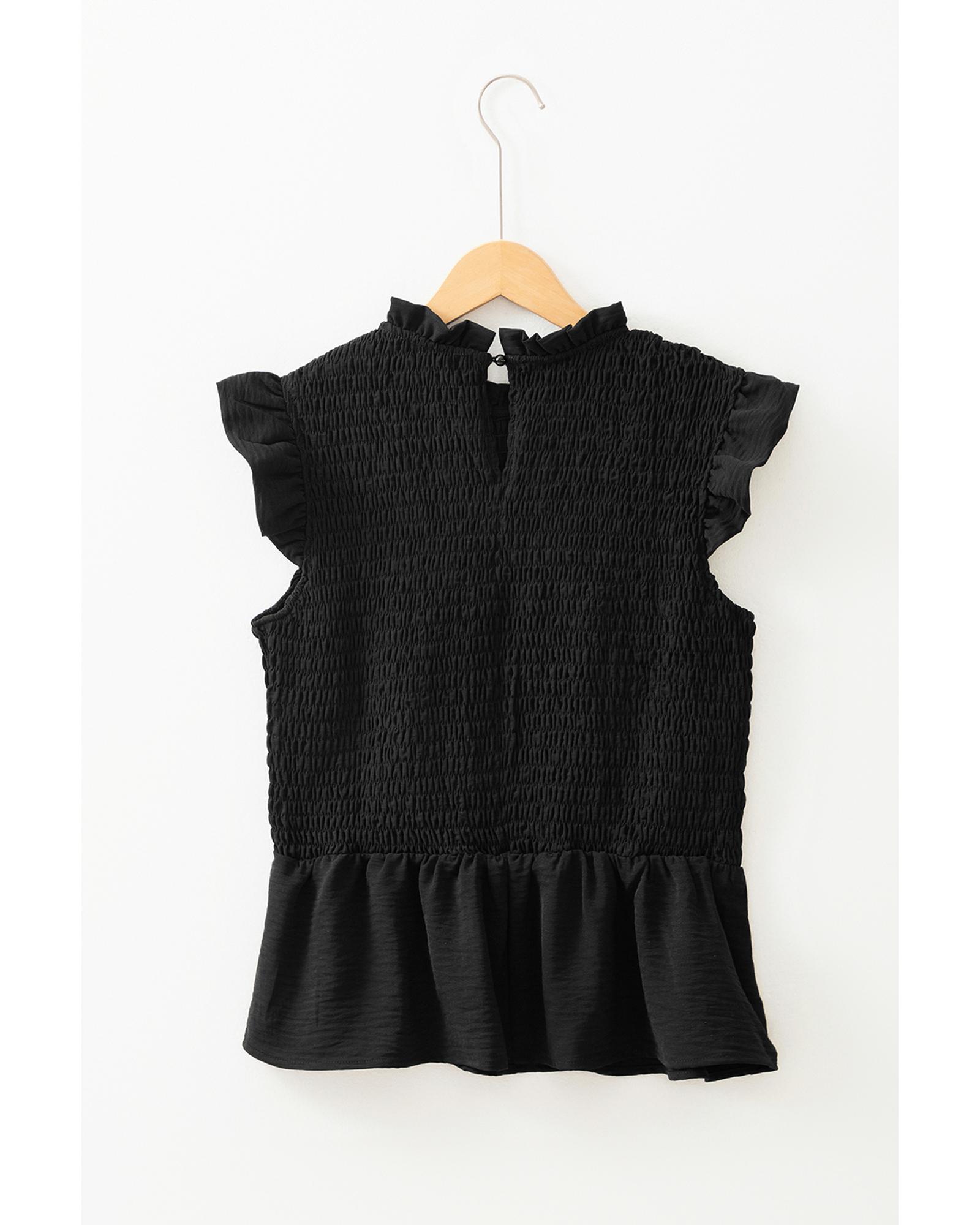 Black Ruffle Short Sleeve Shirred Peplum Top – L