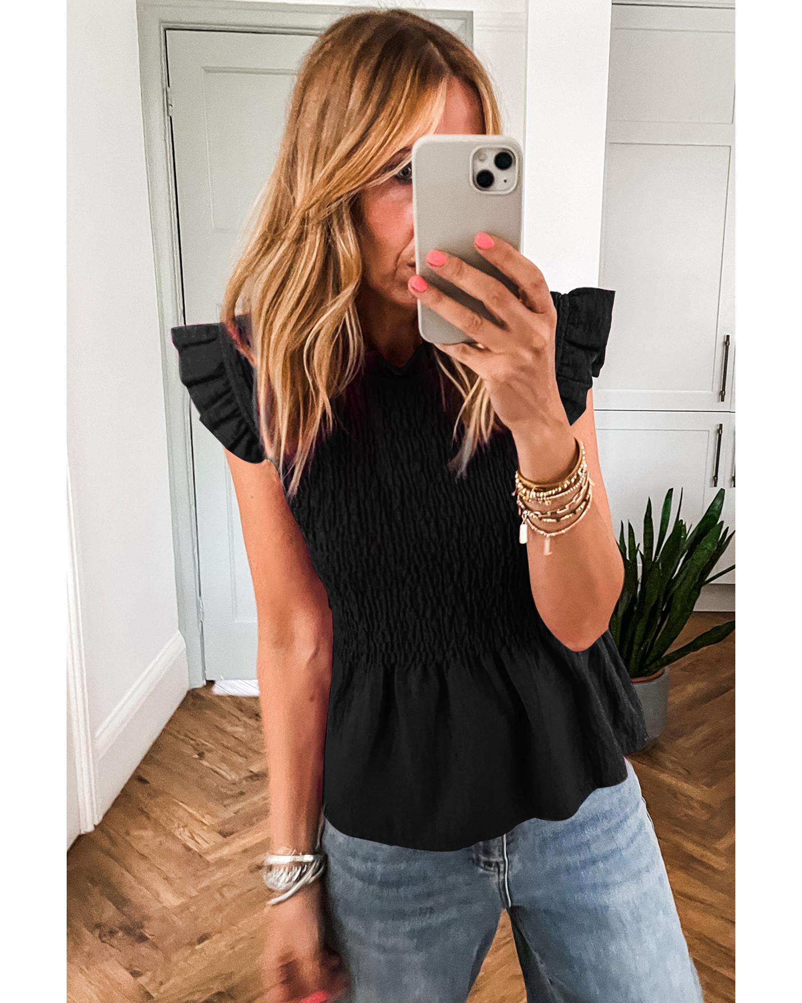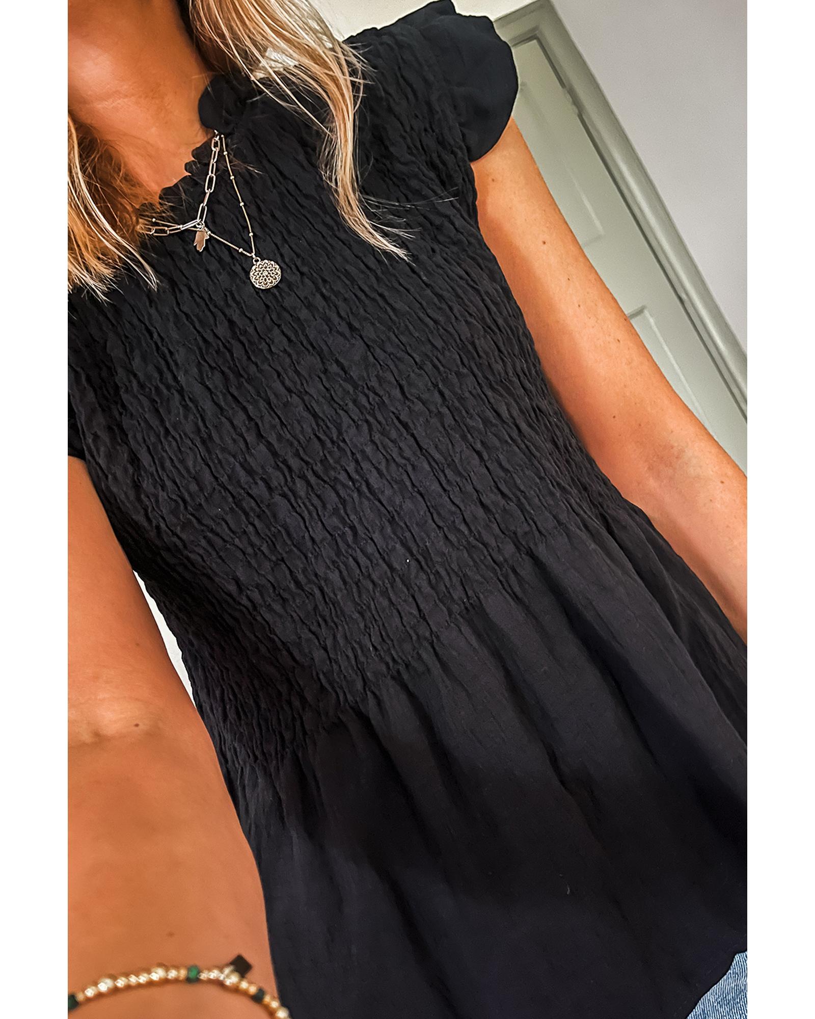 Black Ruffle Short Sleeve Shirred Peplum Top – XL