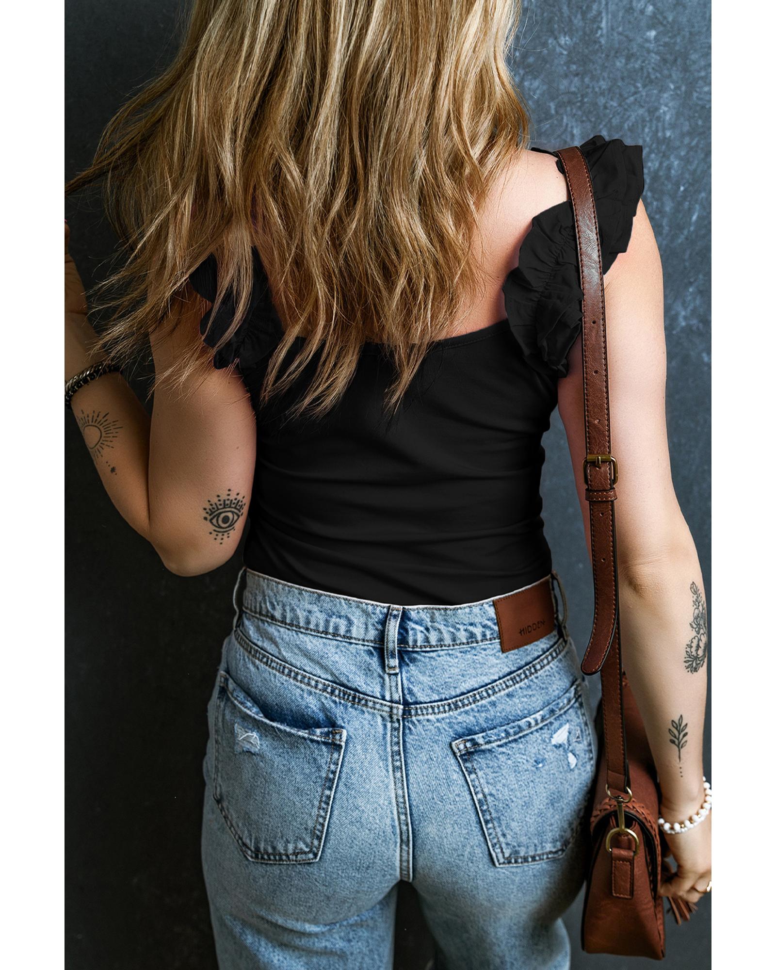 Black Ruffled Wide Straps Slim Tank Top – XL