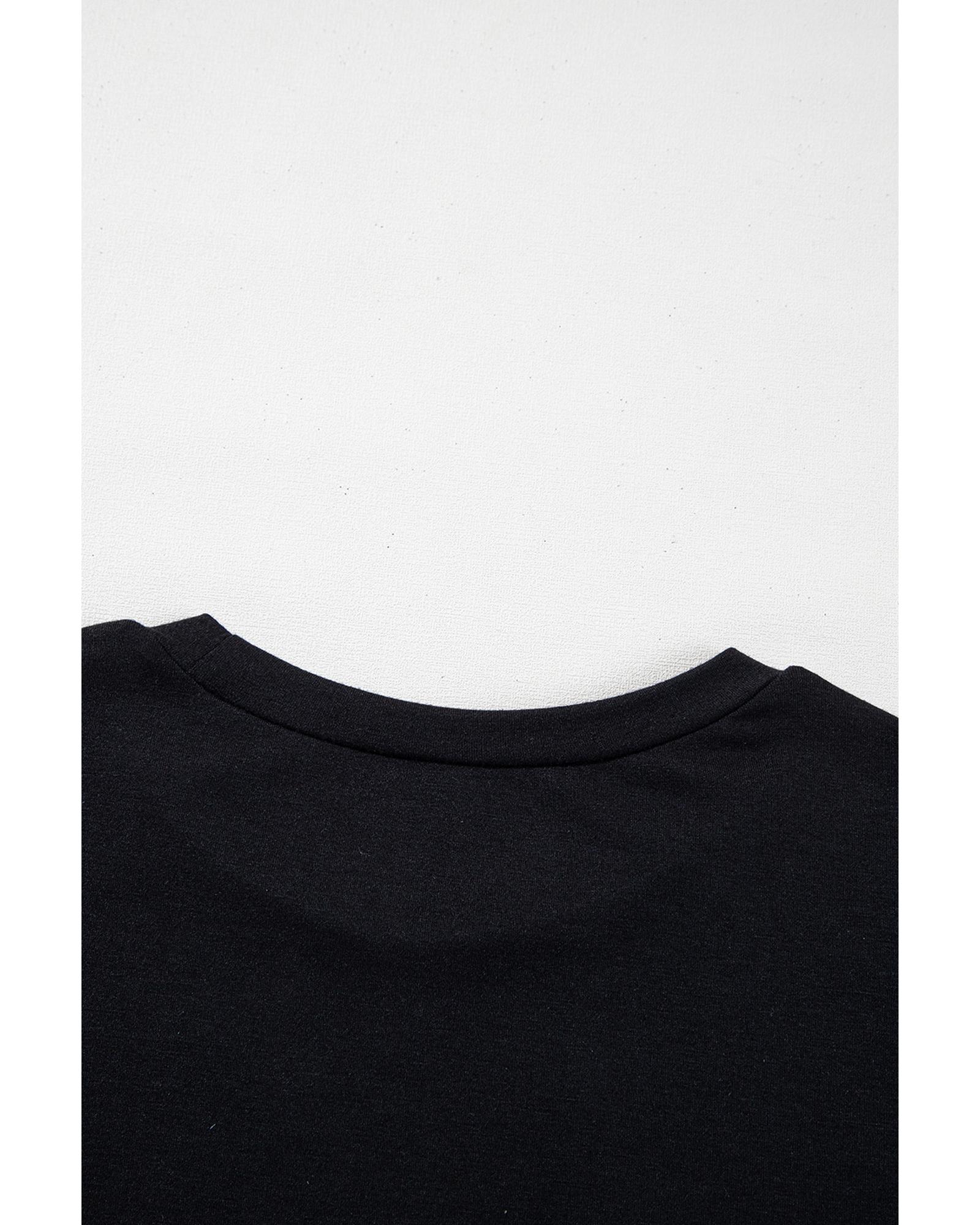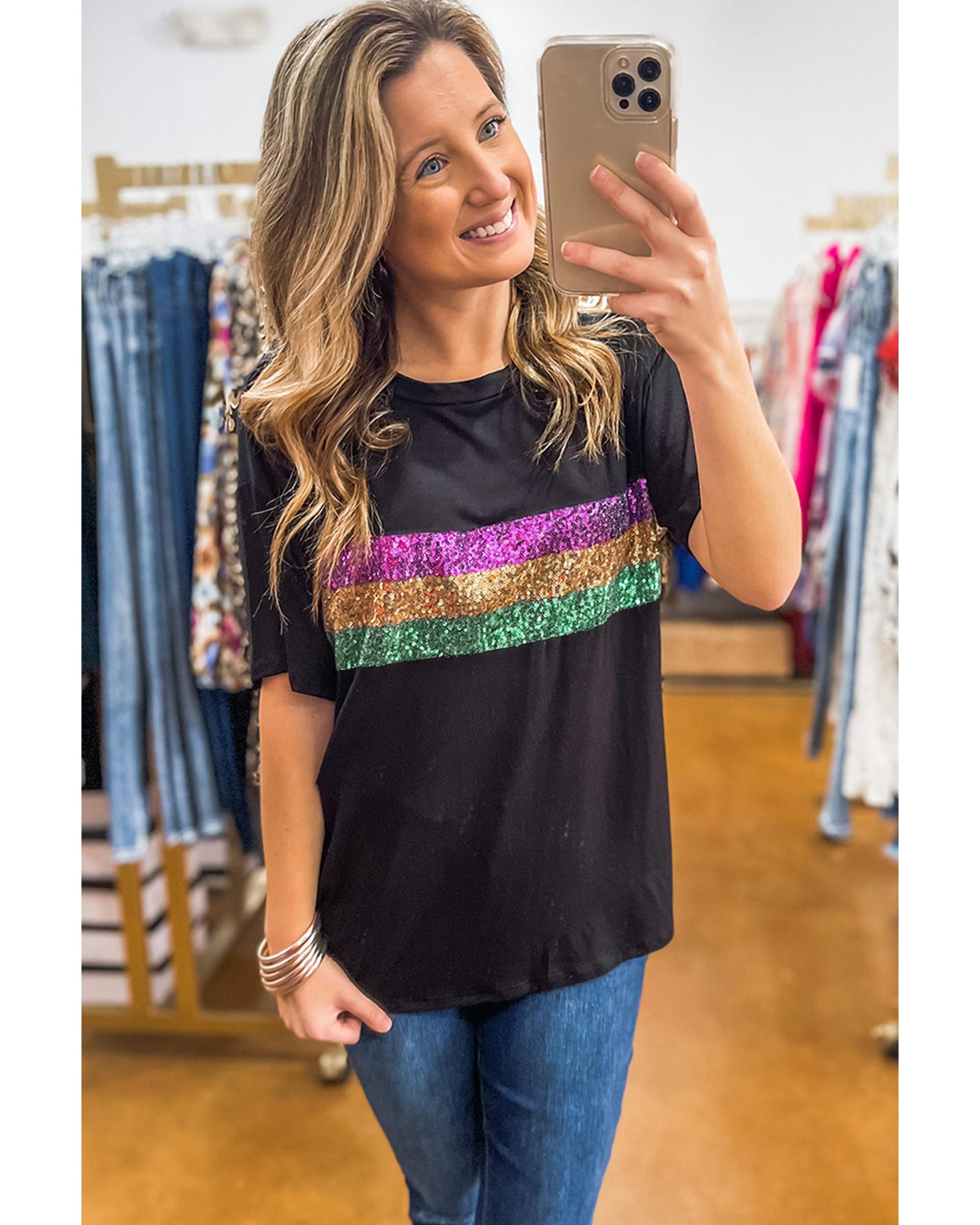 - Black Sequin Stripes Patchwork Mardi Gras Crew Neck T