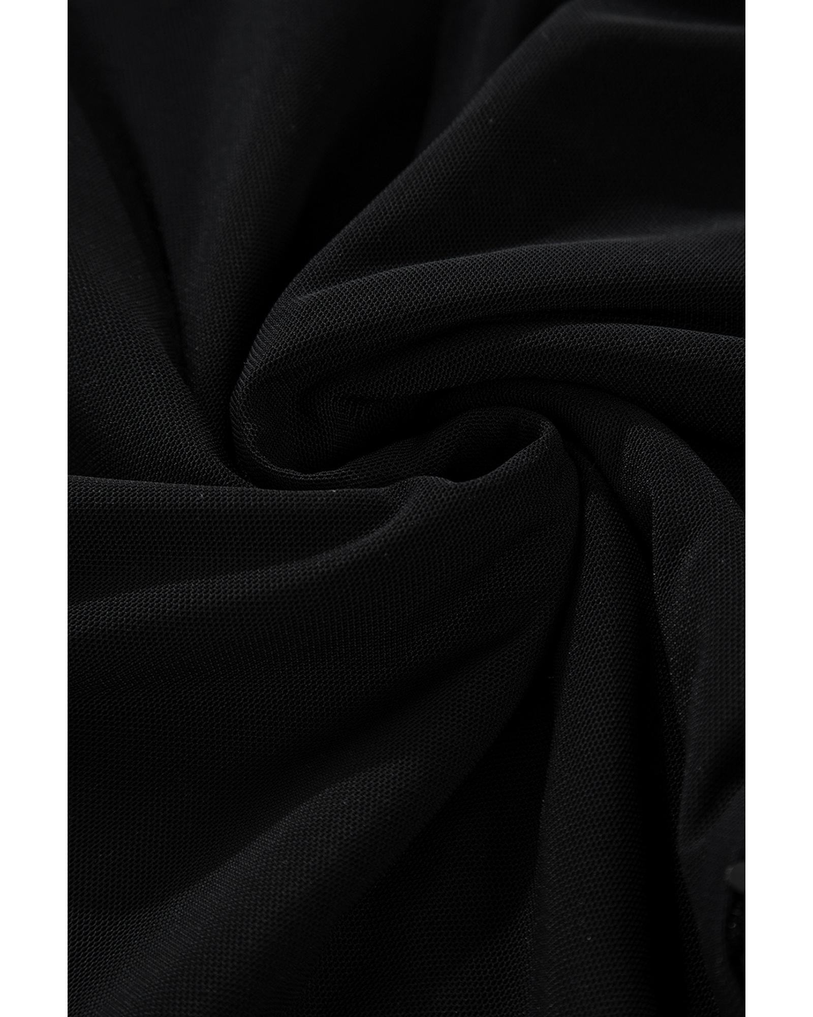 Black Sequin Velvet Sheer Mesh Mock Neck Blouse – M