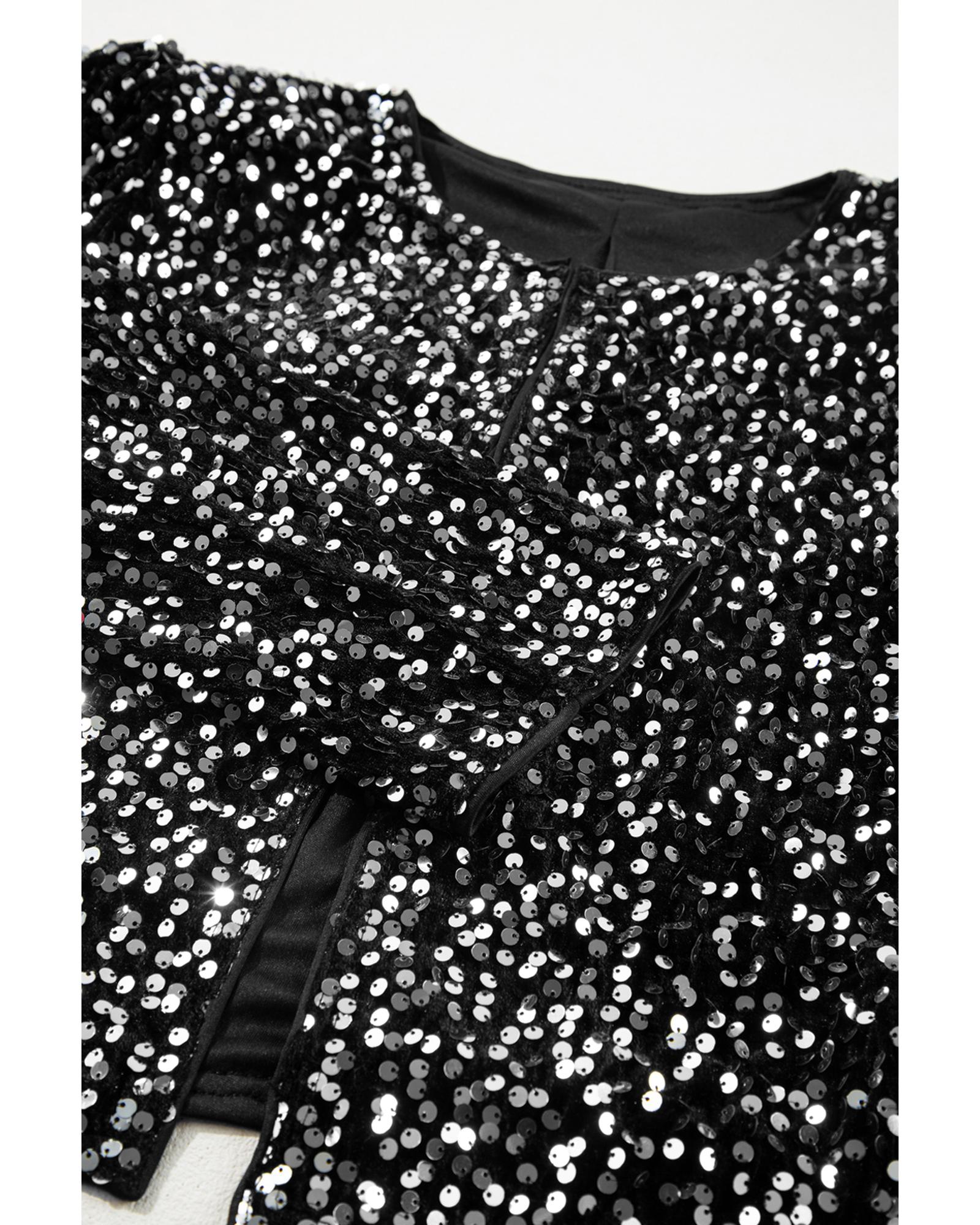 Black Sequined Open Front Cropped Jacket – M