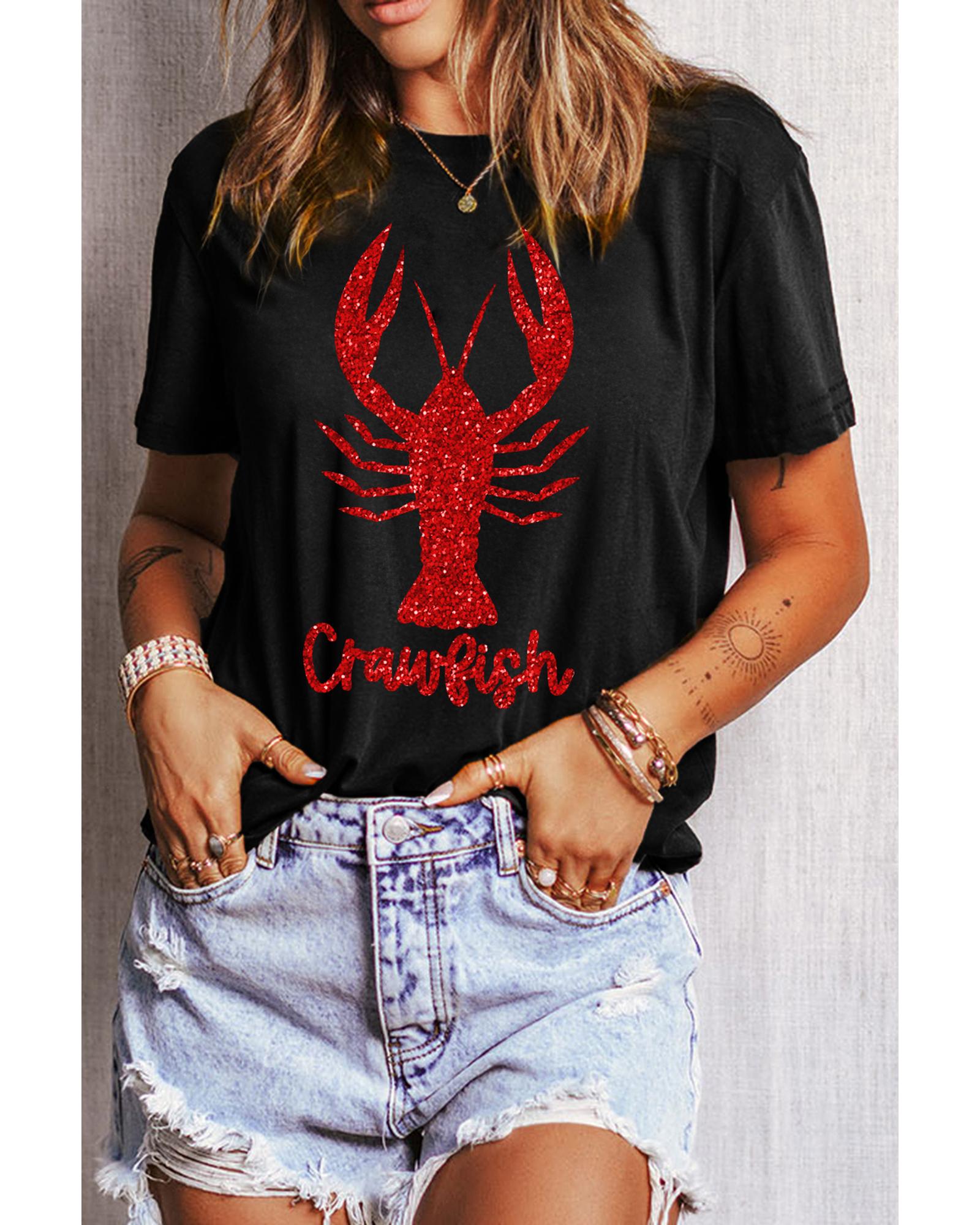 - Black Shimmering Crawfish Graphic Tee