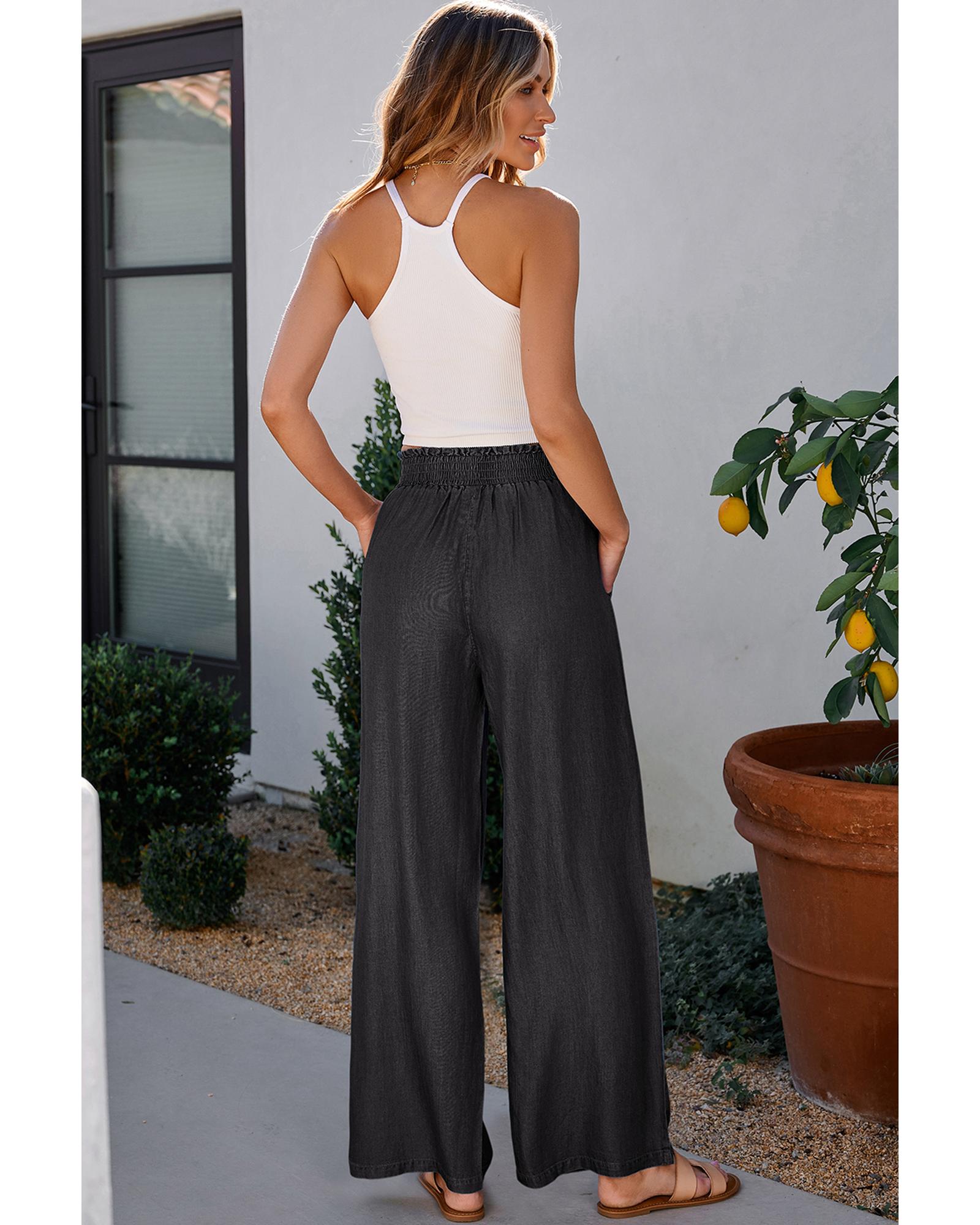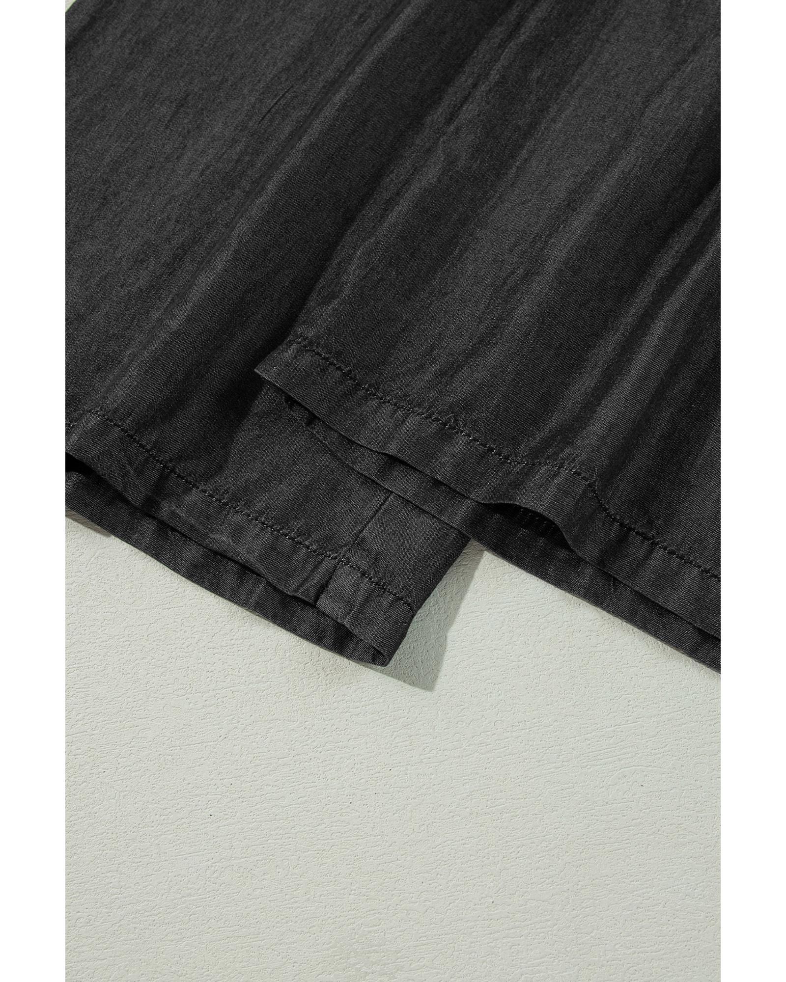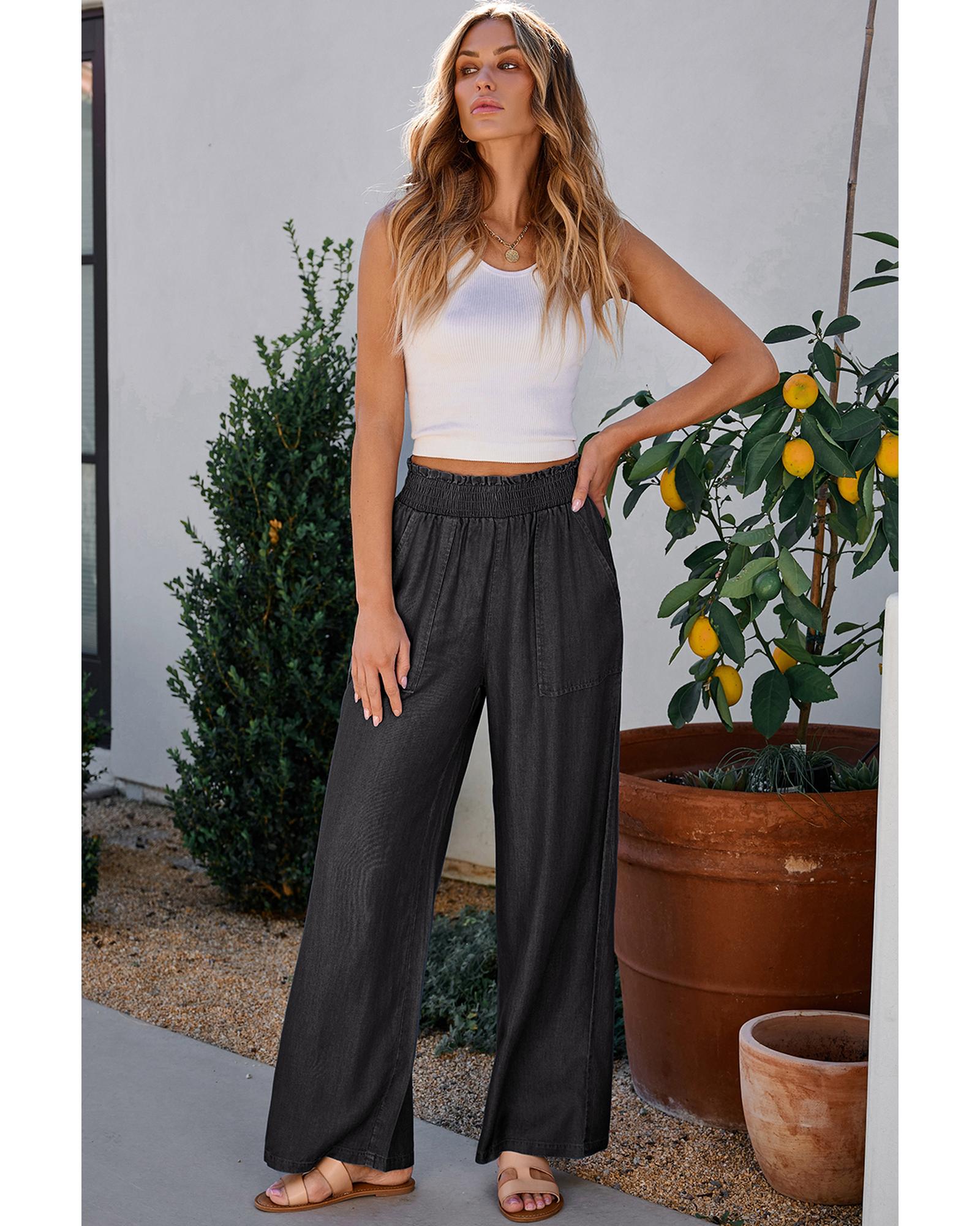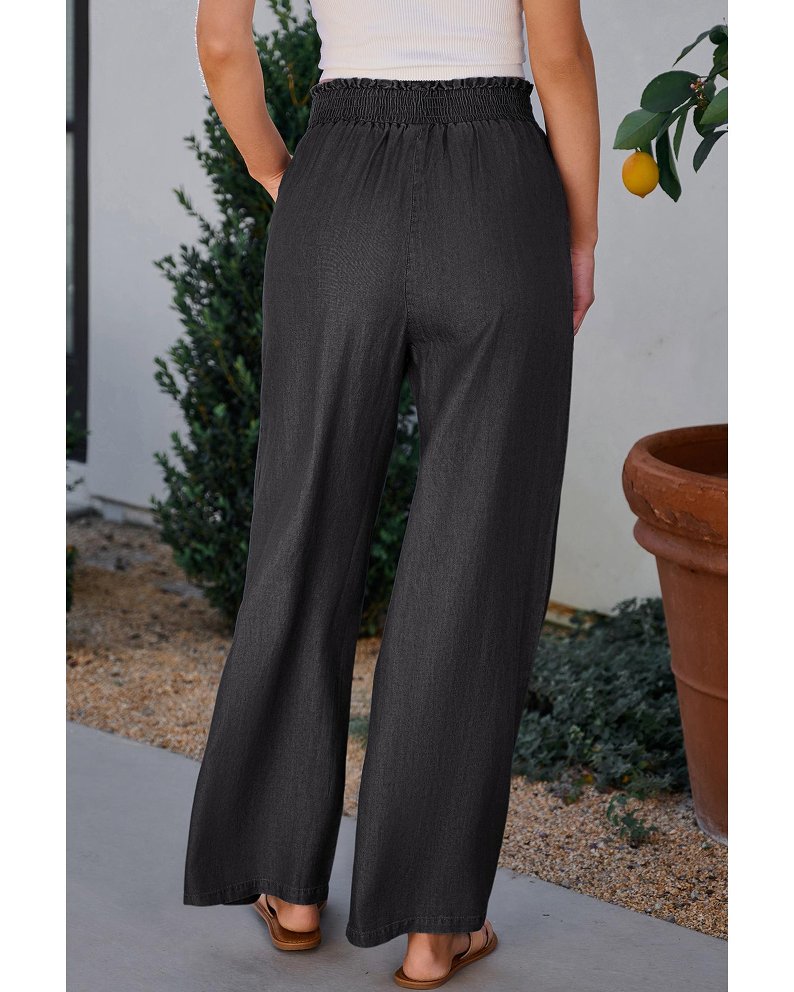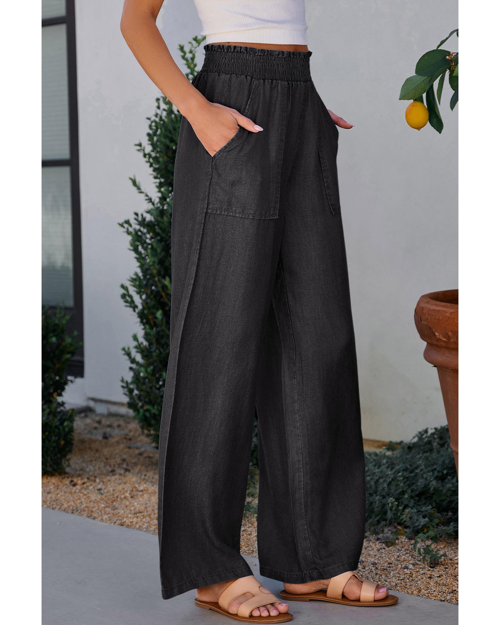 Black Side Pockets Frilled Smocked High Waist Wide Leg Jeans – 2XL
