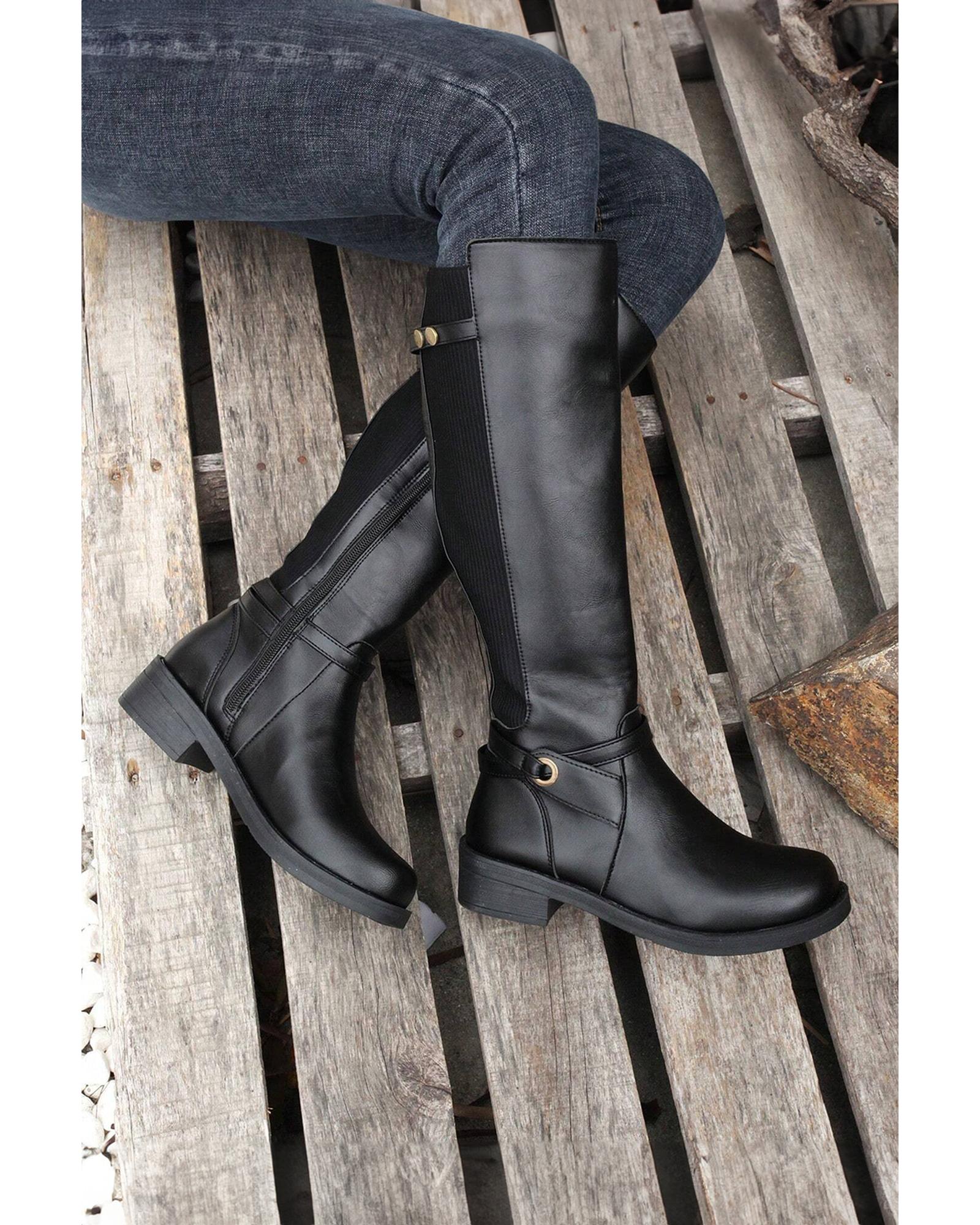 Black Side Zipper Knee High Chunky Low Heel Boots – 41 EU