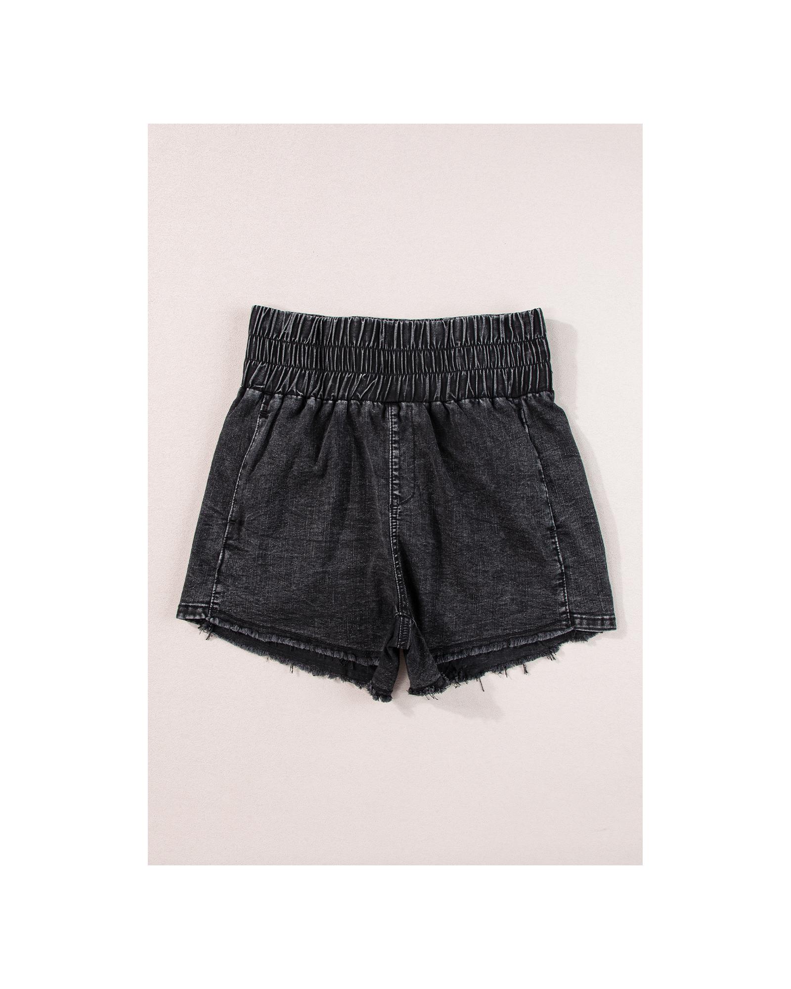Black Smocked High Waist Mineral Washed Jean Shorts – 10 US