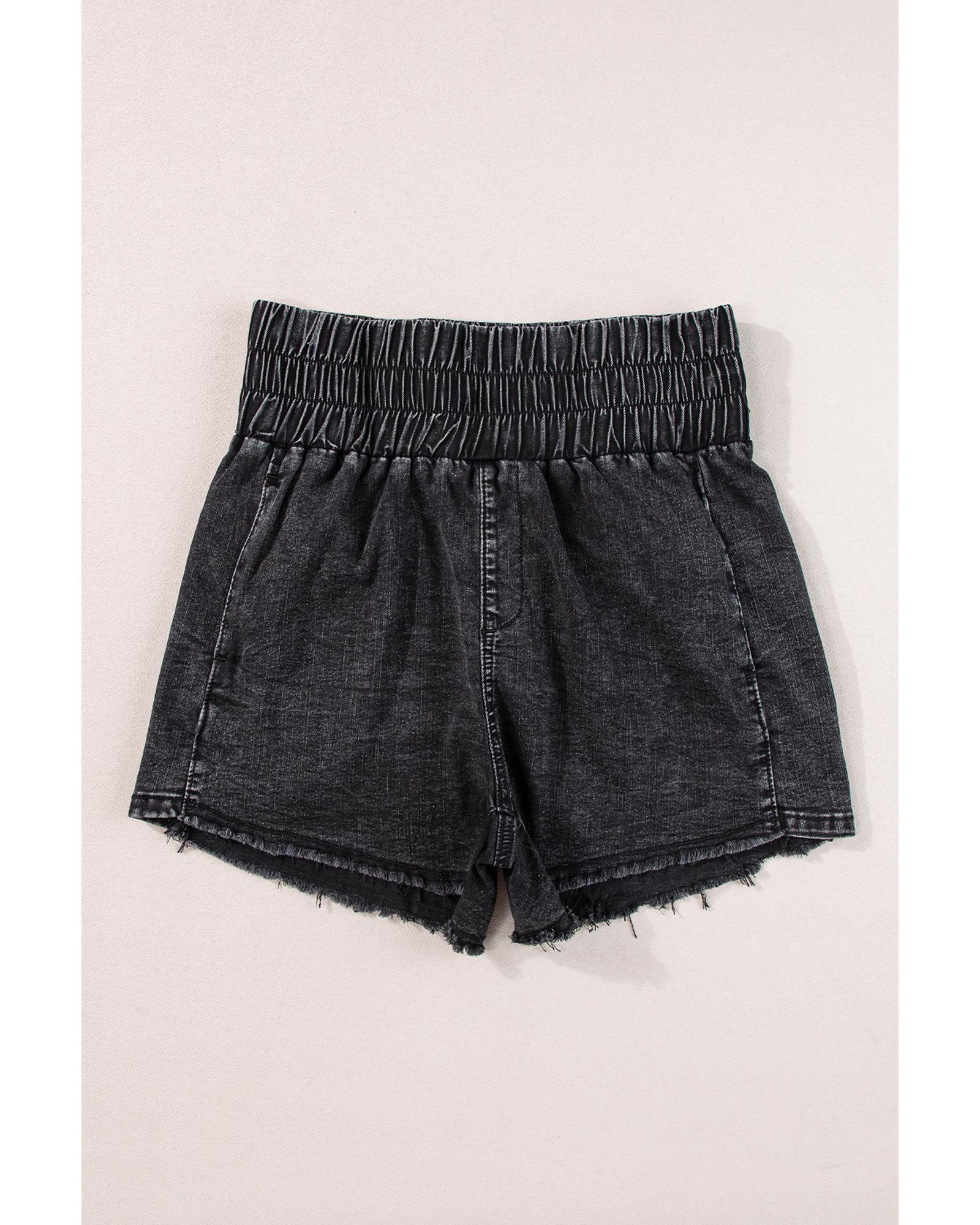 Black Smocked High Waist Mineral Washed Jean Shorts – 12 US