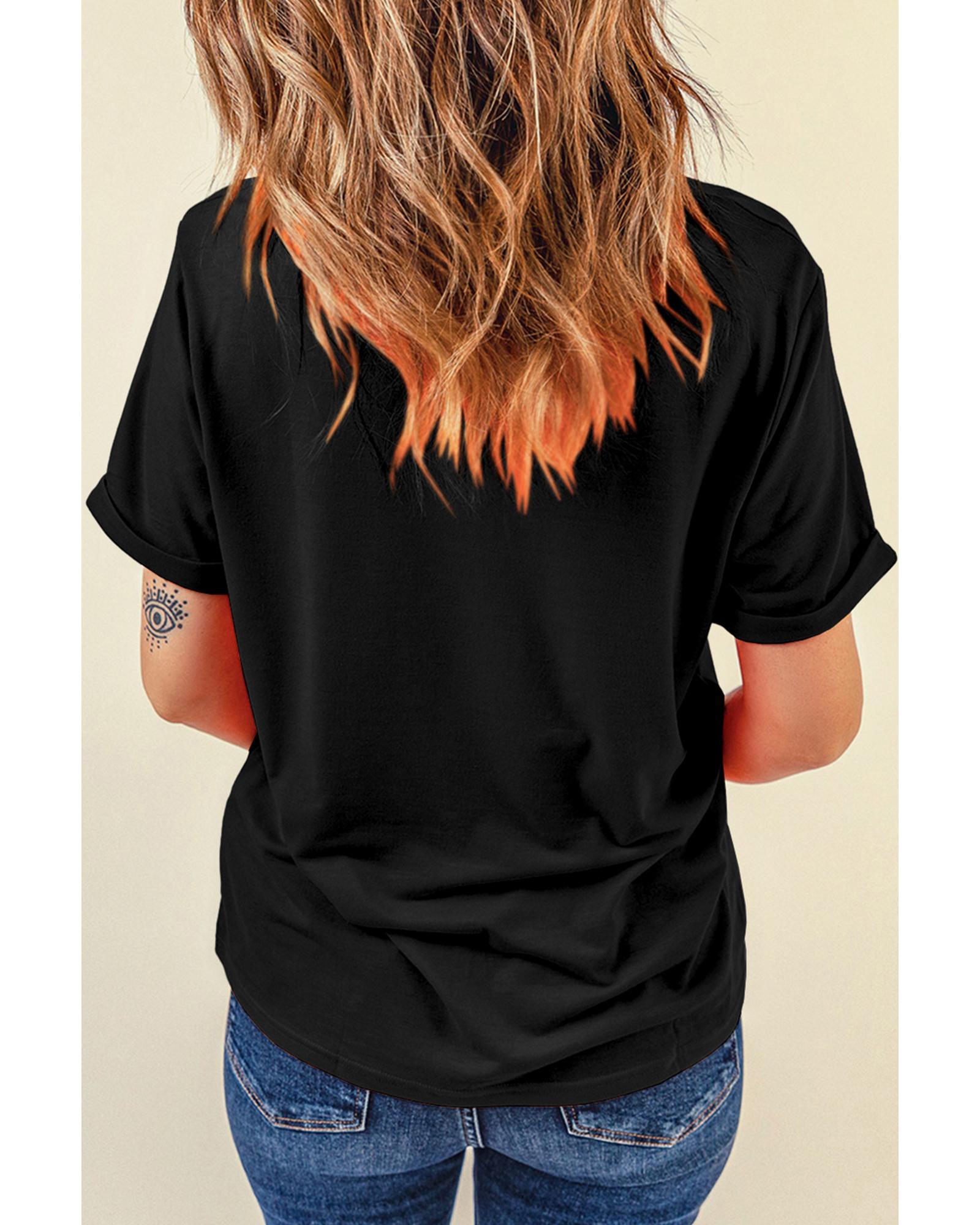Black Sparkle Rhinestone Smile Face Graphic T Shirt - S