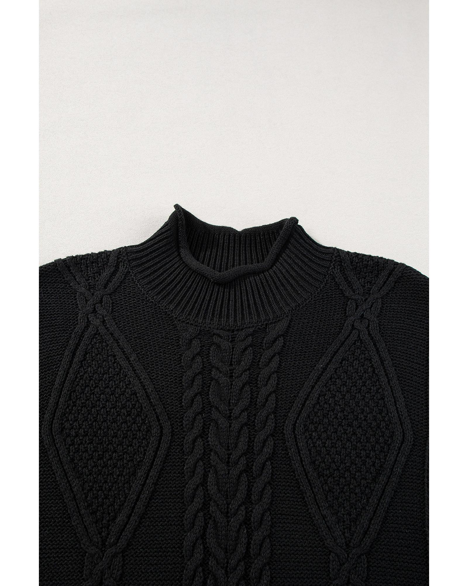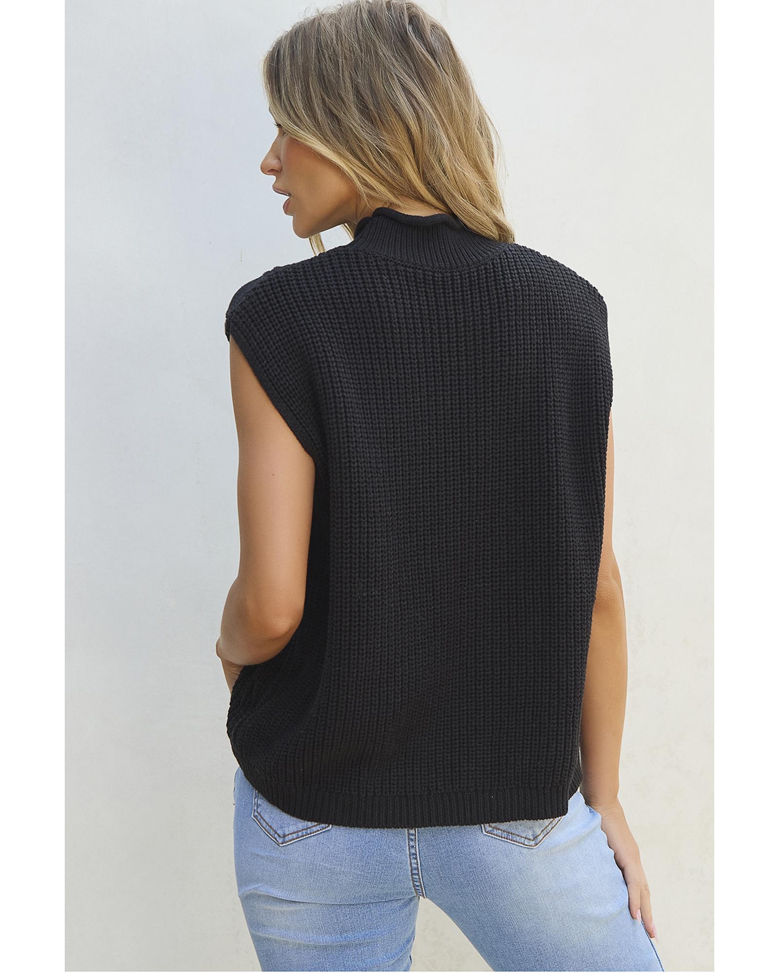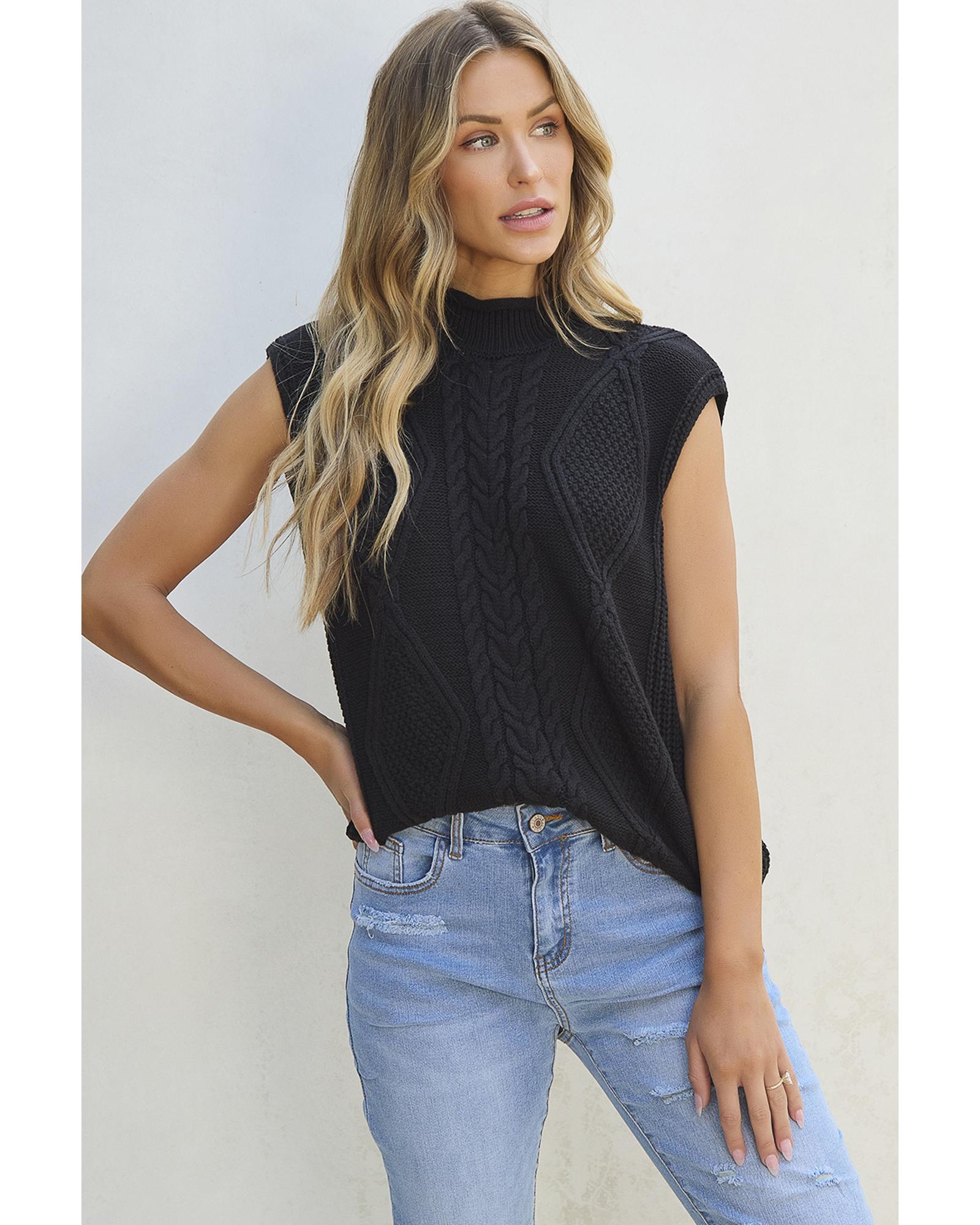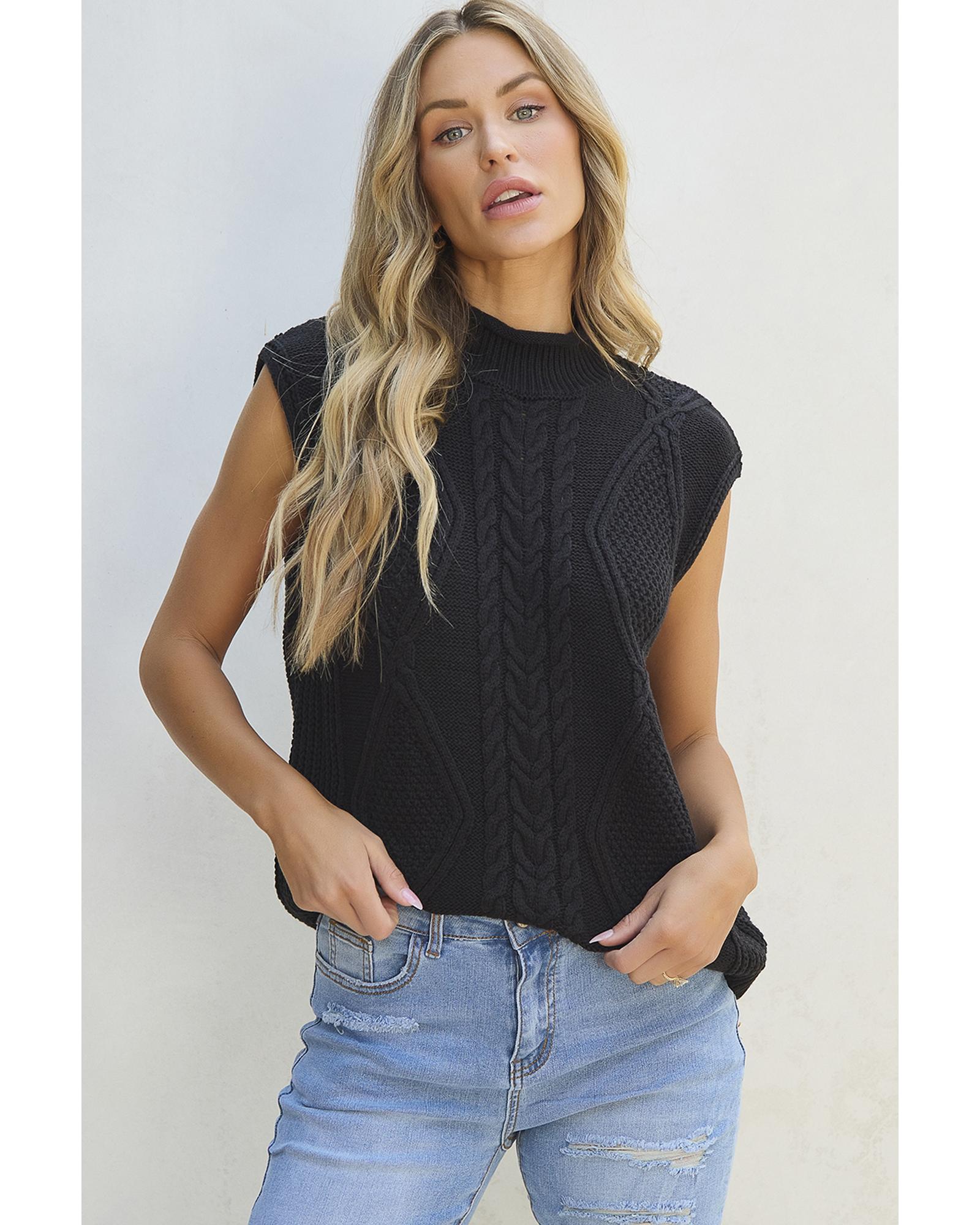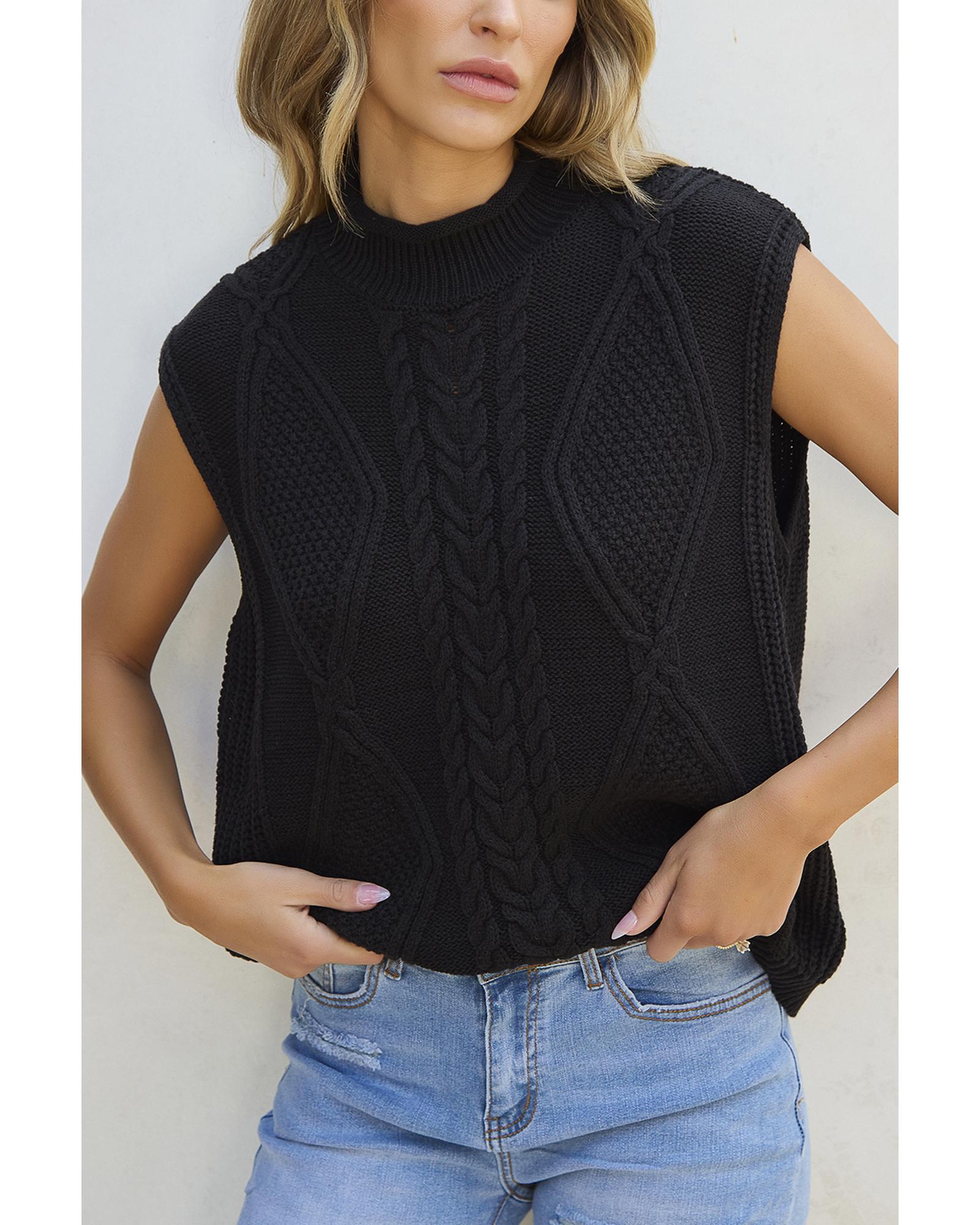 Black Solid Color Cable Knit High Neck Sweater Vest – M