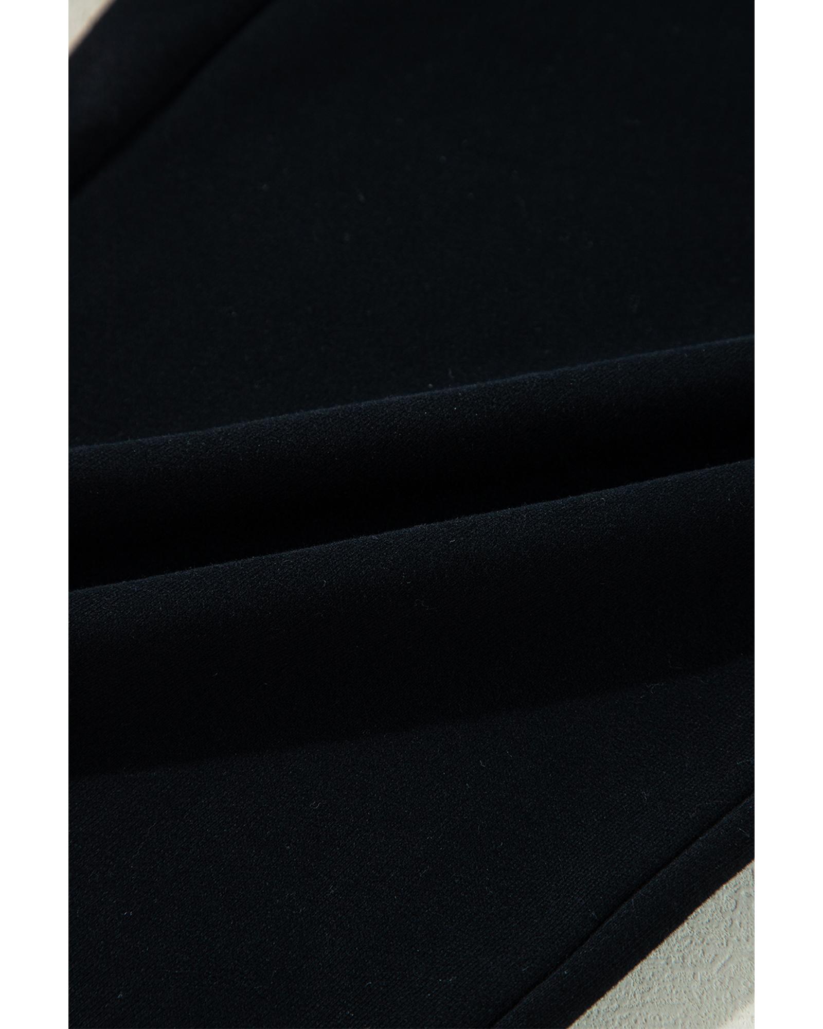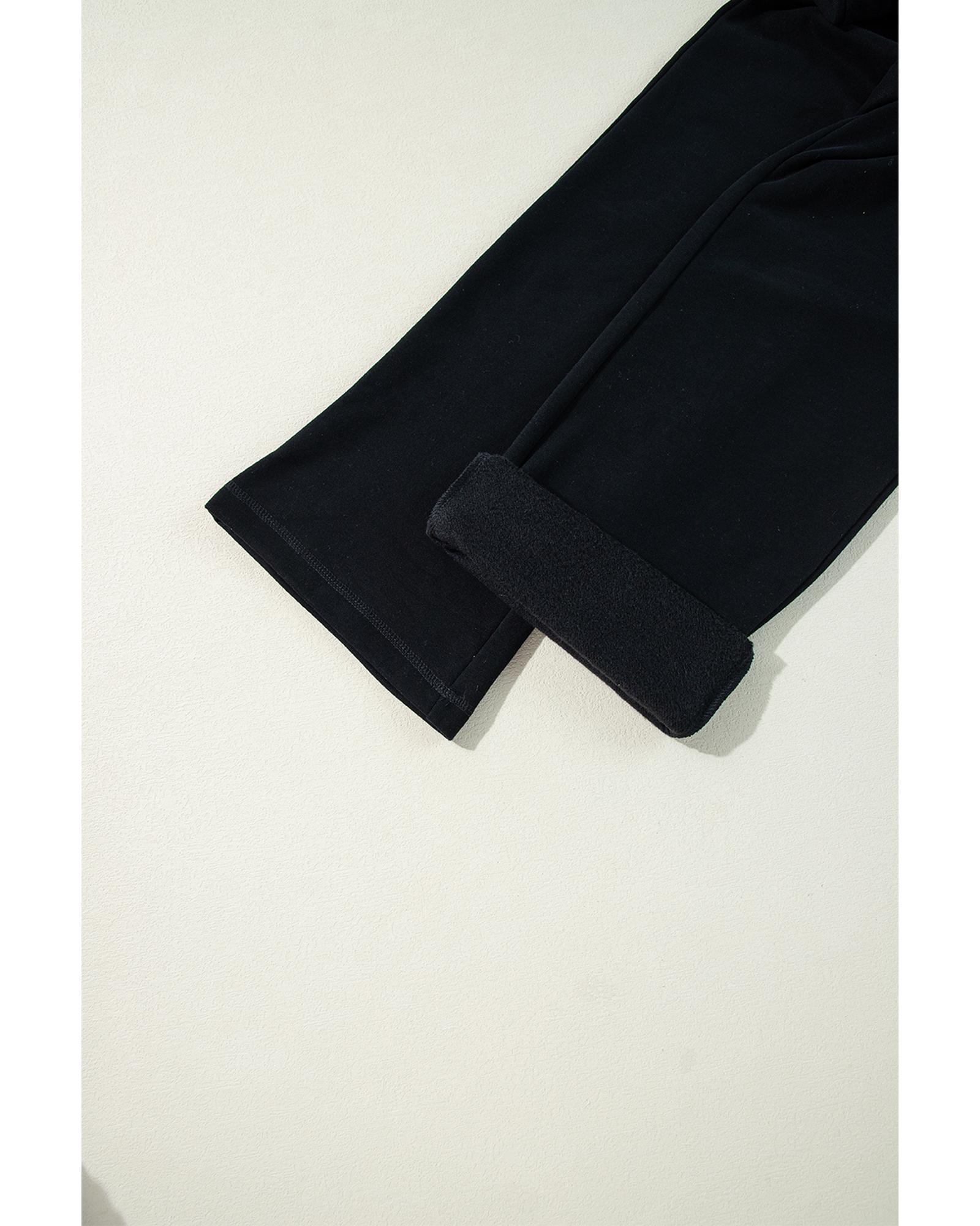 Black Solid Color Fleece Lined Drawstring Waist Casual Pants – S
