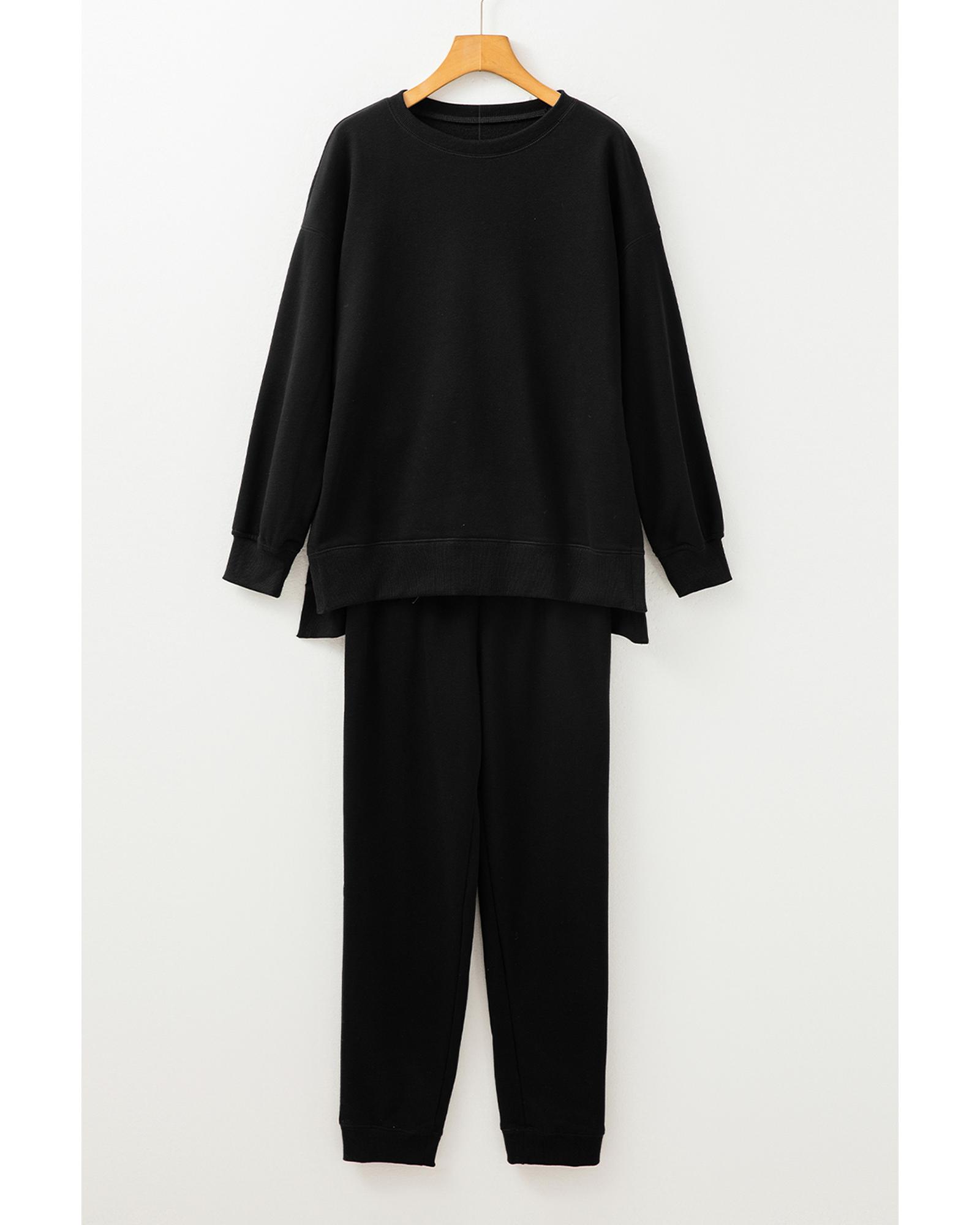 - Black Solid Color High Low Pullover and Skinny Pants Set