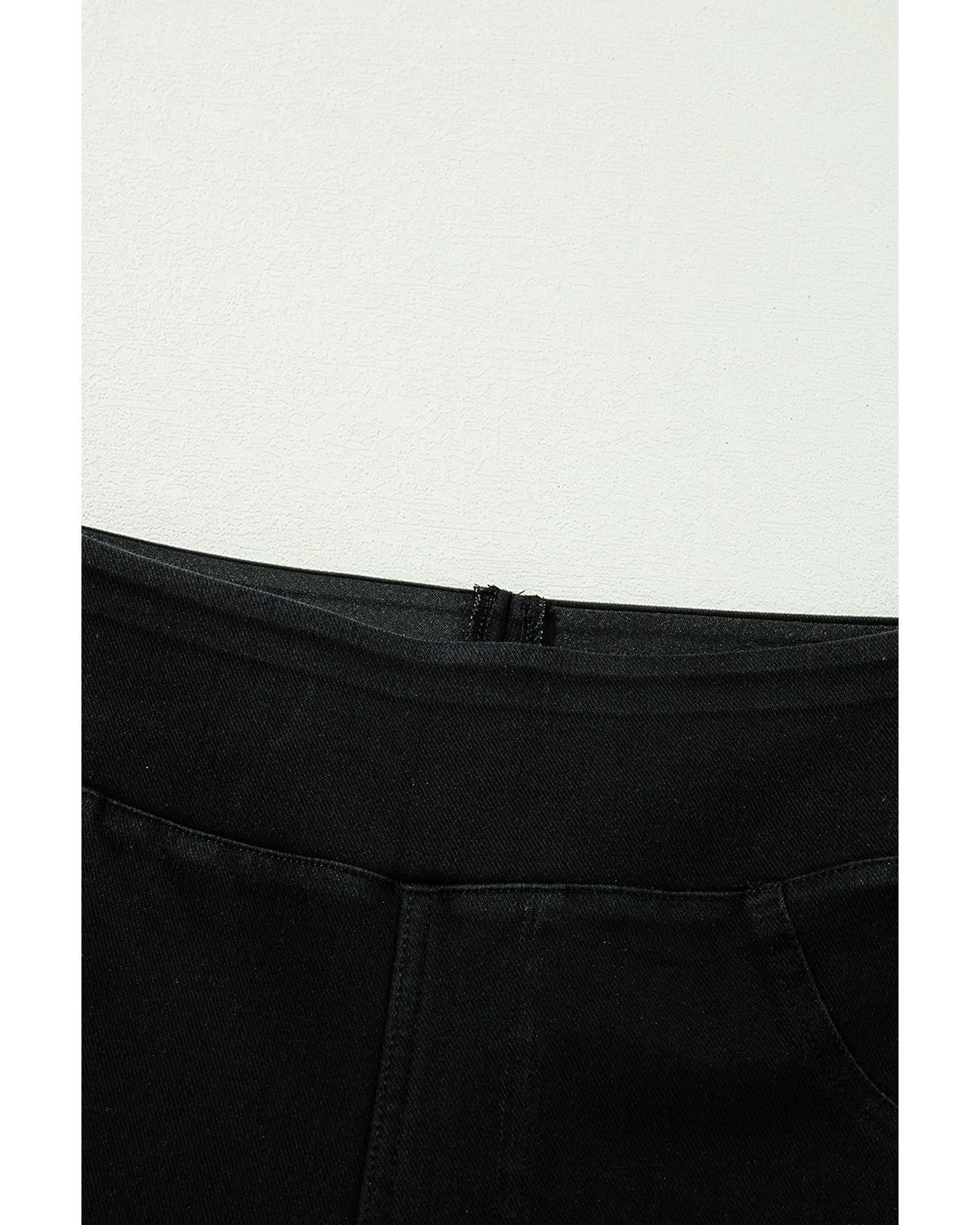 Black Solid Color High Waist Stretchy Slim Fit Jeggings – S