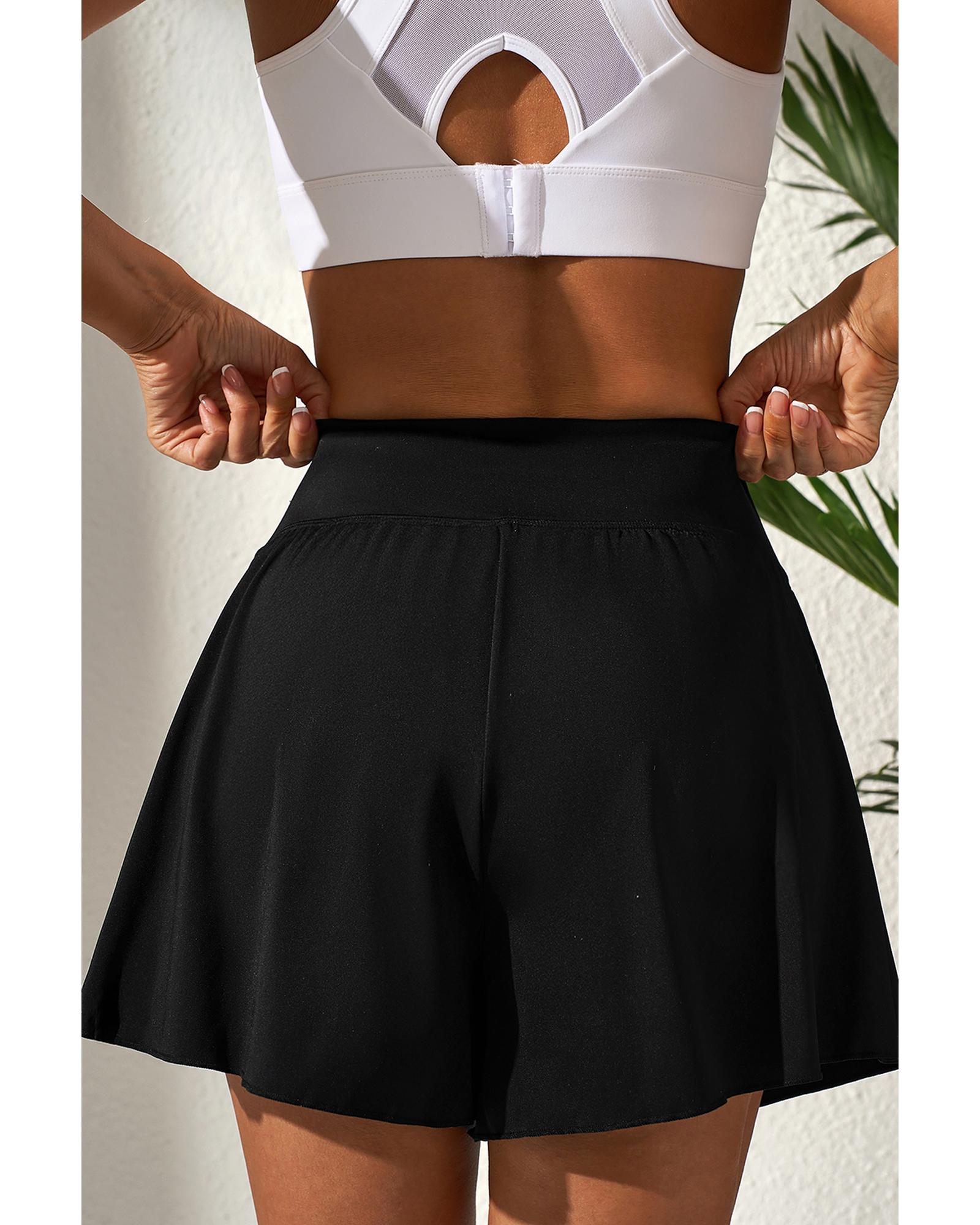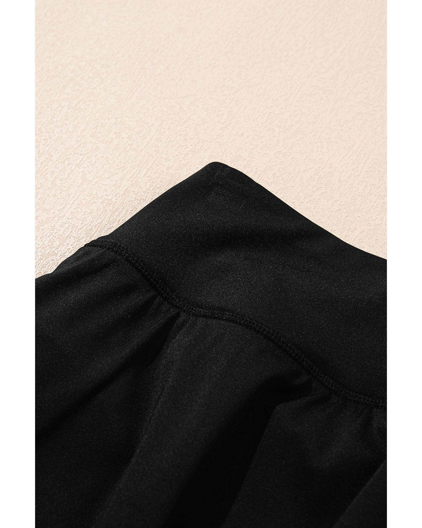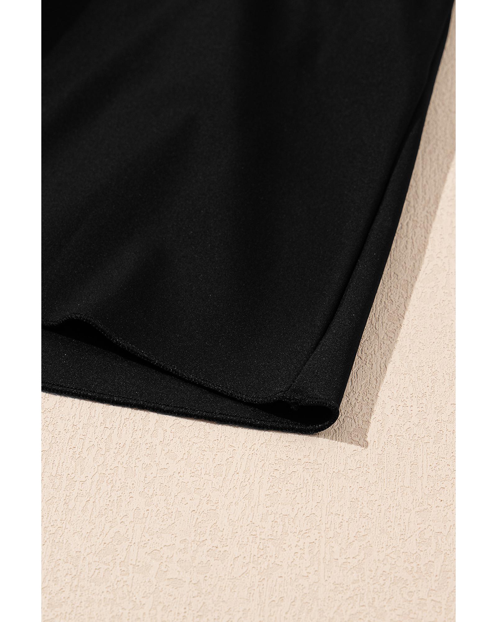 Black Solid Color High Waist Wide Leg Swim Bottom – 2XL