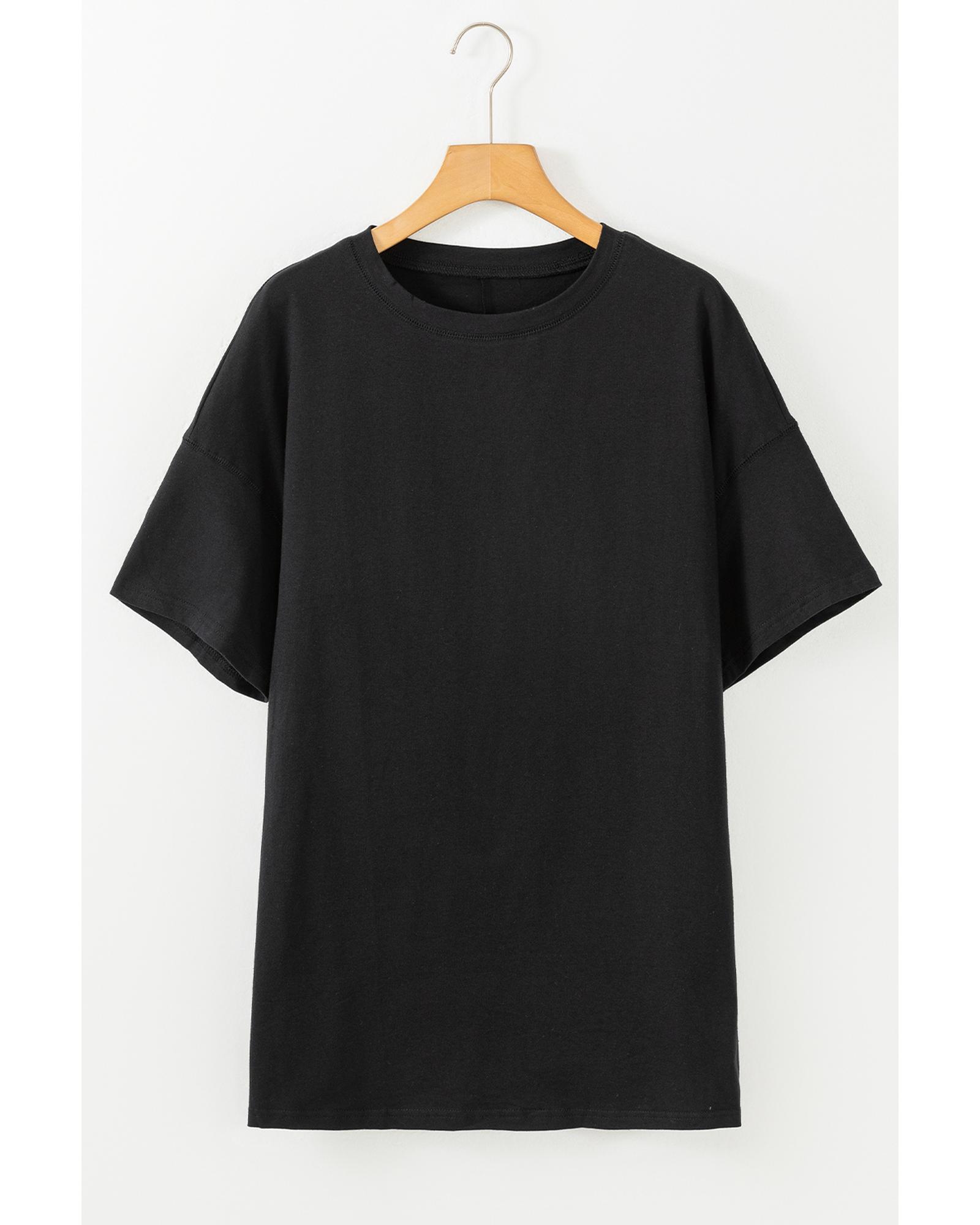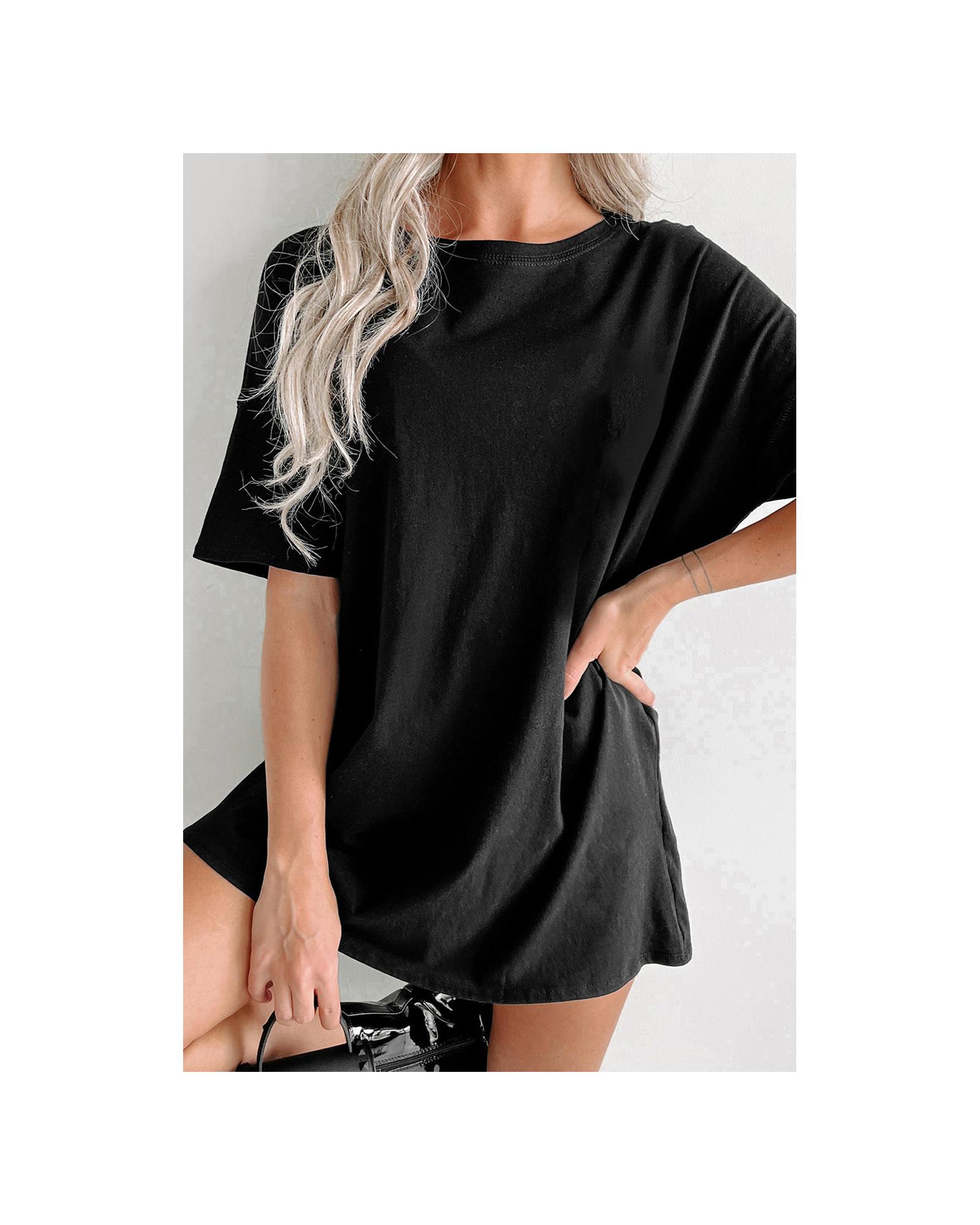 Black Solid Color Round Neck Basic Tunic T Shirt – L