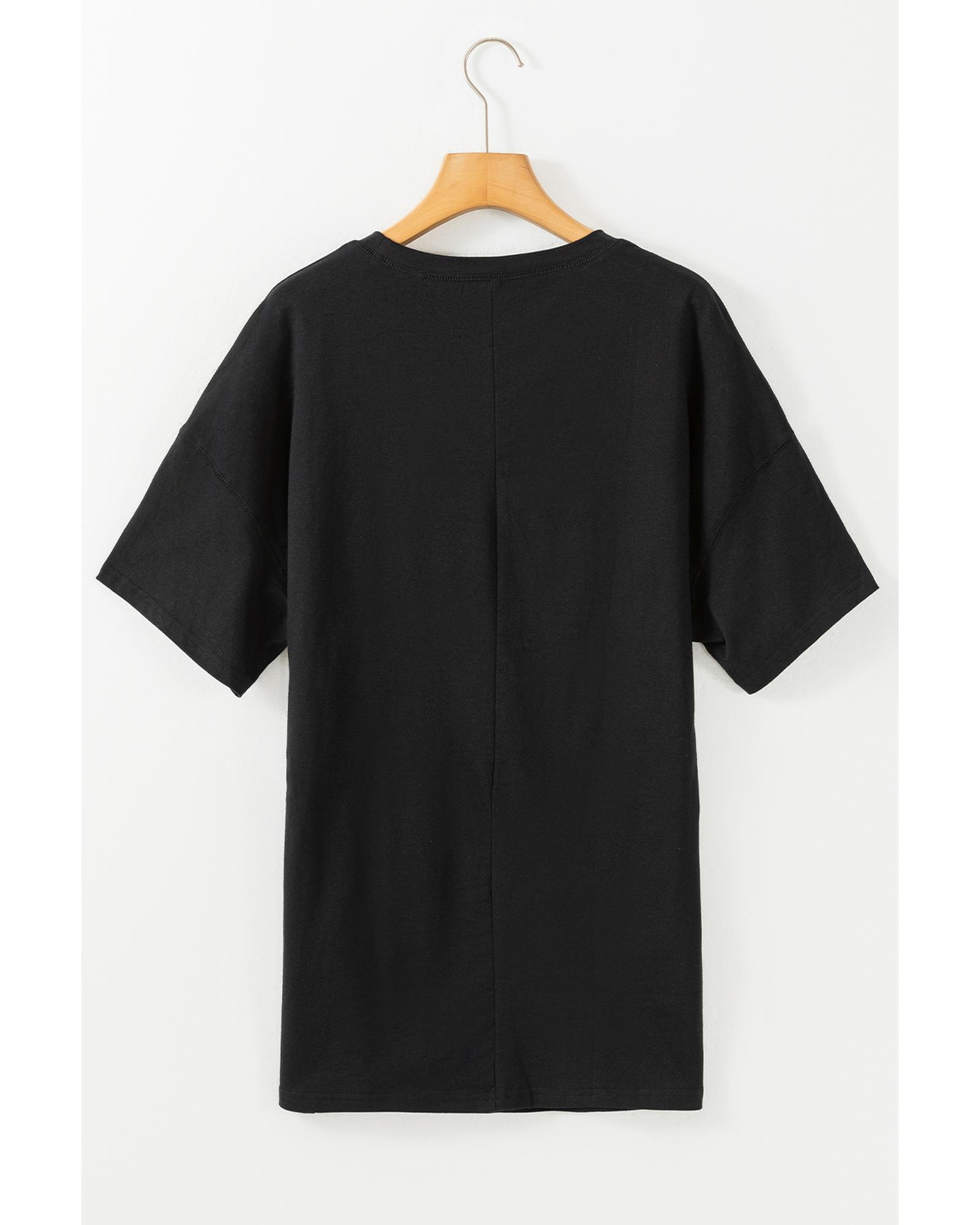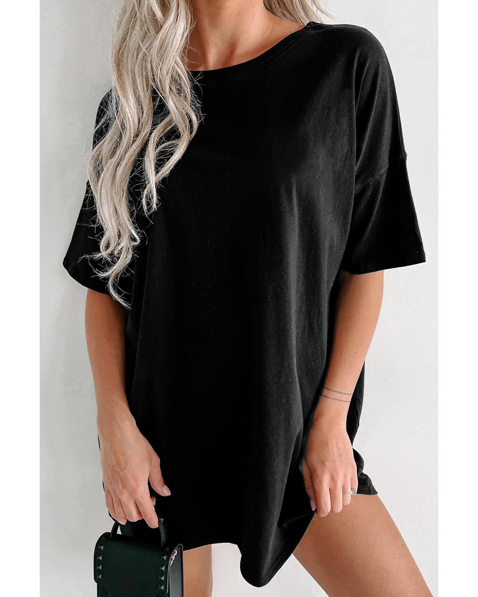 Black Solid Color Round Neck Basic Tunic T Shirt – XL
