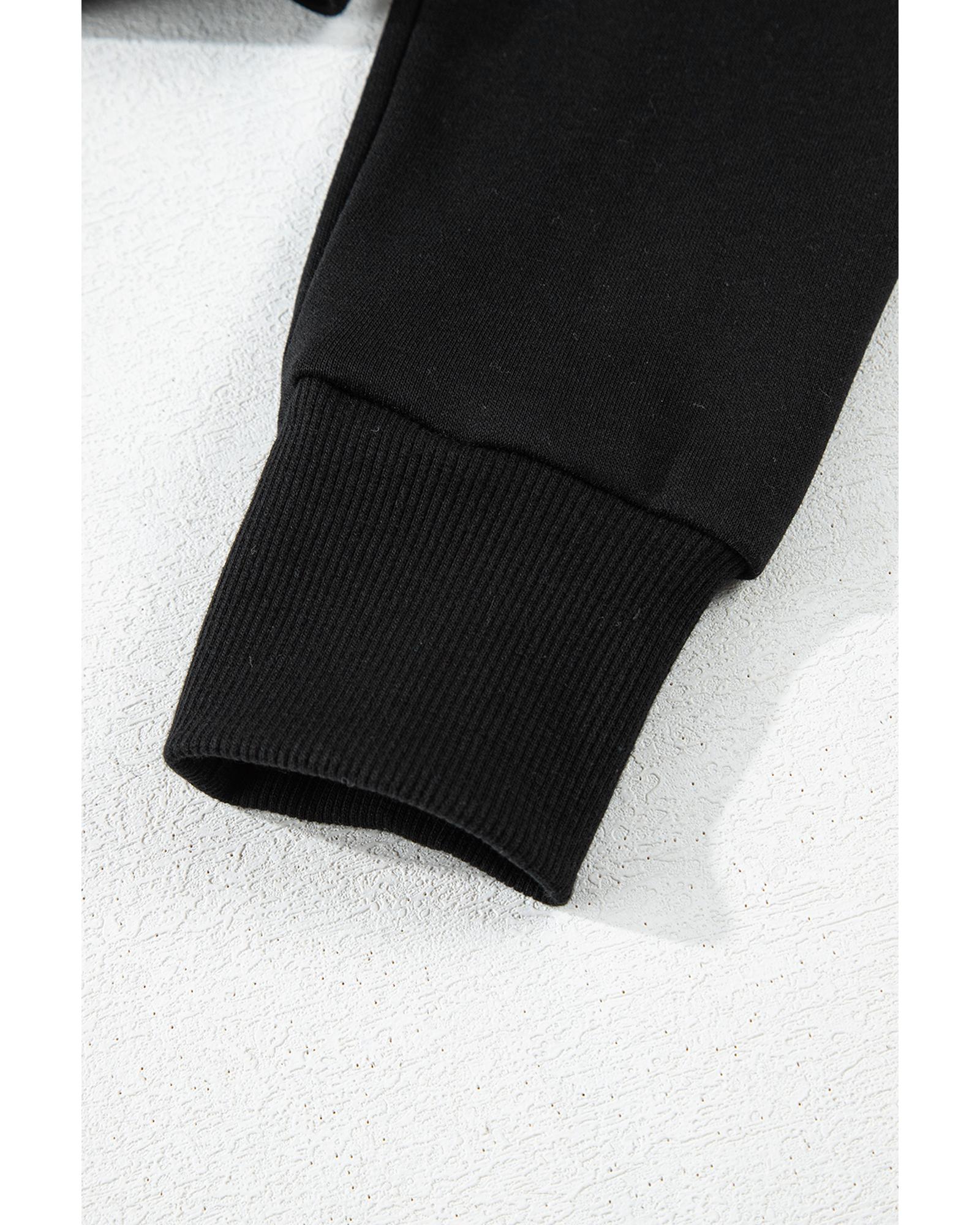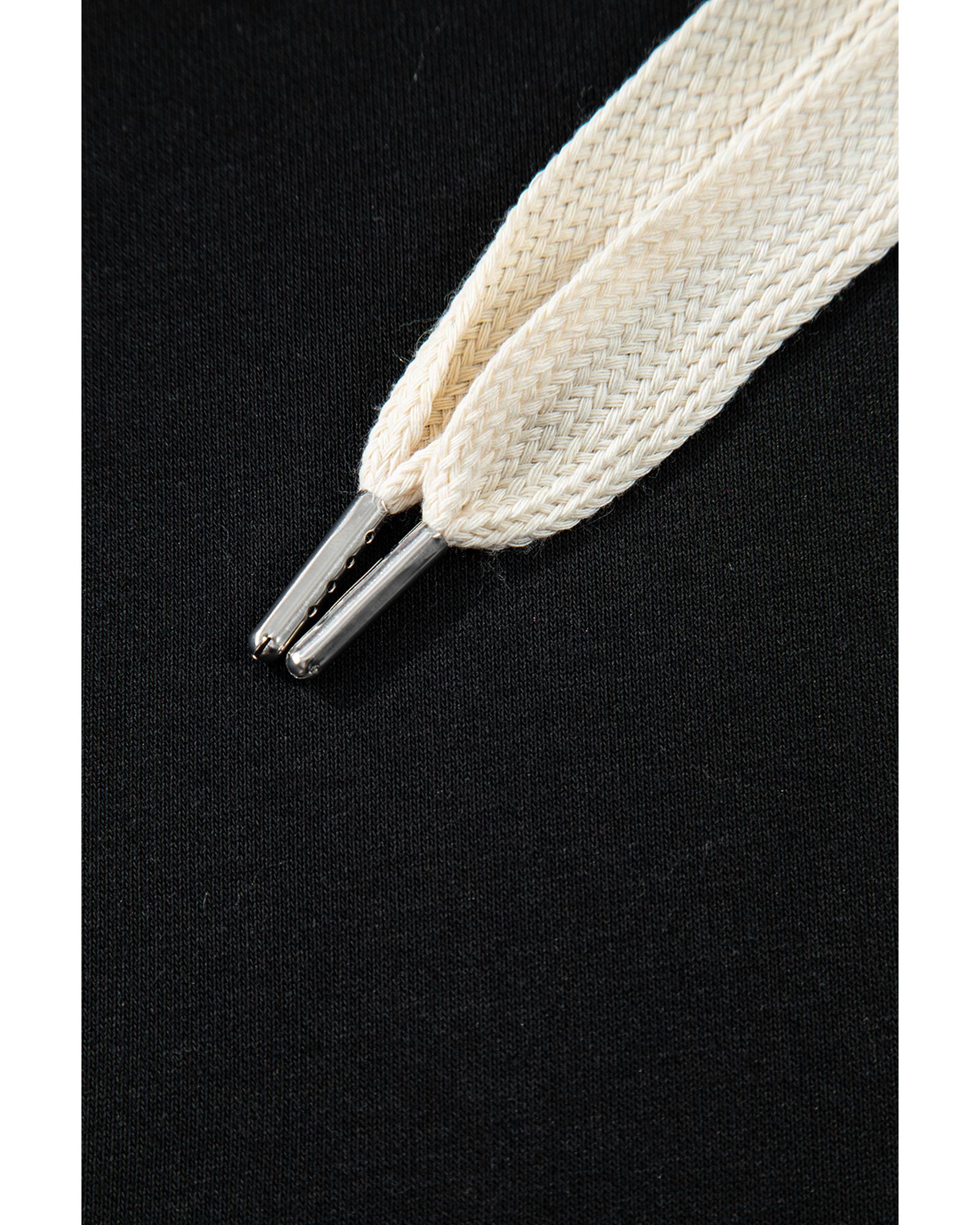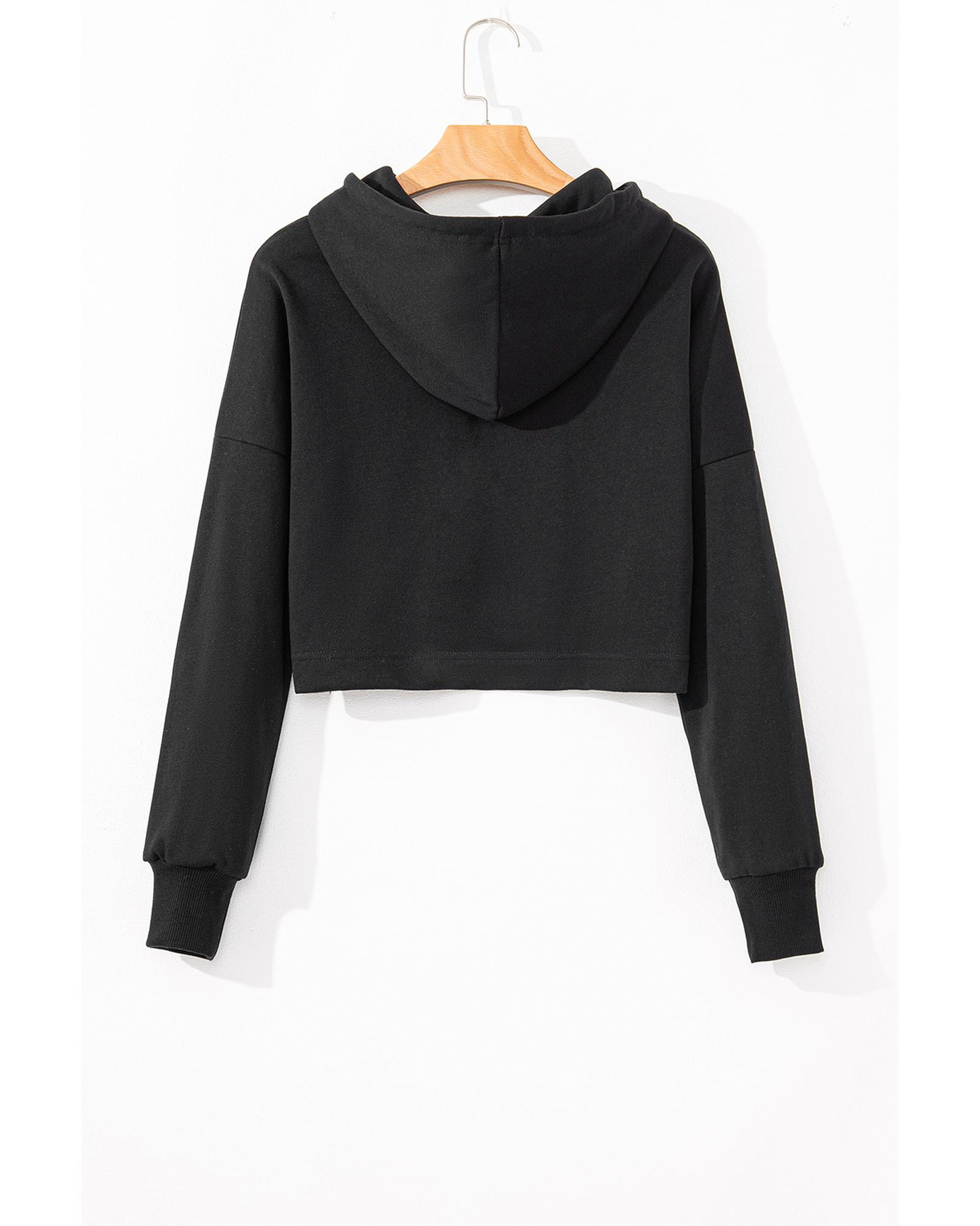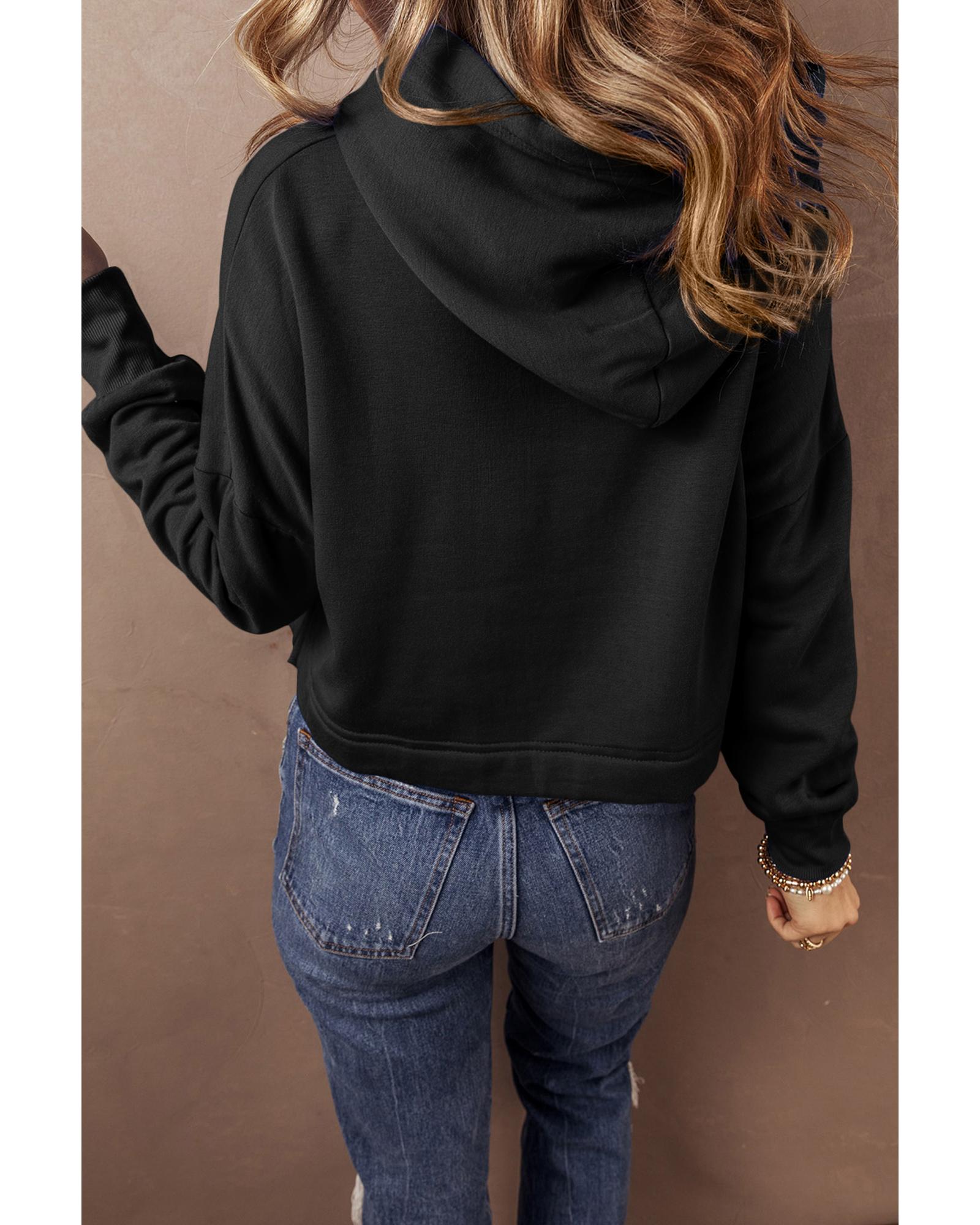 Black Solid Drop Shoulder Drawstring Cropped Hoodie – M
