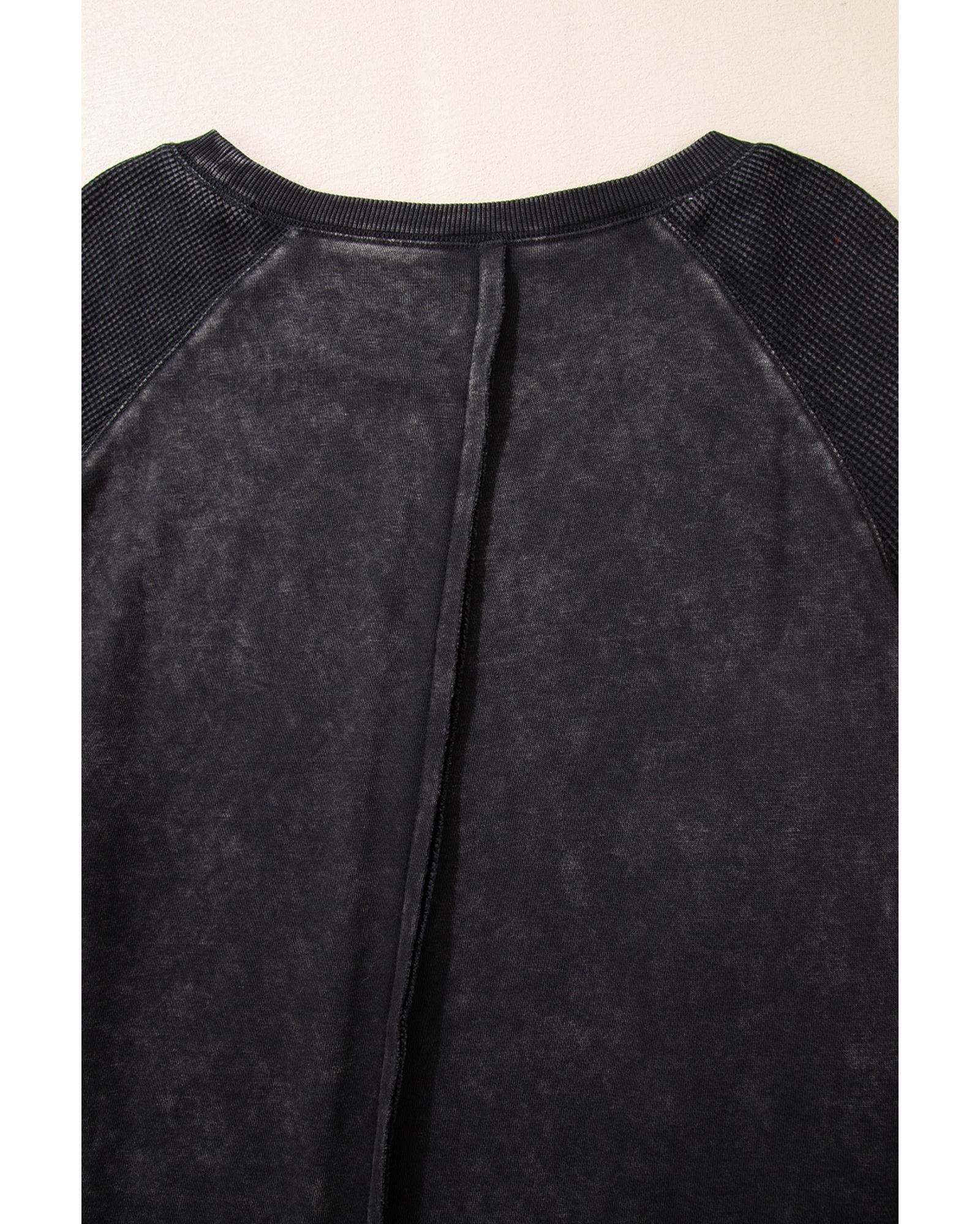 Black Solid Waffle Knit Patchwork Raglan Sleeve Sweatshirt – XL