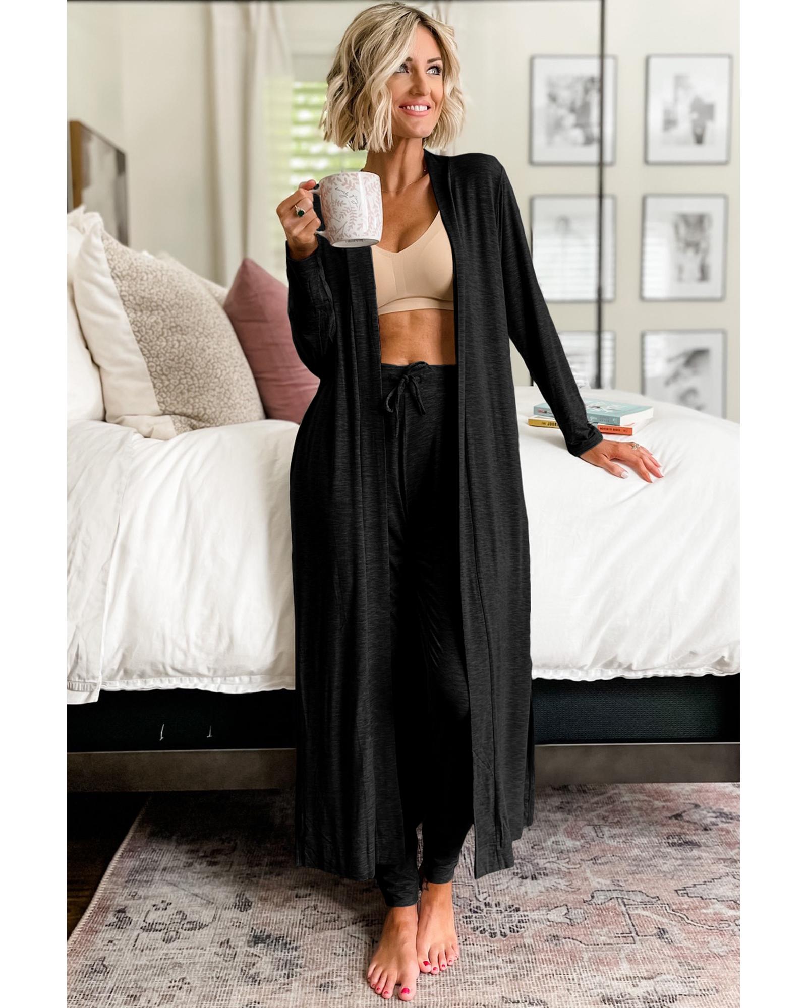 Black Split Long Cardigan and Skinny Pants Lounge Set – L