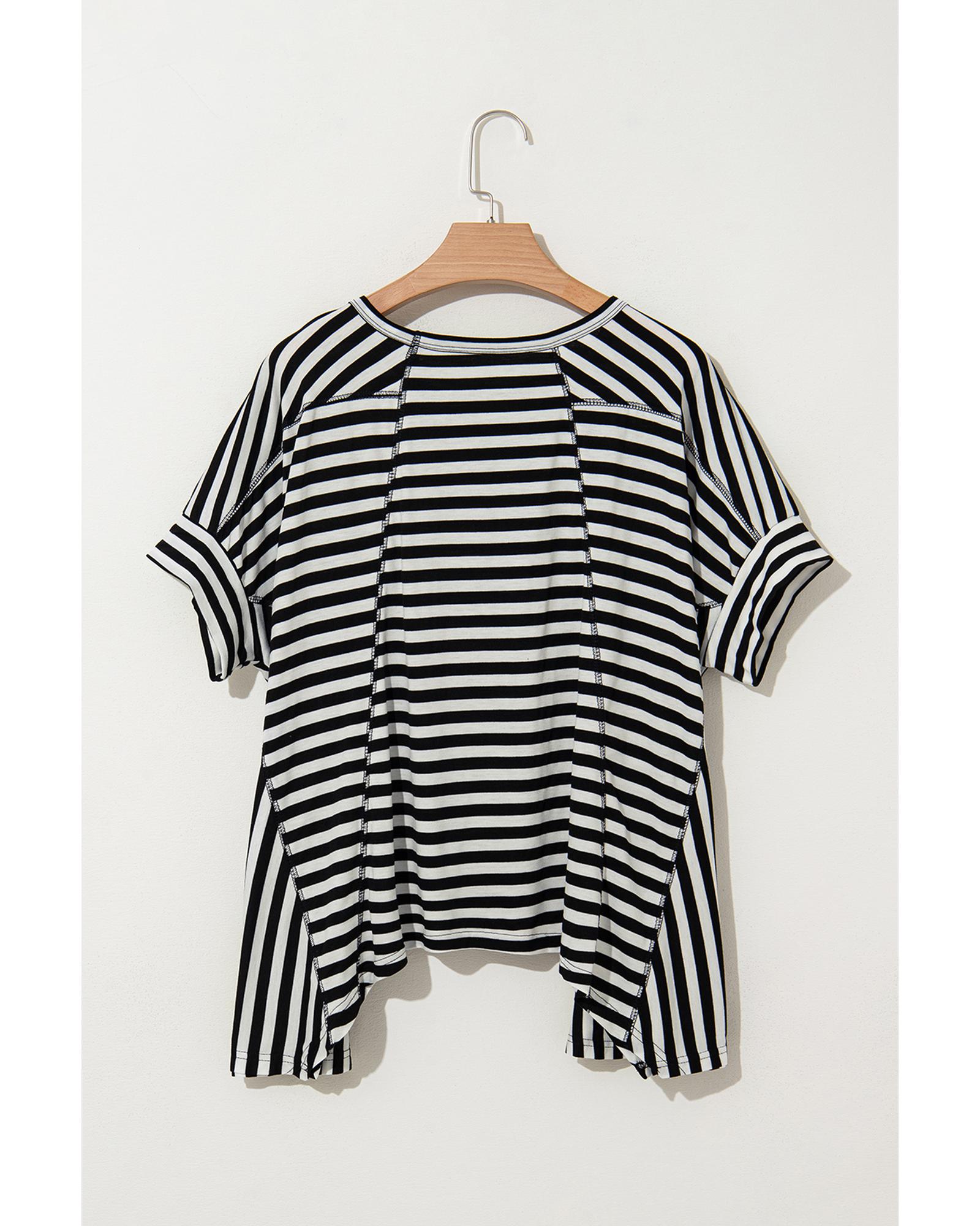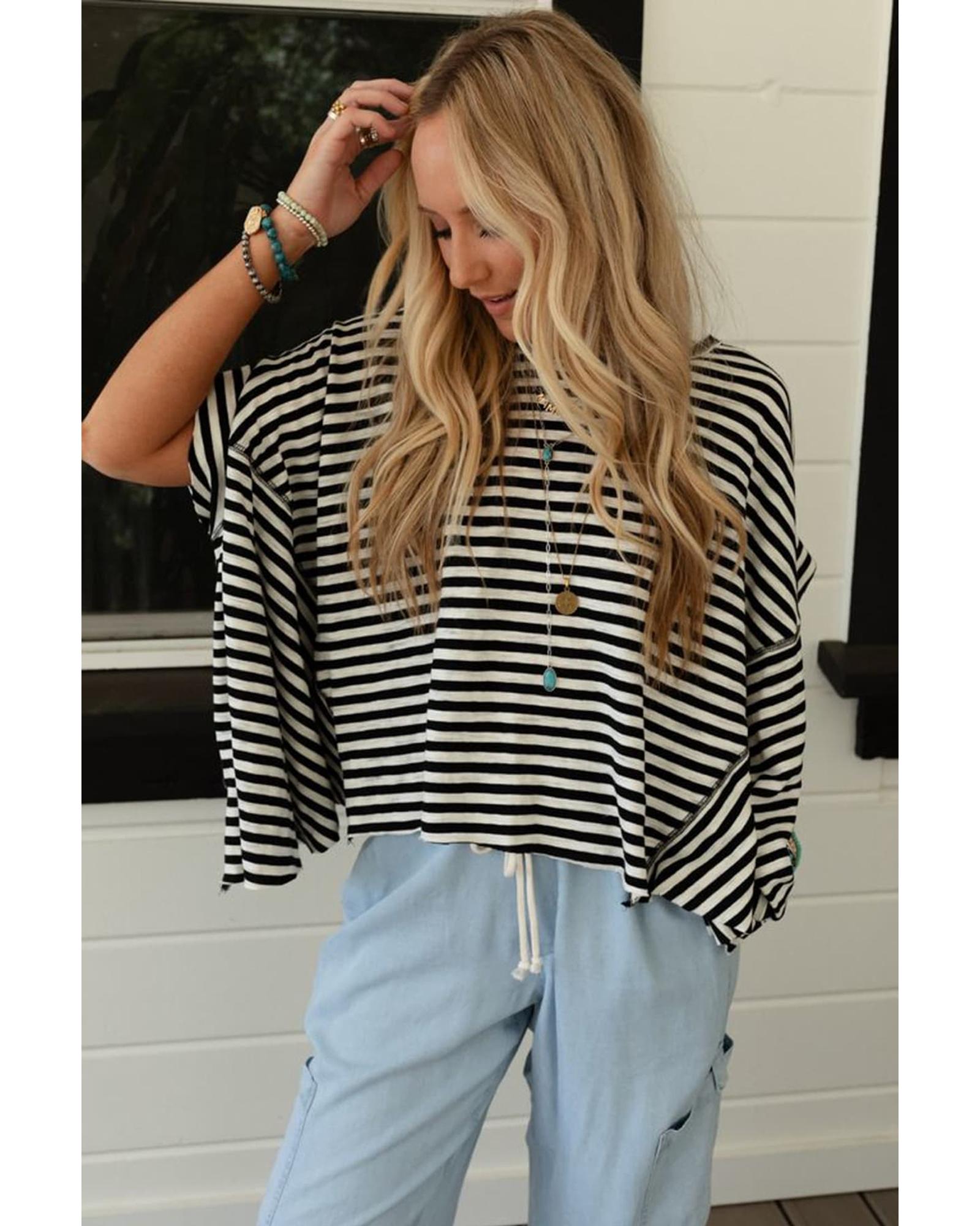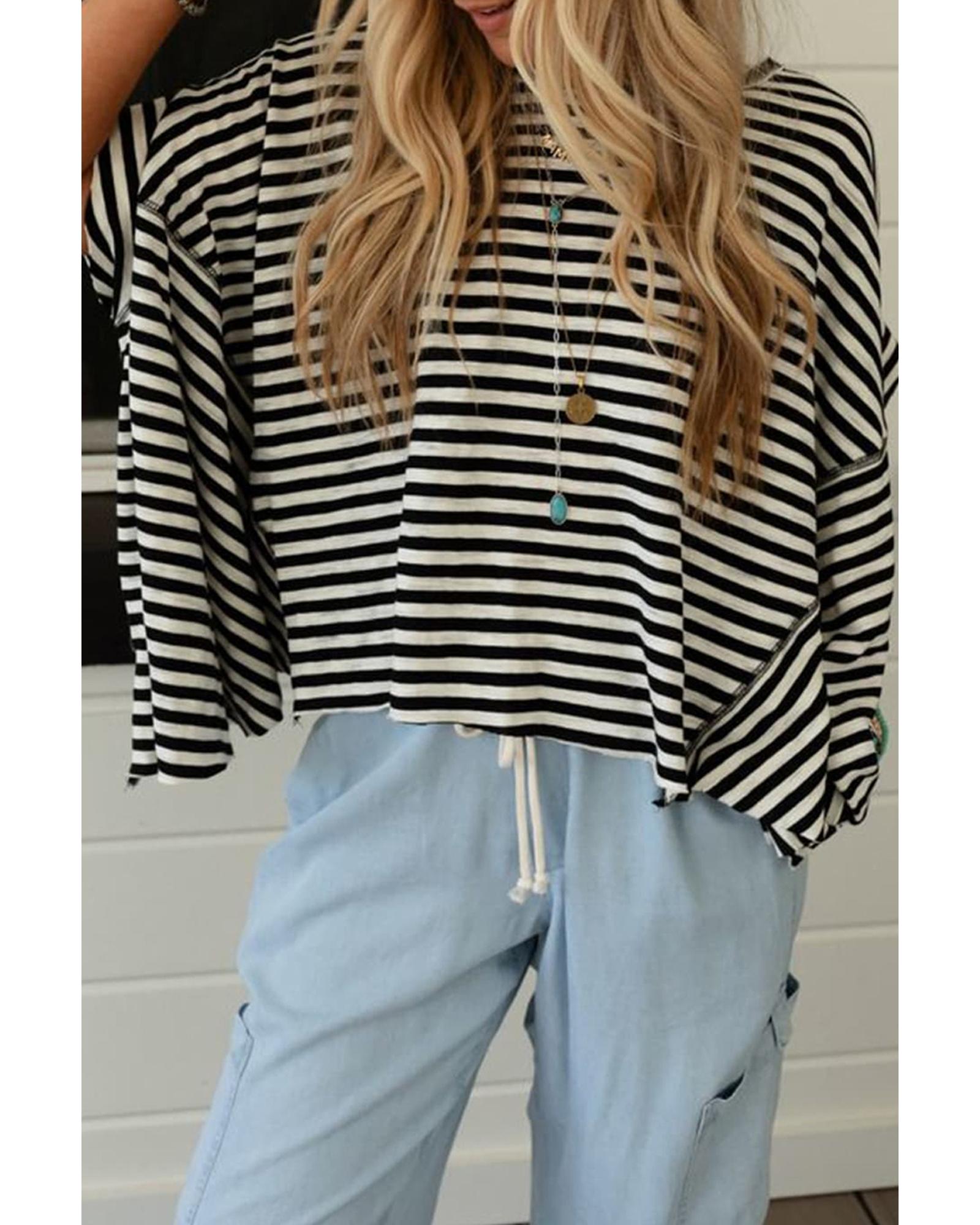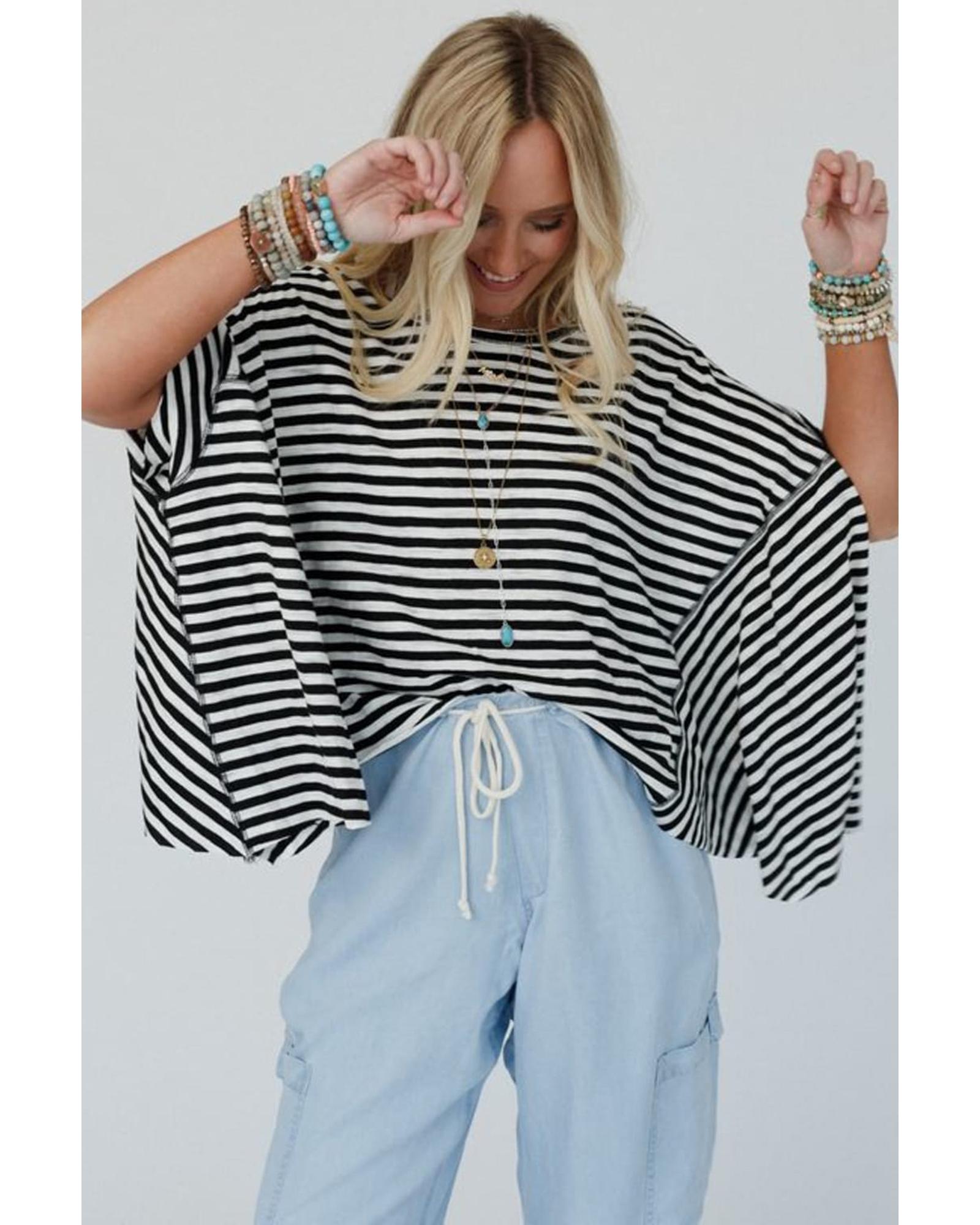 Black Stripe Batwing Sleeve Crewneck Oversized Top – M