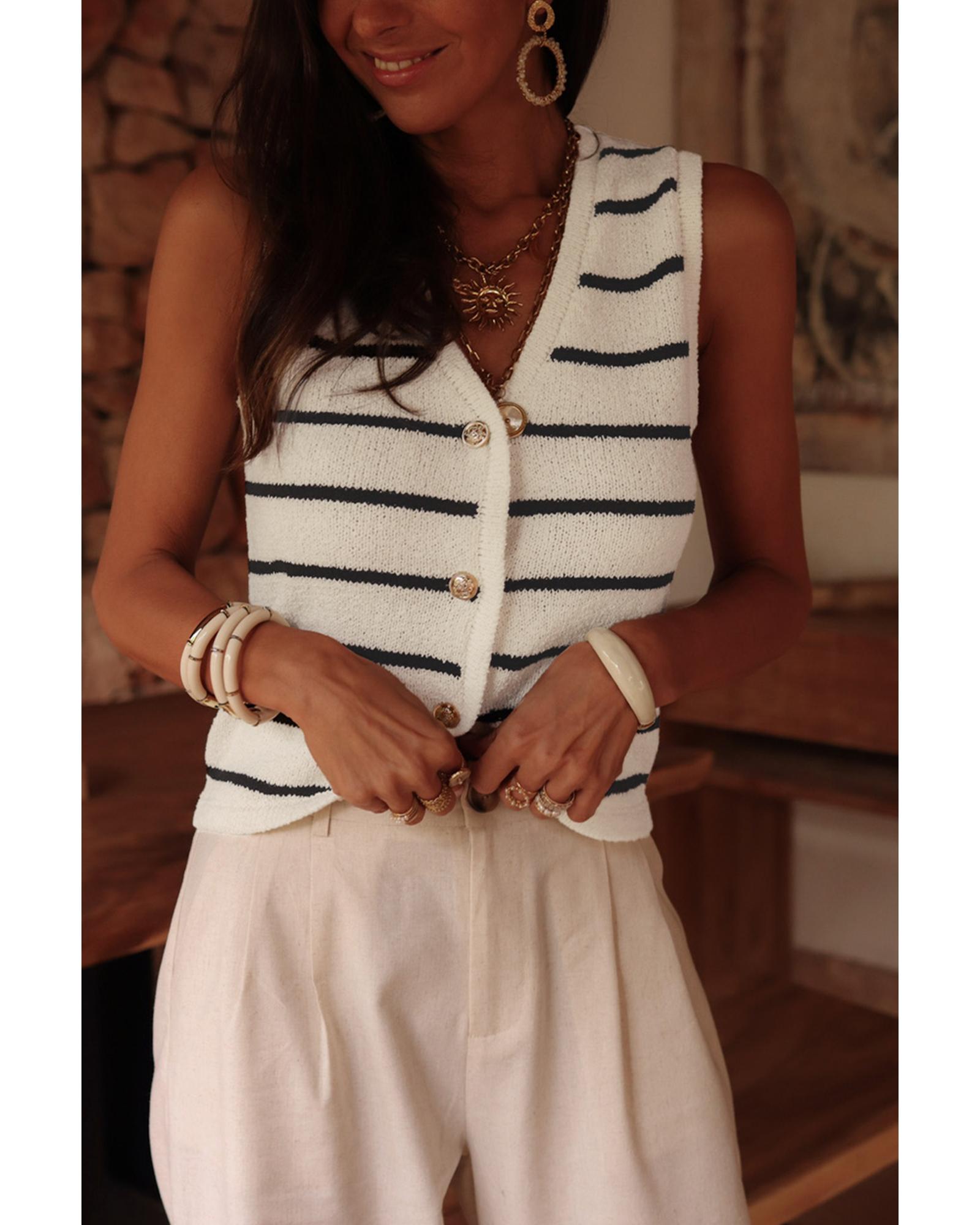 - Black Stripe Buttoned V Neck Slim Fit Sweater Vest
