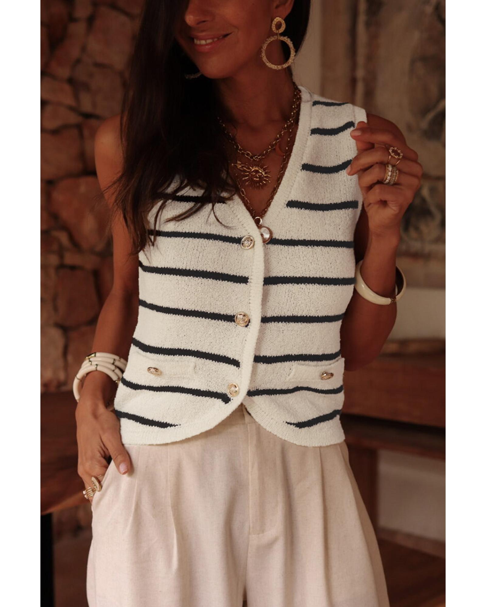 Black Stripe Buttoned V Neck Slim Fit Sweater Vest – S