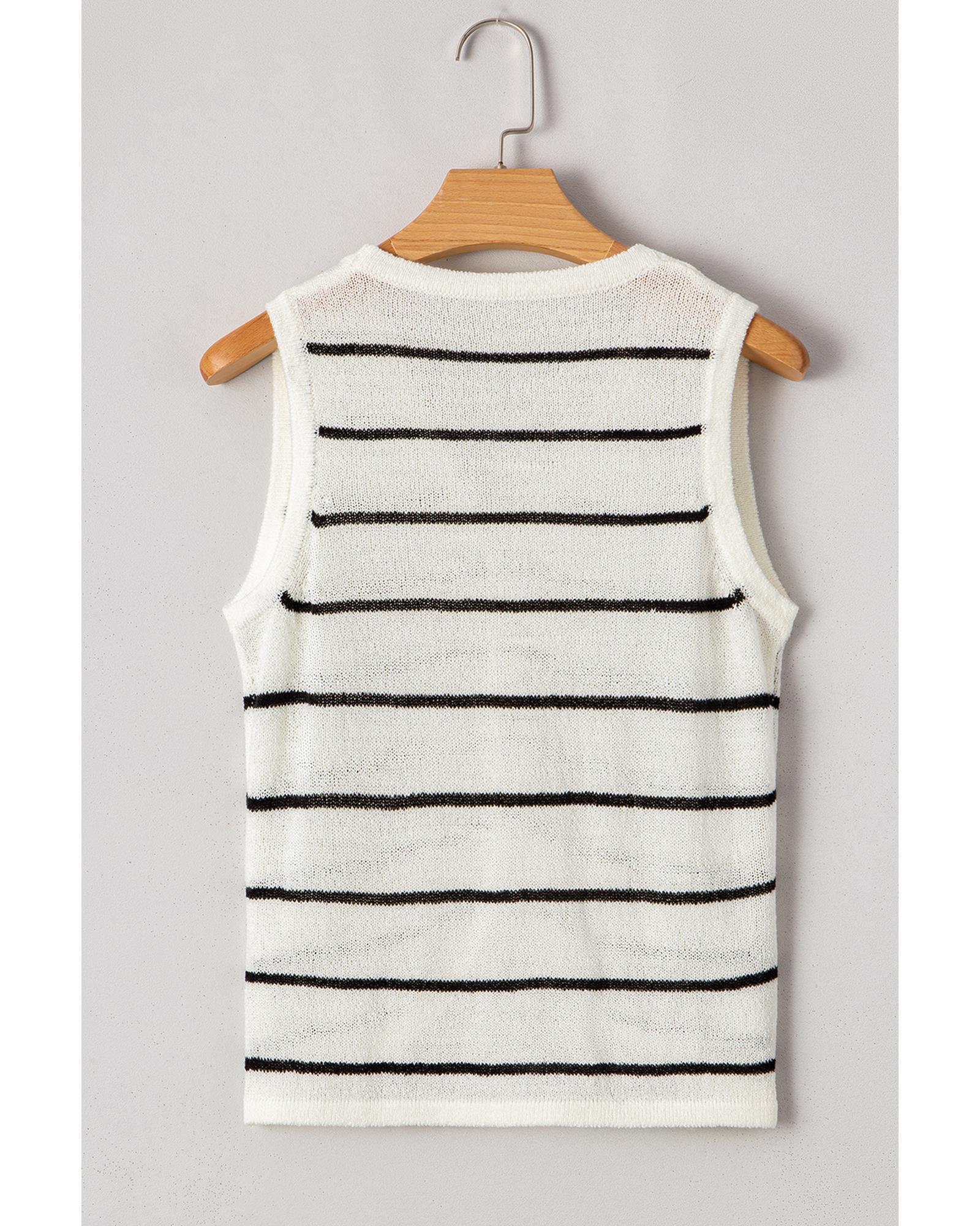 Black white Striped O Neck Sweater Vest - L