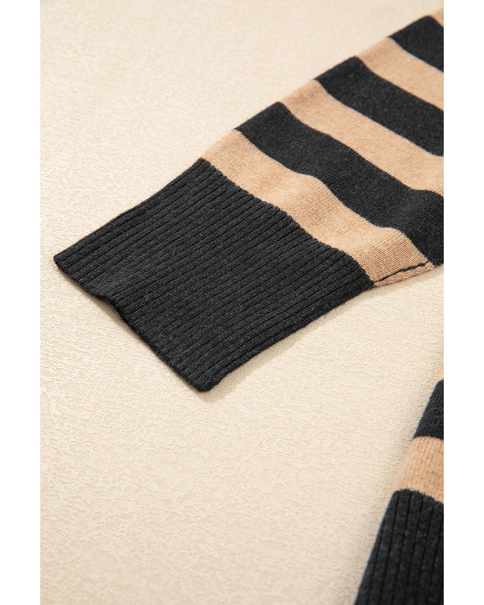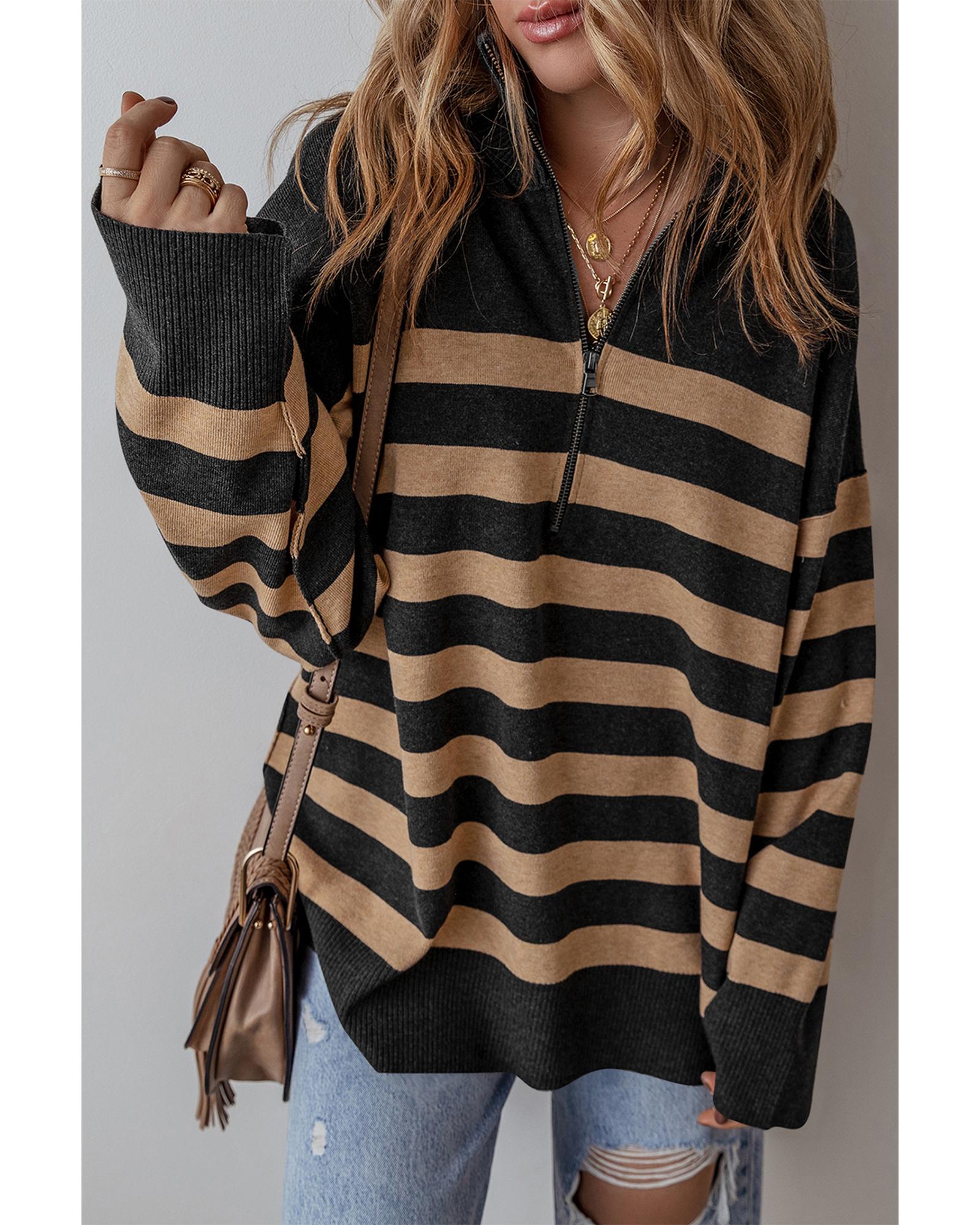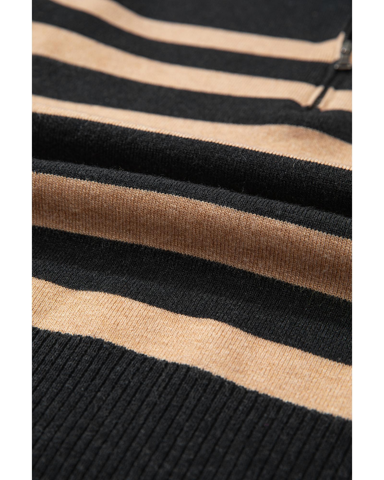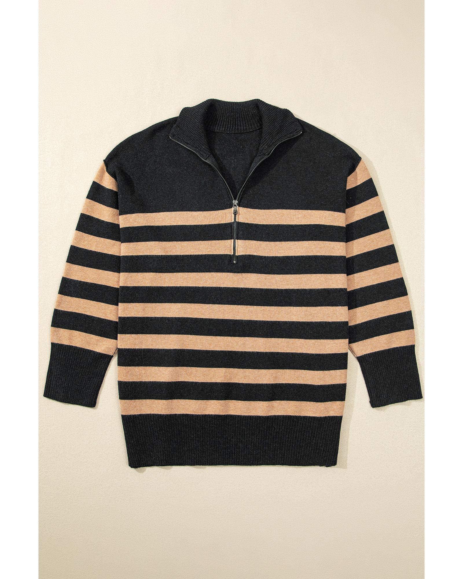Black Stripe Collared Quarter Zipper Oversized Sweater – XL