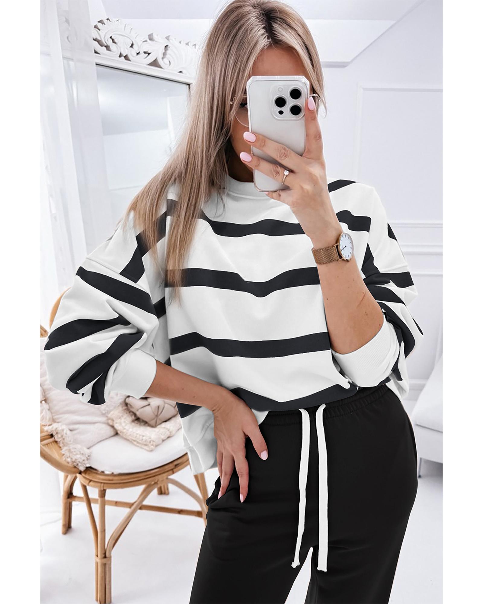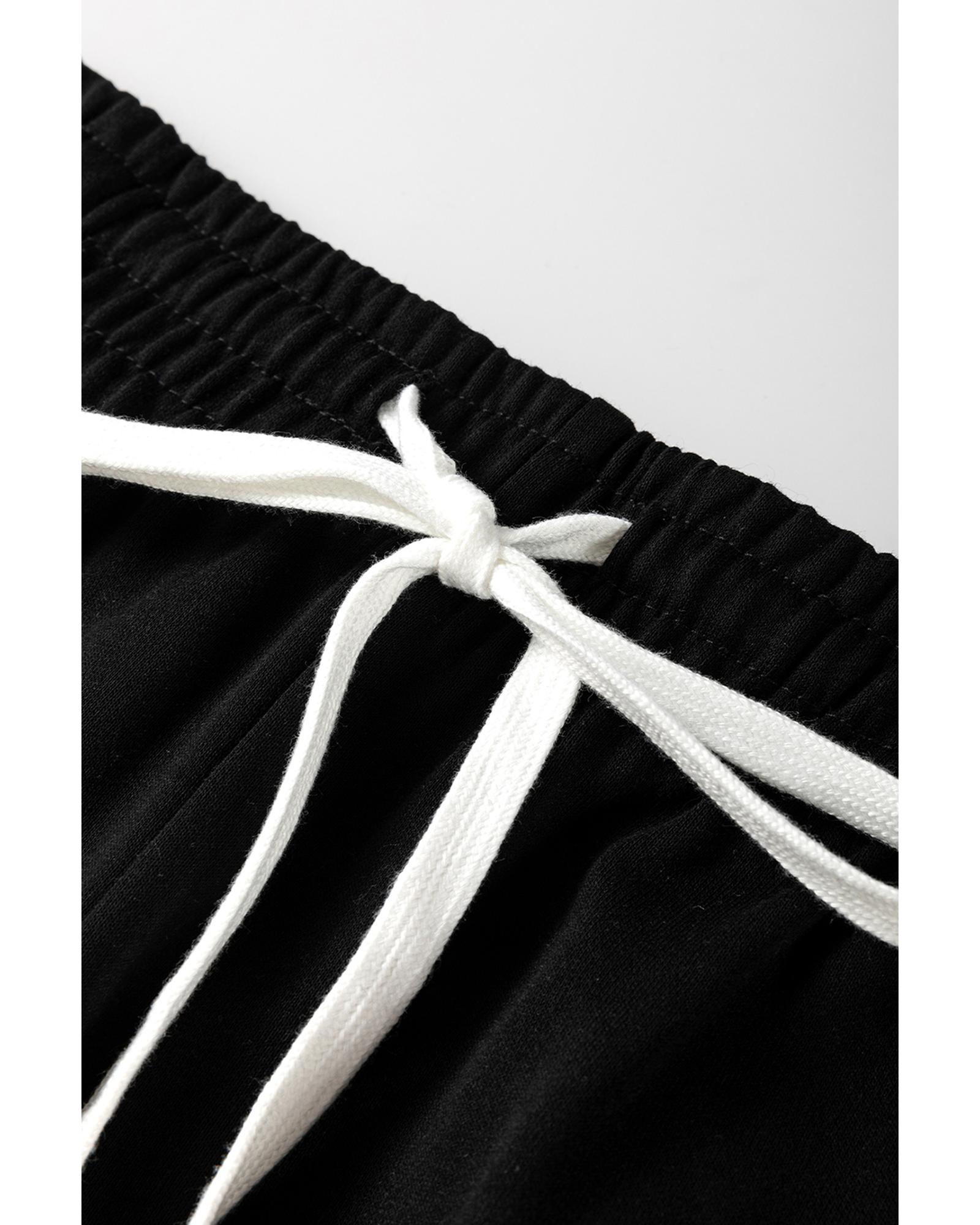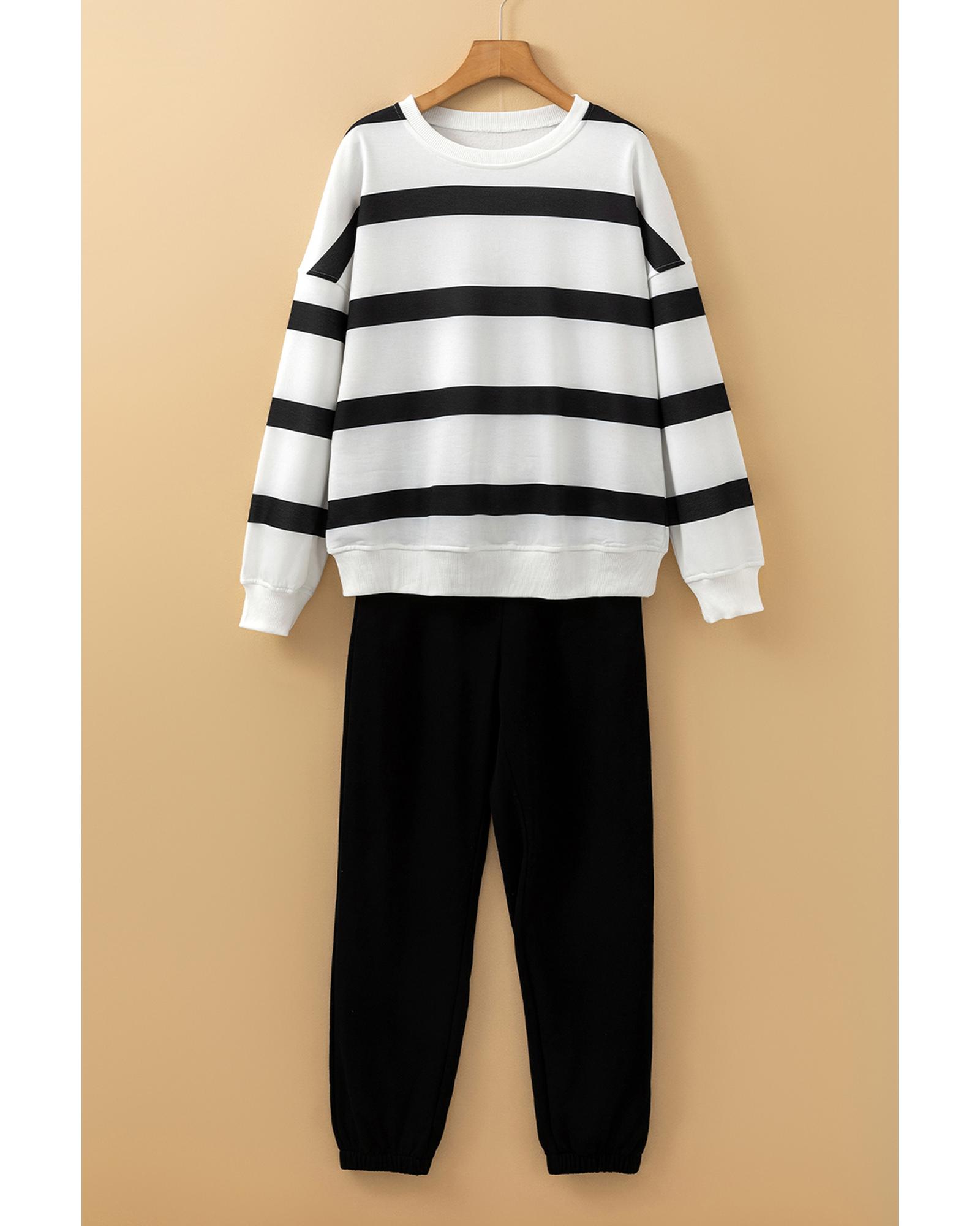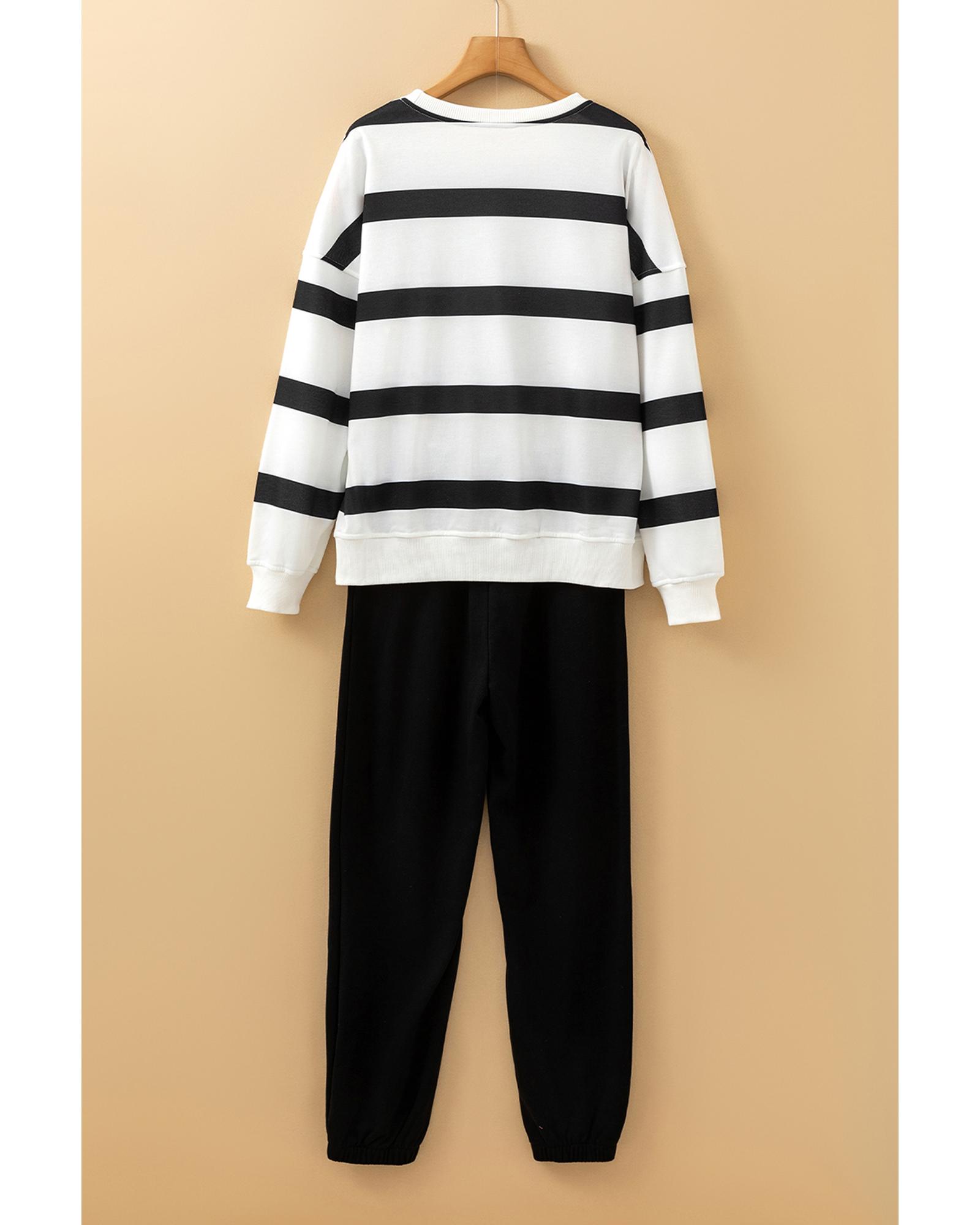 Black Stripe Drop Shoulder Pullover and Jogger Pants Set – S