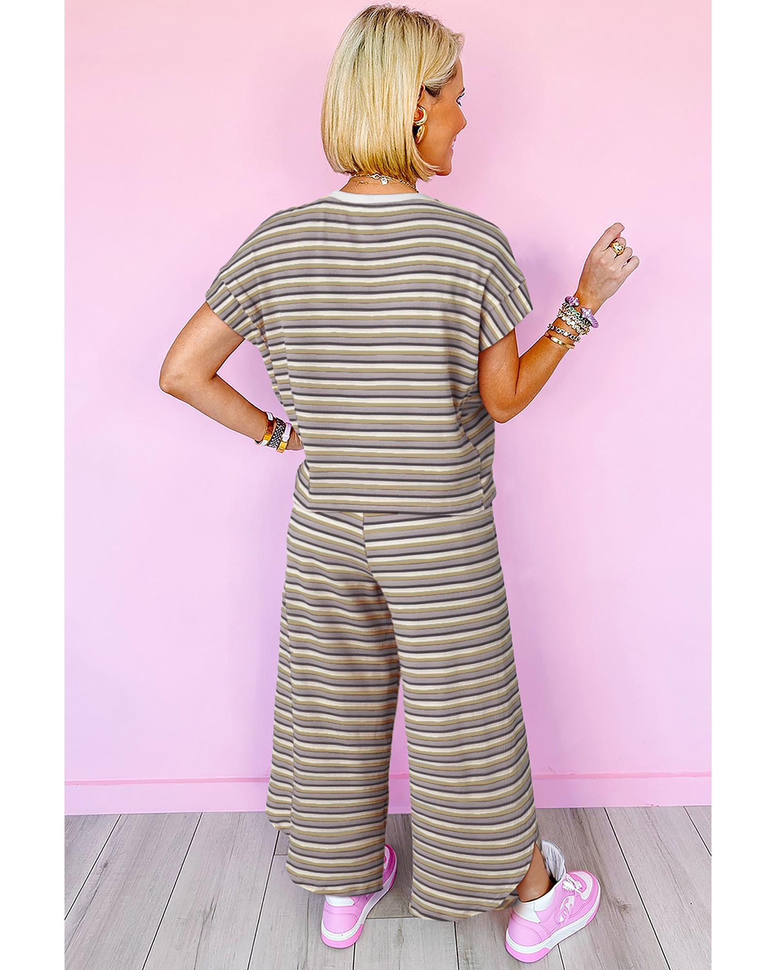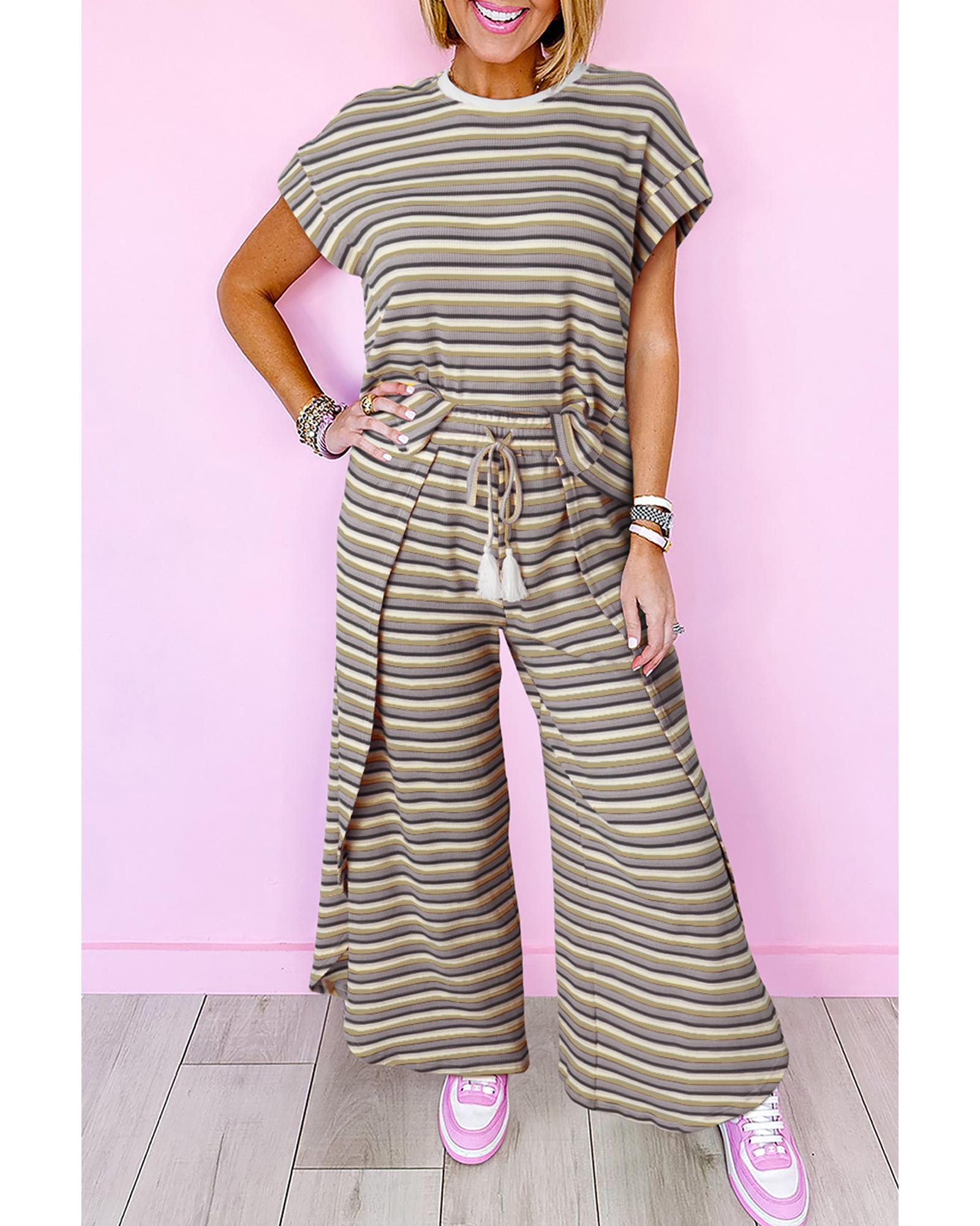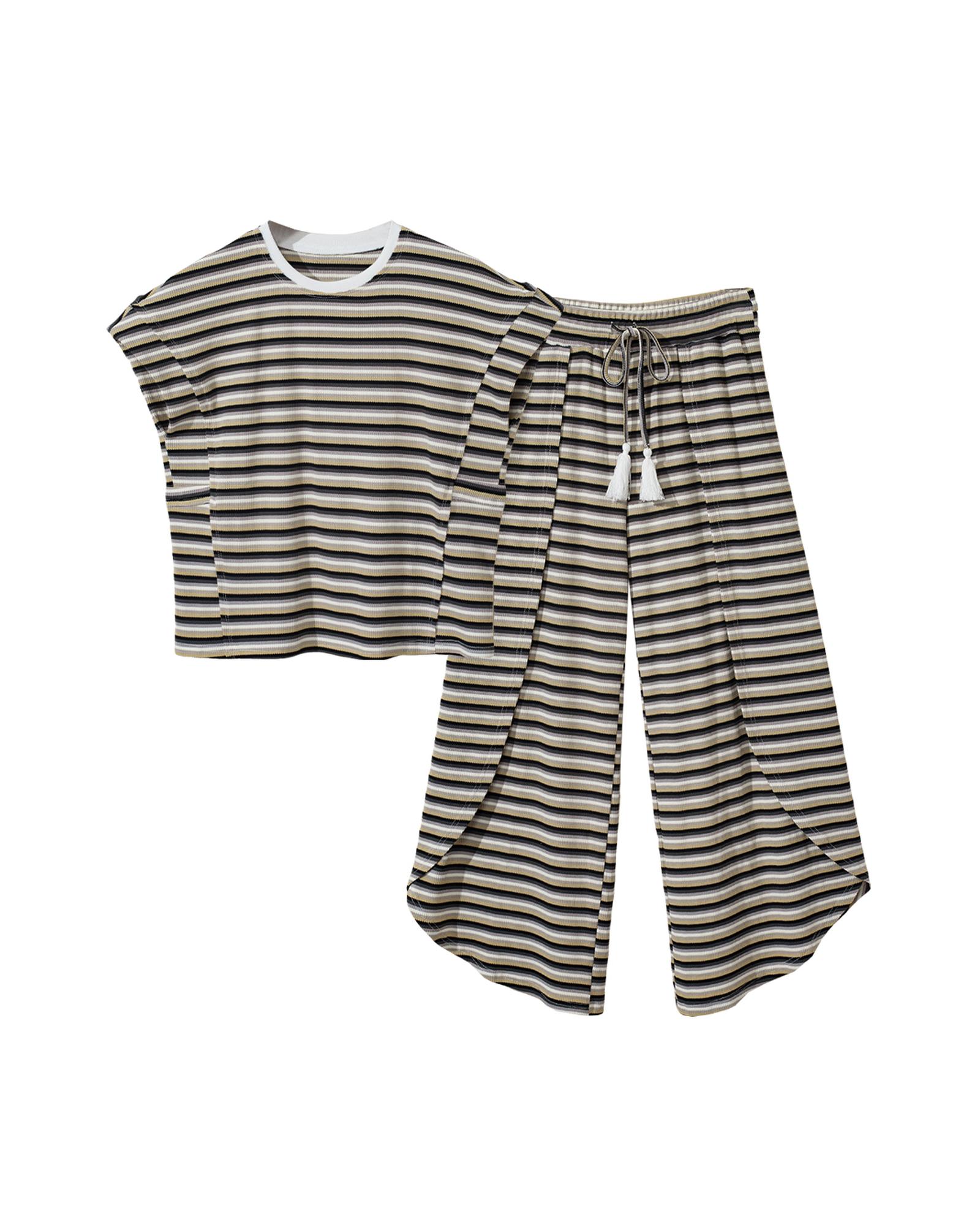 Black Stripe Rainbow Tee Tasseled String Wide Leg Pants Set – 2XL