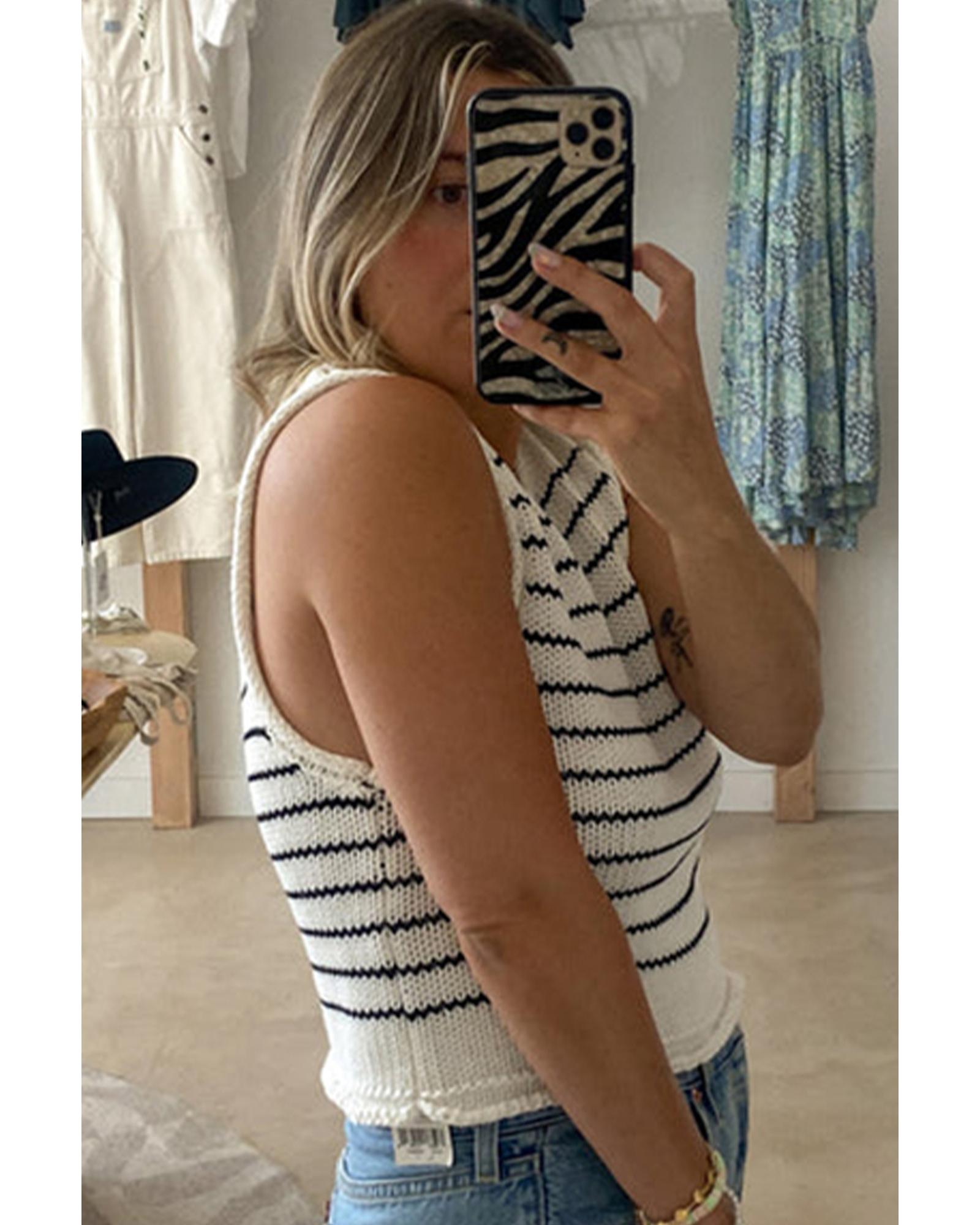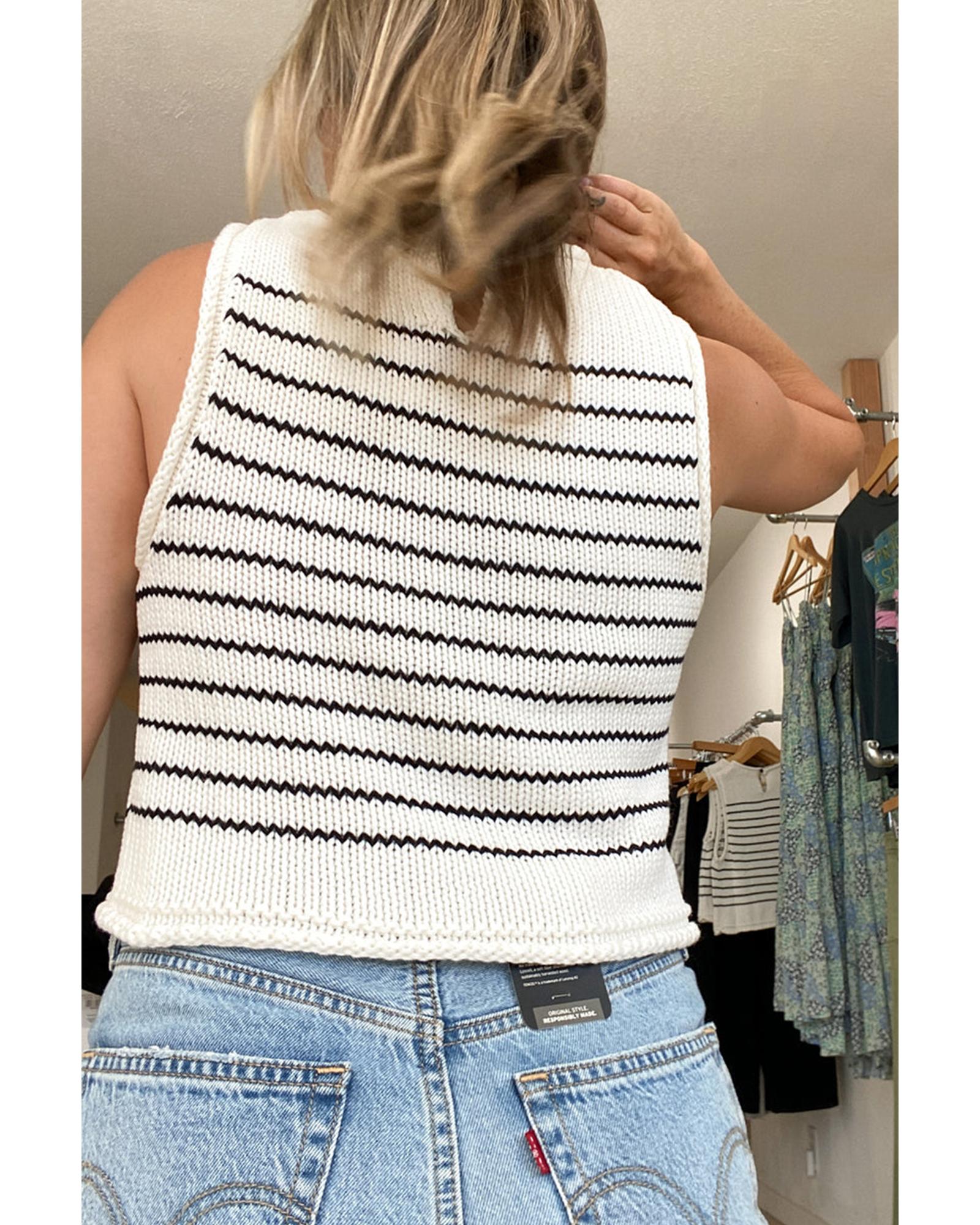 Black Stripe Raw Edge Crew Neck Knitted Vest – L