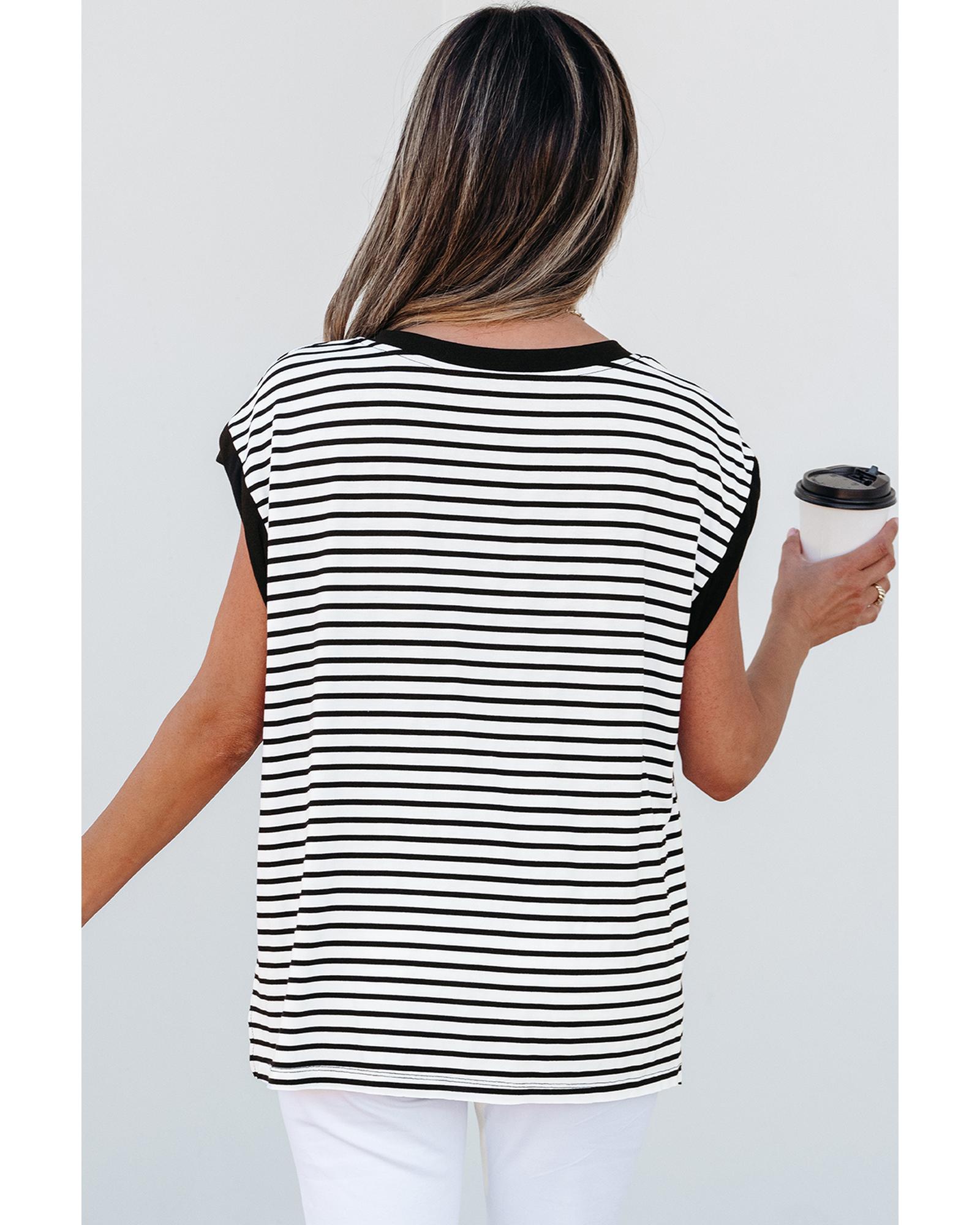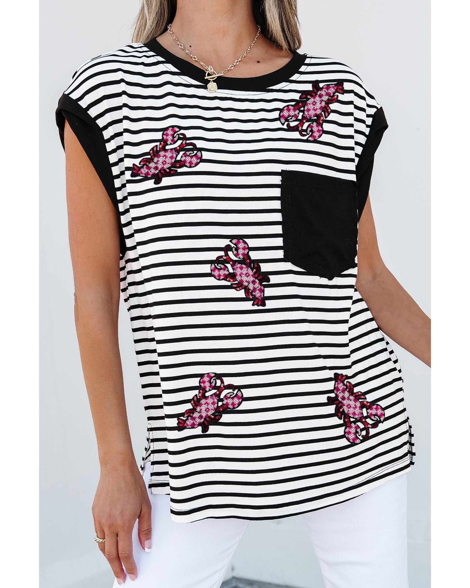 Black Stripe Sequined Lobster Patched Pocket Casual Tank Top – XL