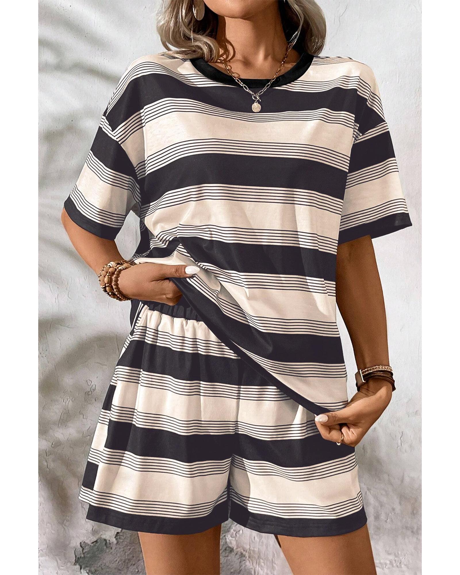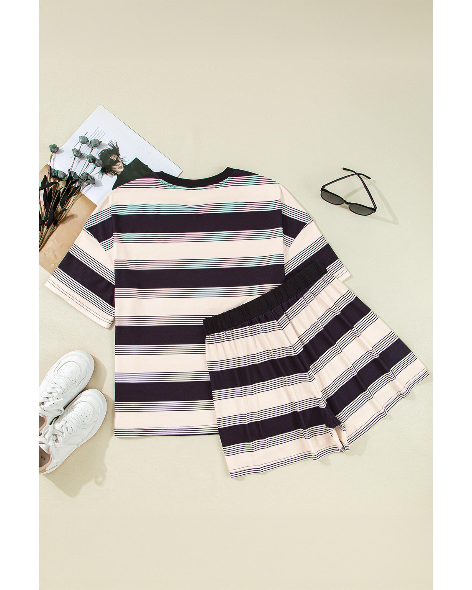- Classic and fashionable short set with striped pattern