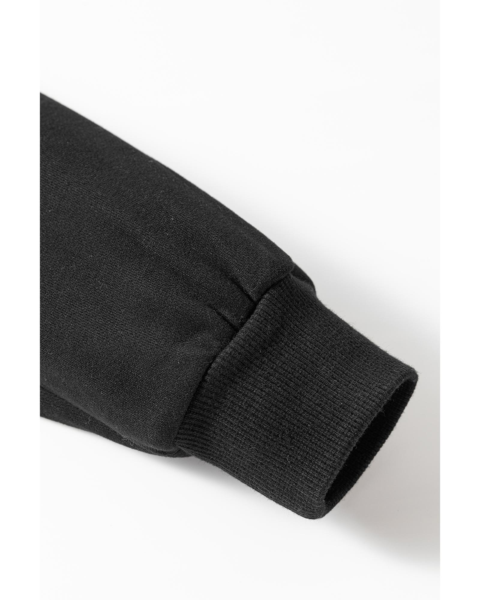Black Striped Accent Pullover and Shorts Two Piece Casual Set - L