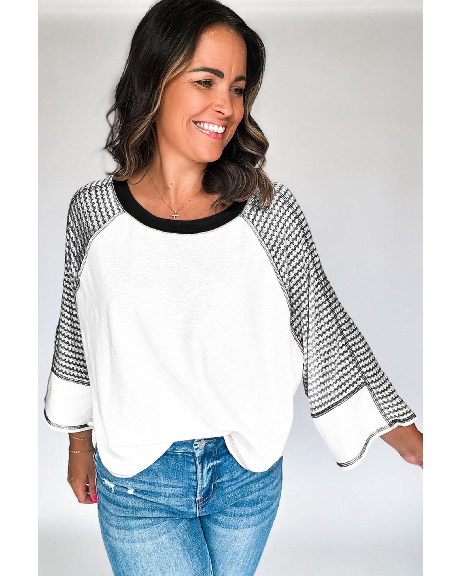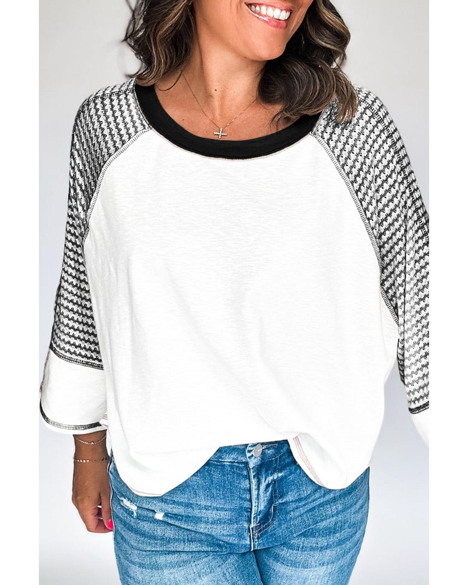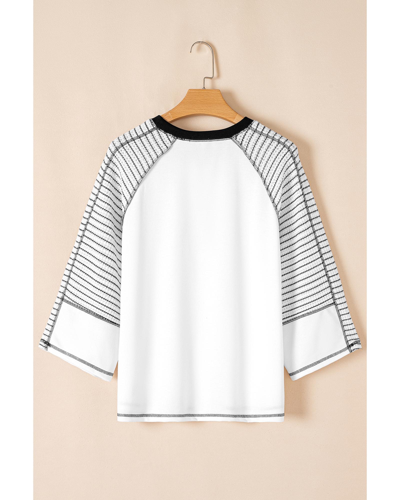 - Chic patchwork top with striped raglan sleeves