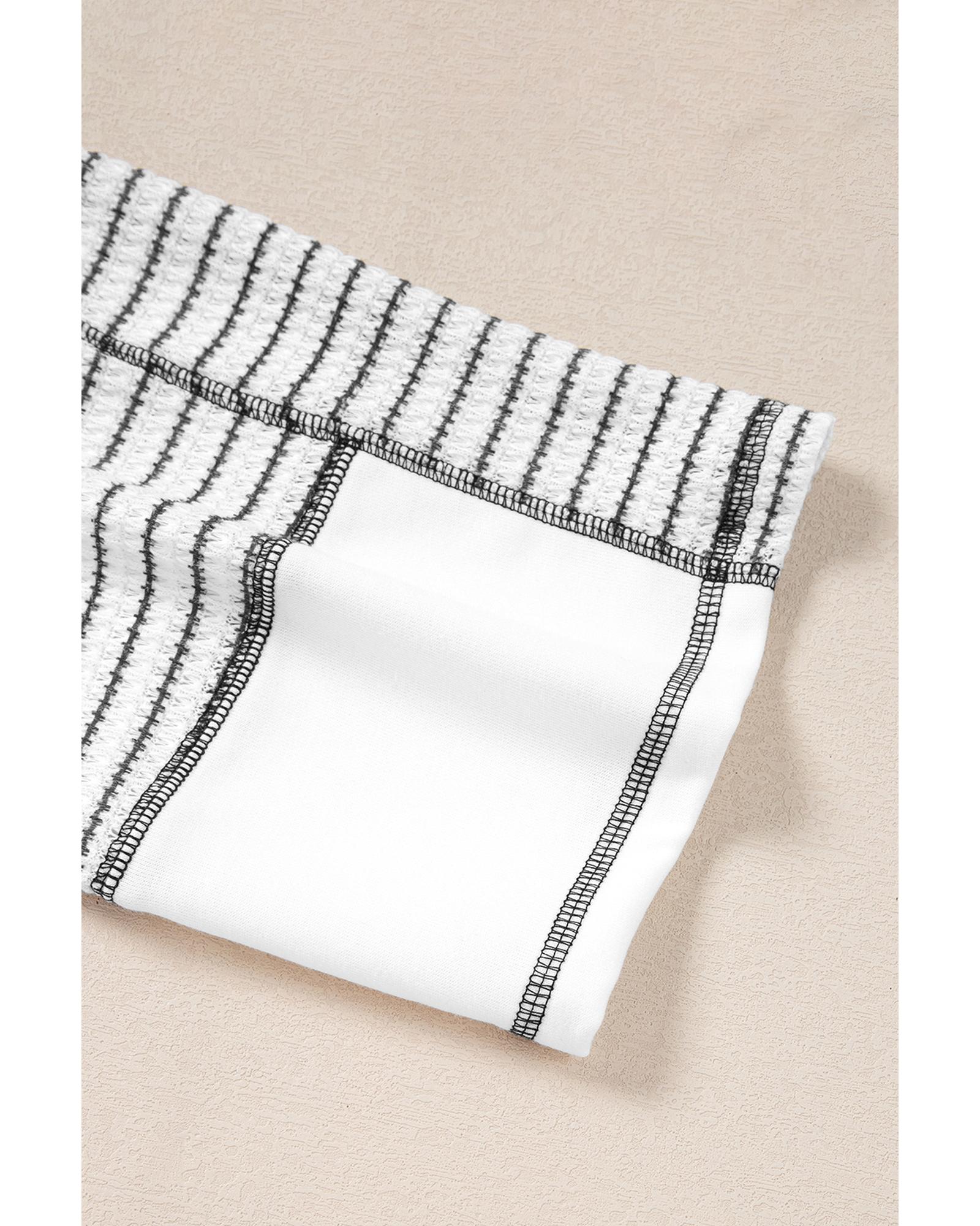 Black Striped Bracelet Sleeve Raglan Patchwork Top – S