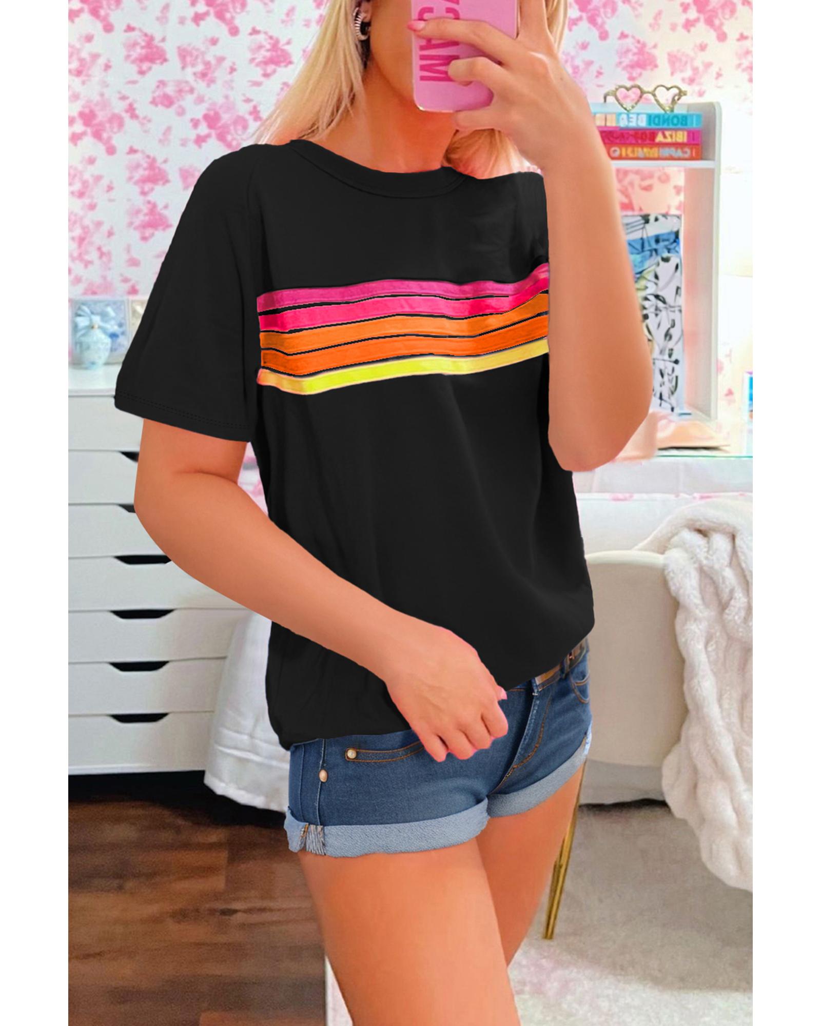 Black Striped Patch Front Casual Tee – XL