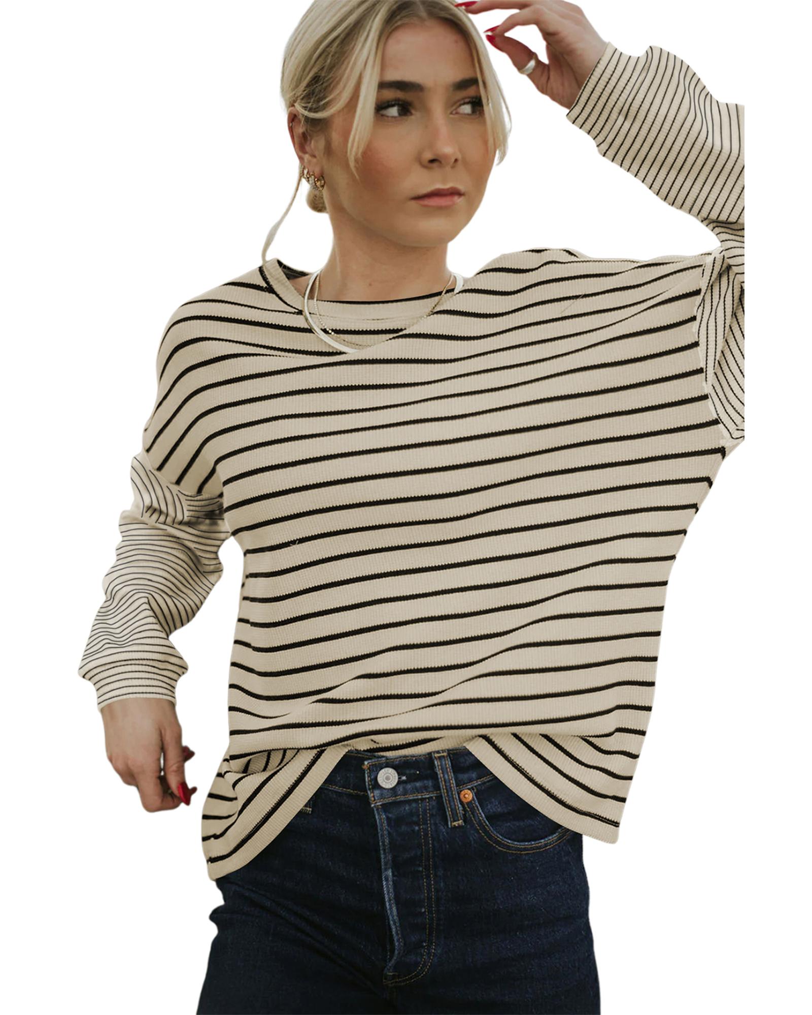 Black Striped Patchwork Loose Long Sleeve Tee – XL