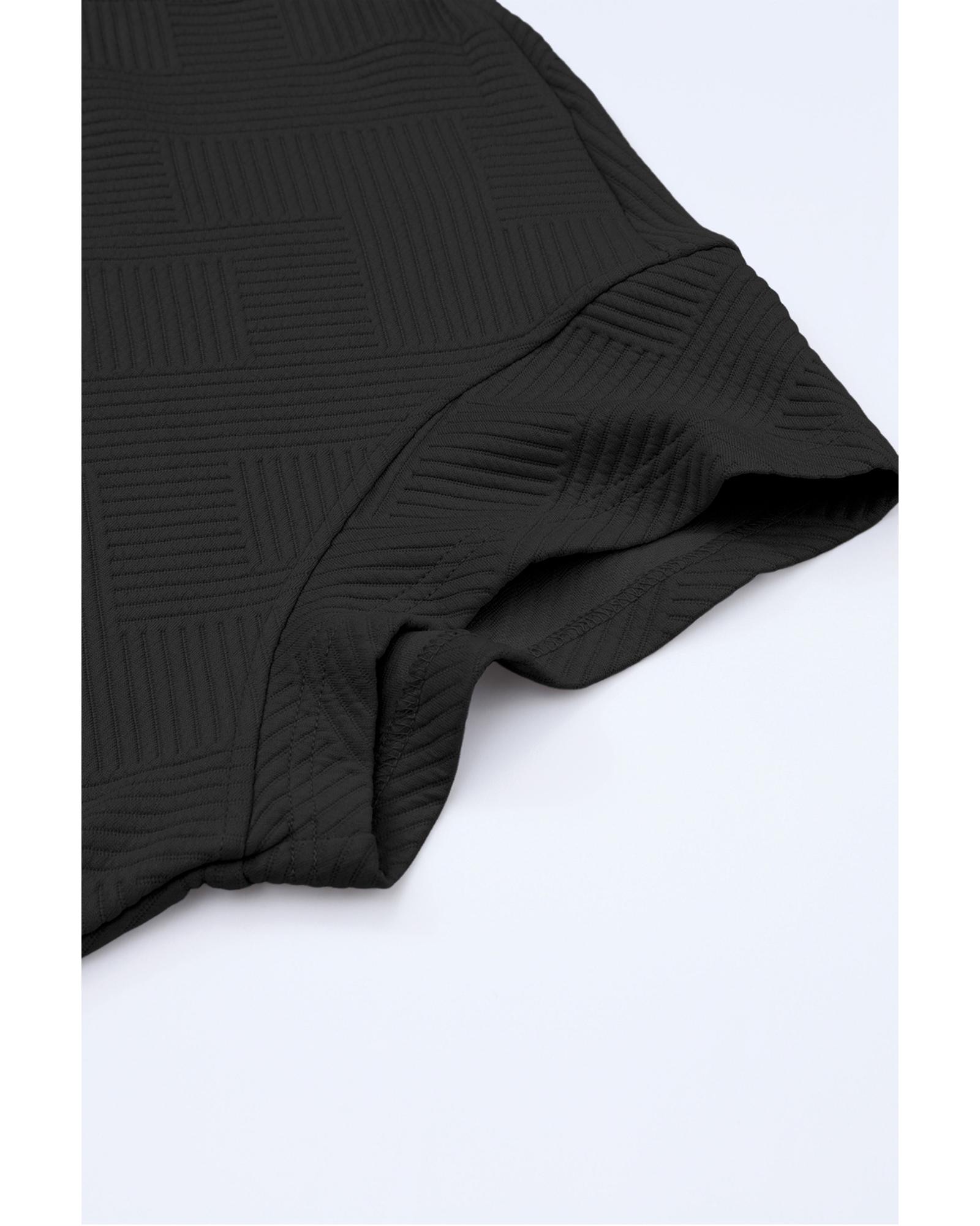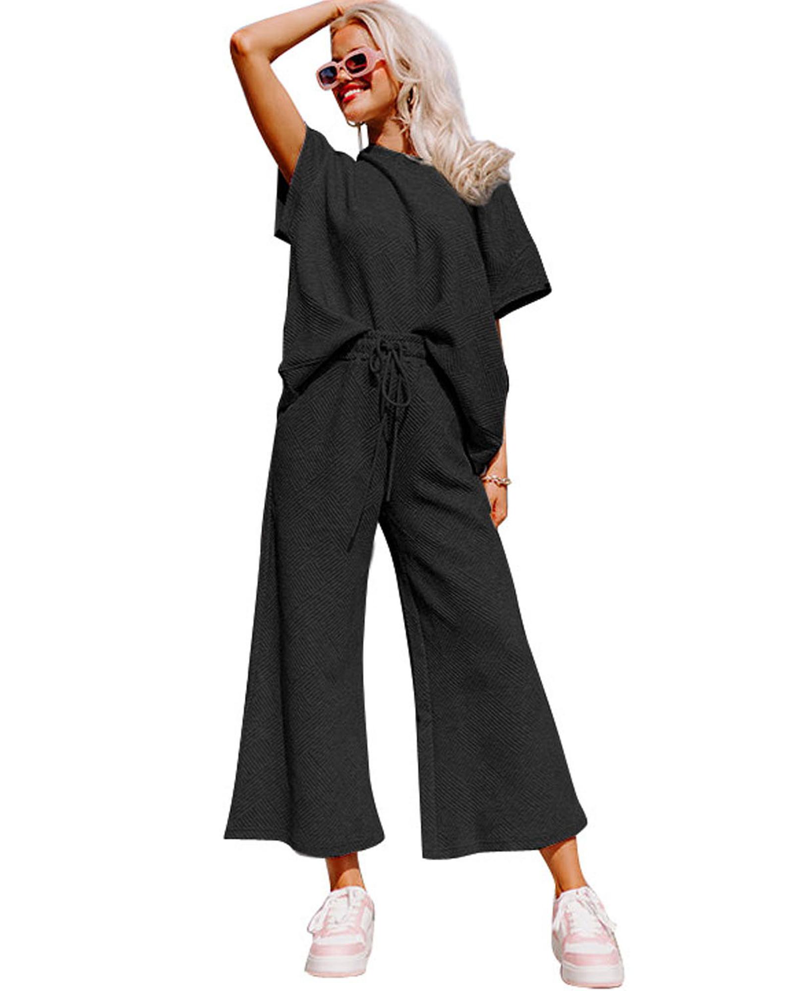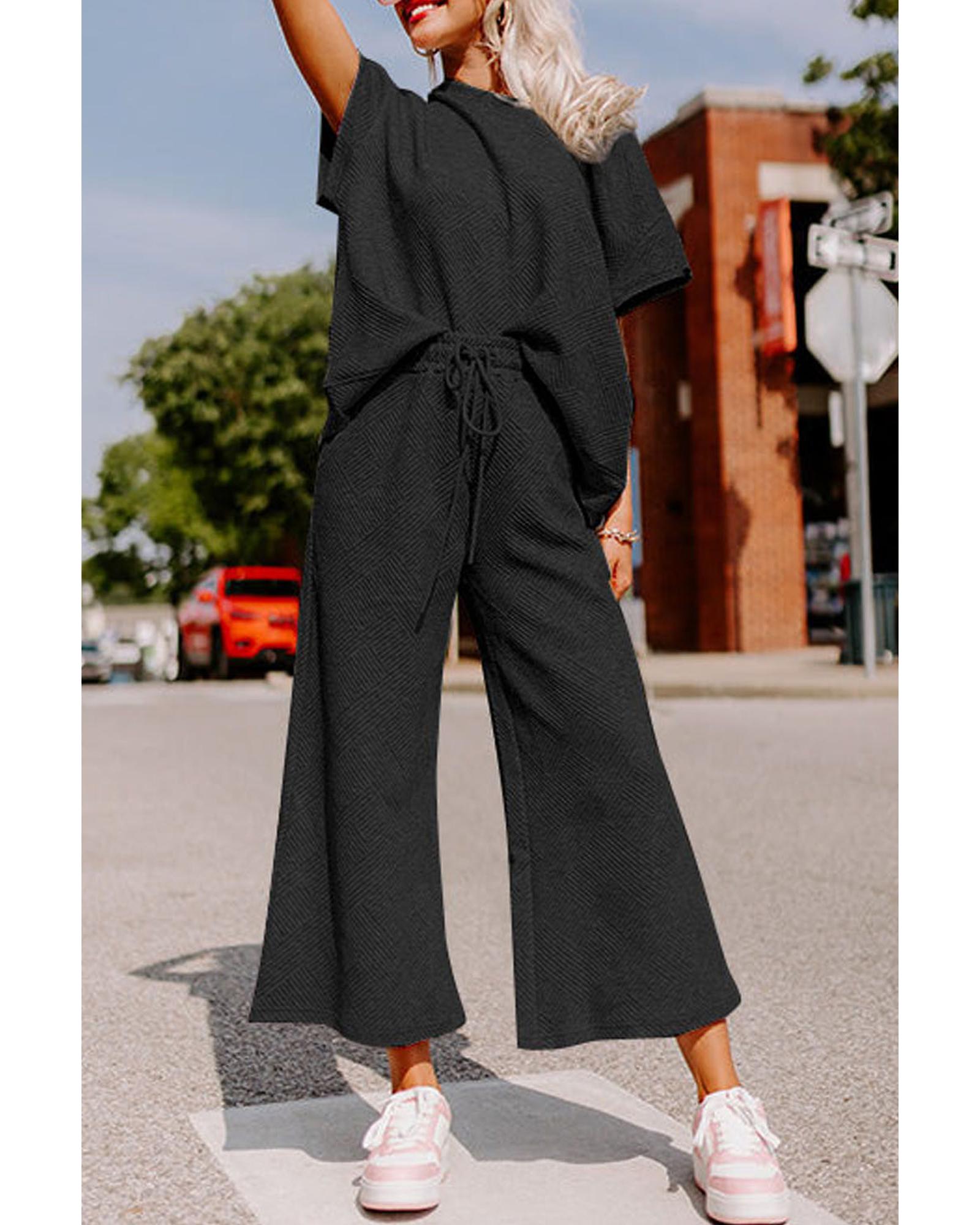 Black Textured Loose Fit T Shirt and Drawstring Pants Set – S