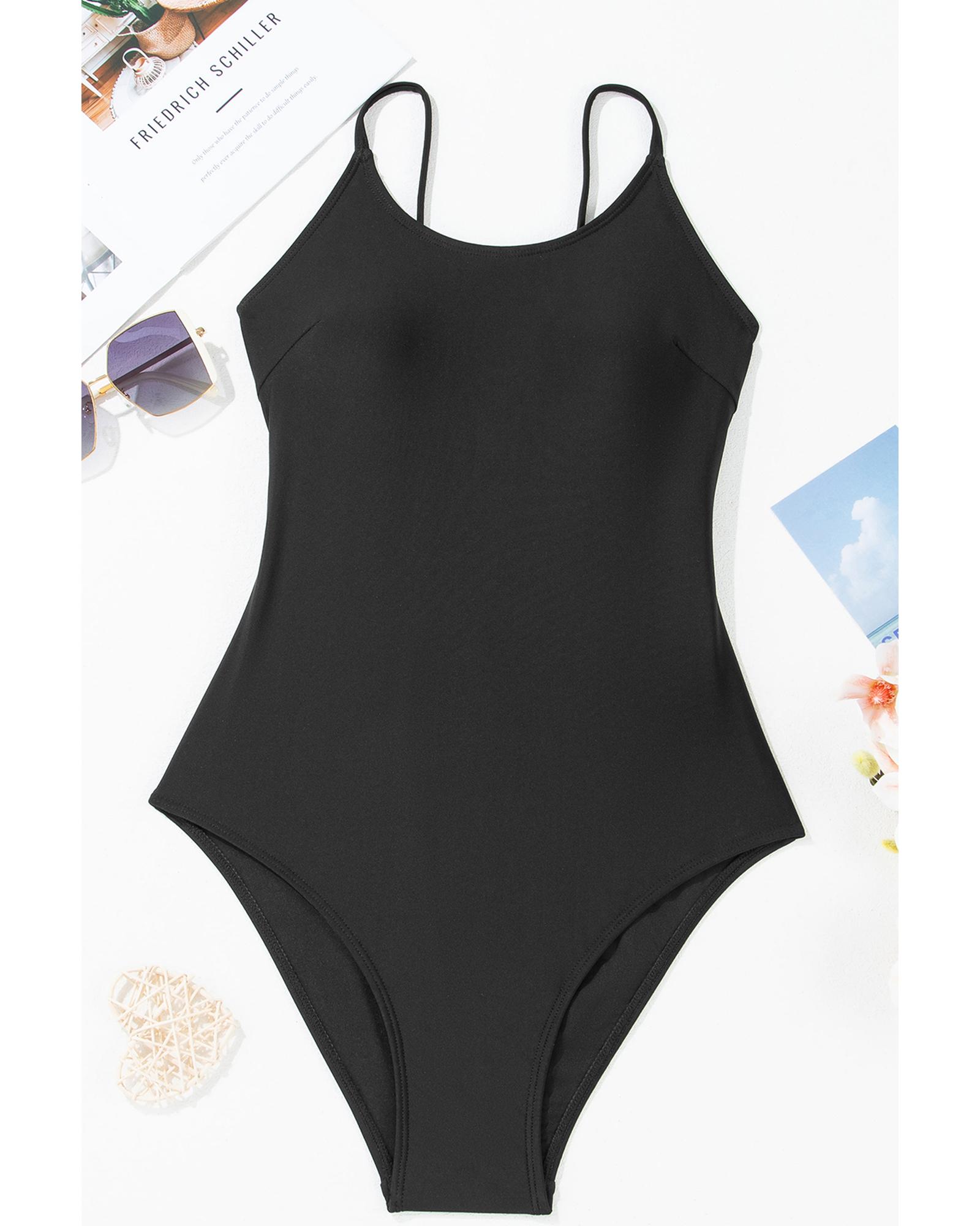 Black Thin Strap Strappy Lace-up Open Back One Piece Swimsuit – XL