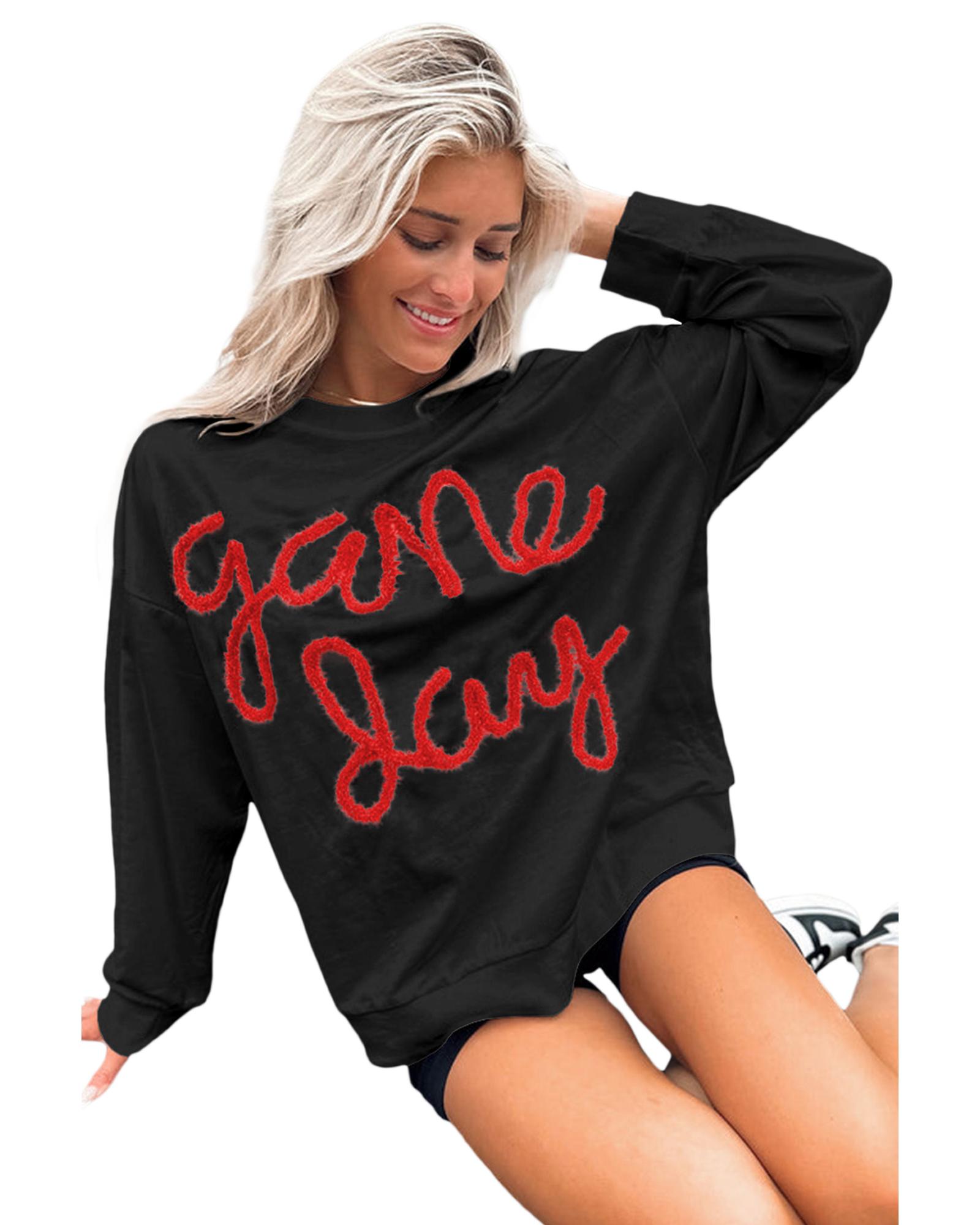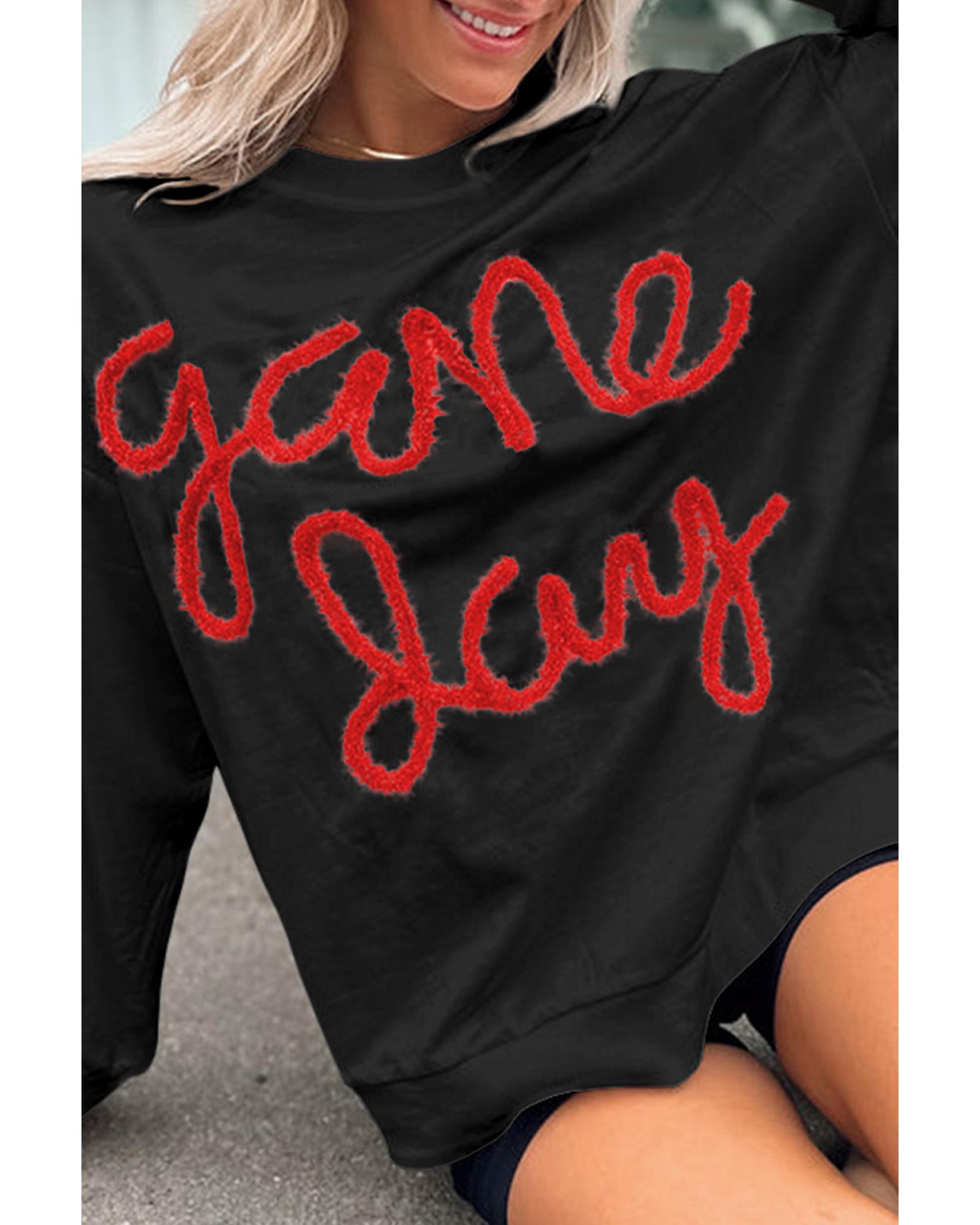 Black Tinsel Game Day Drop Shoulder Graphic Sweatshirt – M