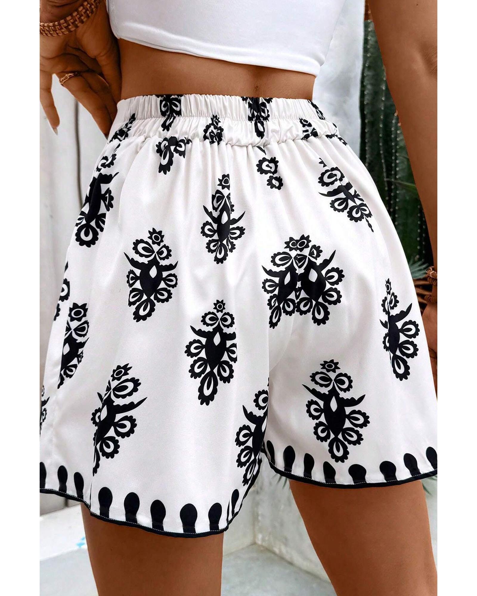 Black Tribal Geometric Print Belted High Waist Casual Shorts – XL