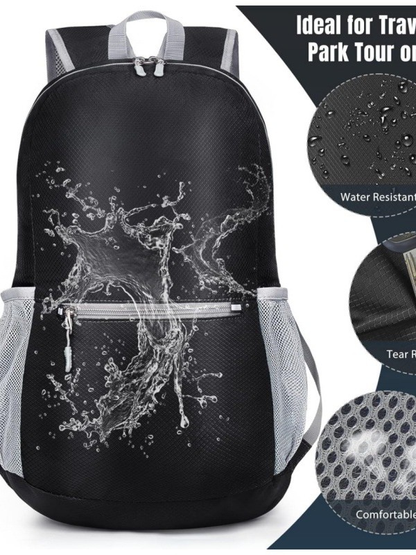 Explore the outdoors with ease using the Ultra-Light Foldable Outdoor Backpack. Weighing only 0.22 kg (0.49 lb), this backpack is designed for maximum portability, folding down to a compact 6.7 inches x 6.7 inches (17 cm x 17 cm) when not in use. When unfolded, its dimensions of 17.7 inches x 10.6 inches x 5.5 inches (45 cm x 27 cm x 14 cm) provide ample space for your essentials. Crafted from durable black fabric, it features mesh side pockets for convenient storage of water bottles or small items. Perfect for travel, hiking, and outdoor sports, this backpack combines functionality with a sleek, minimalist design.