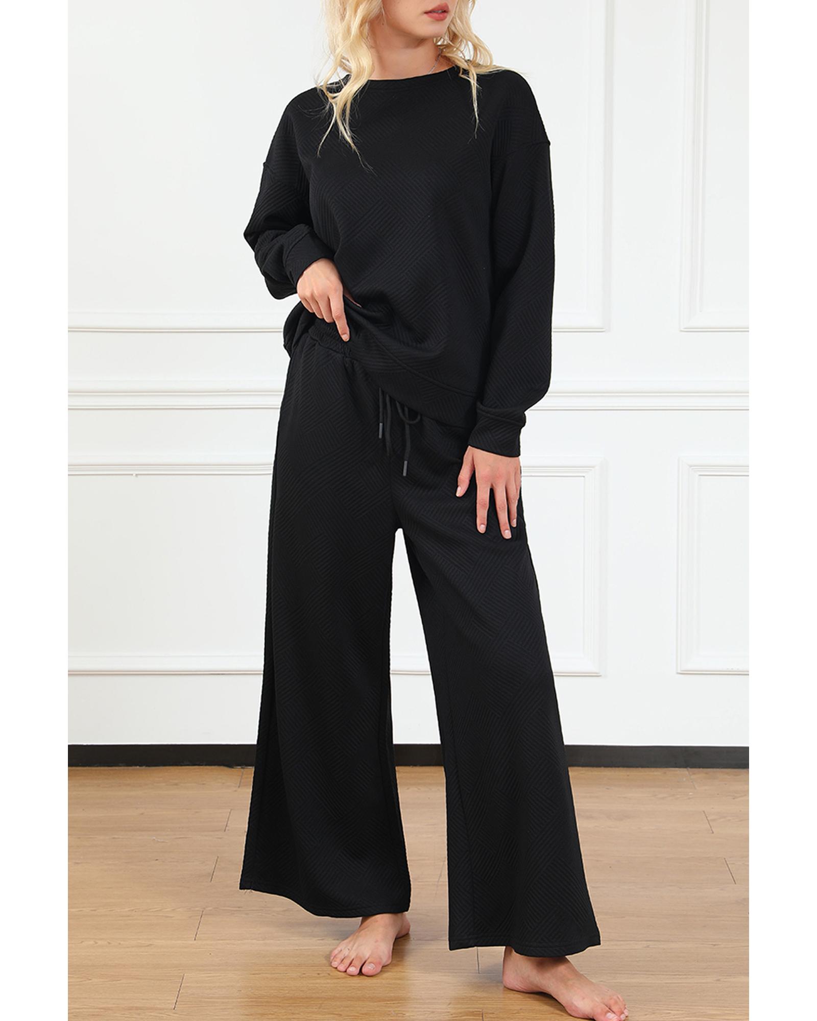 Black Ultra Loose Textured 2pcs Slouchy Outfit – L